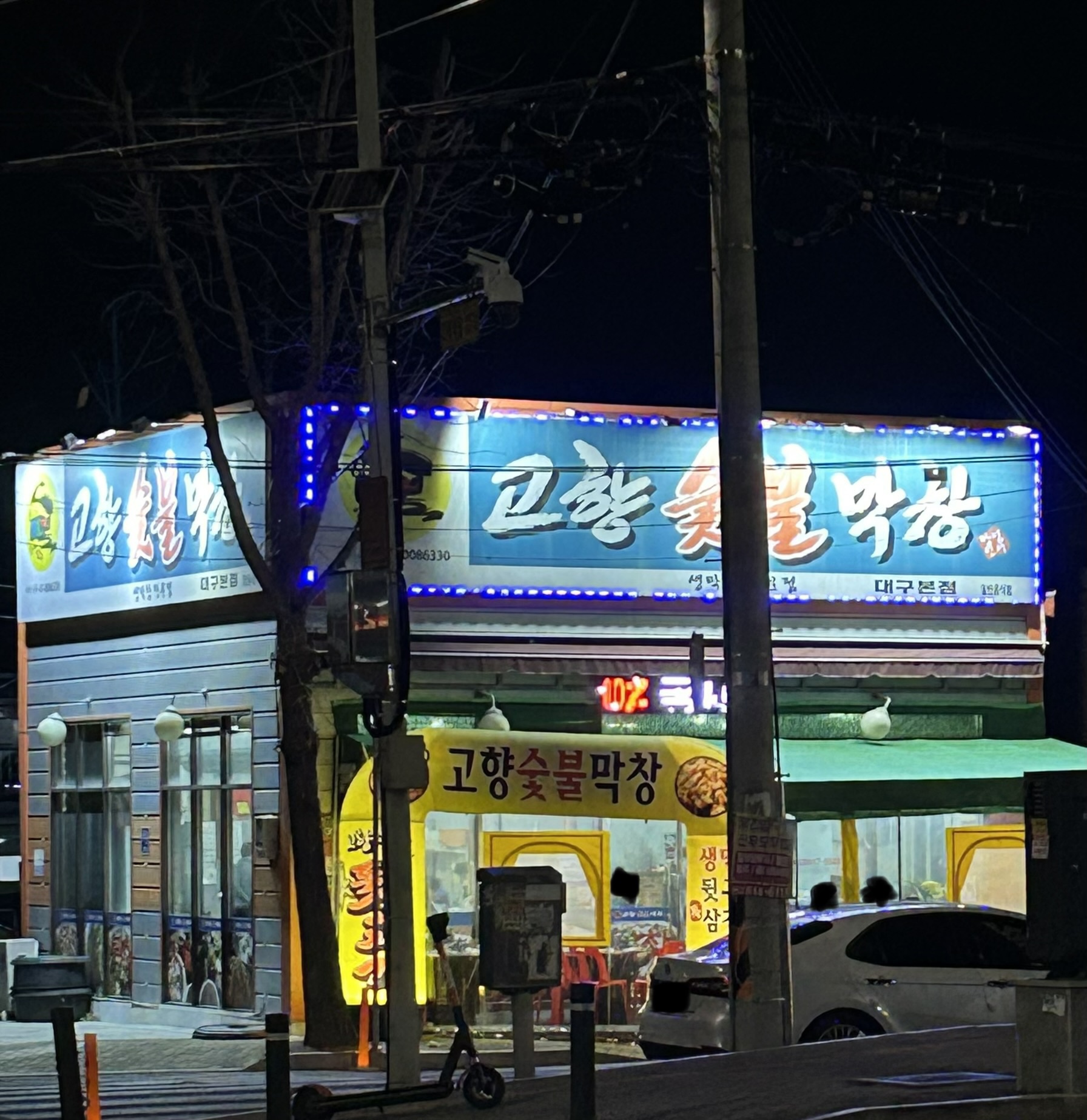 길 건너편에서 찍어 본 고향숯불막창 가게 모습