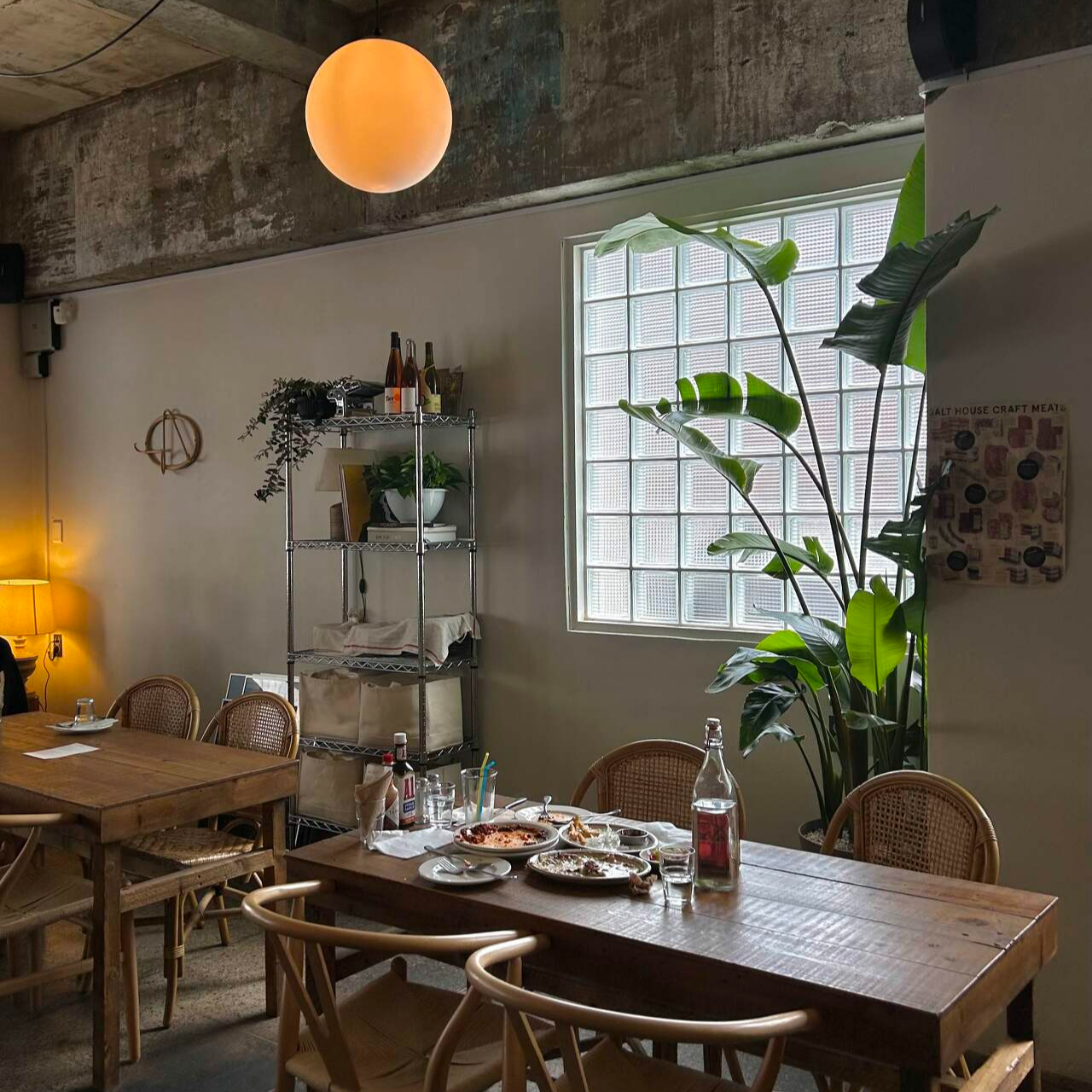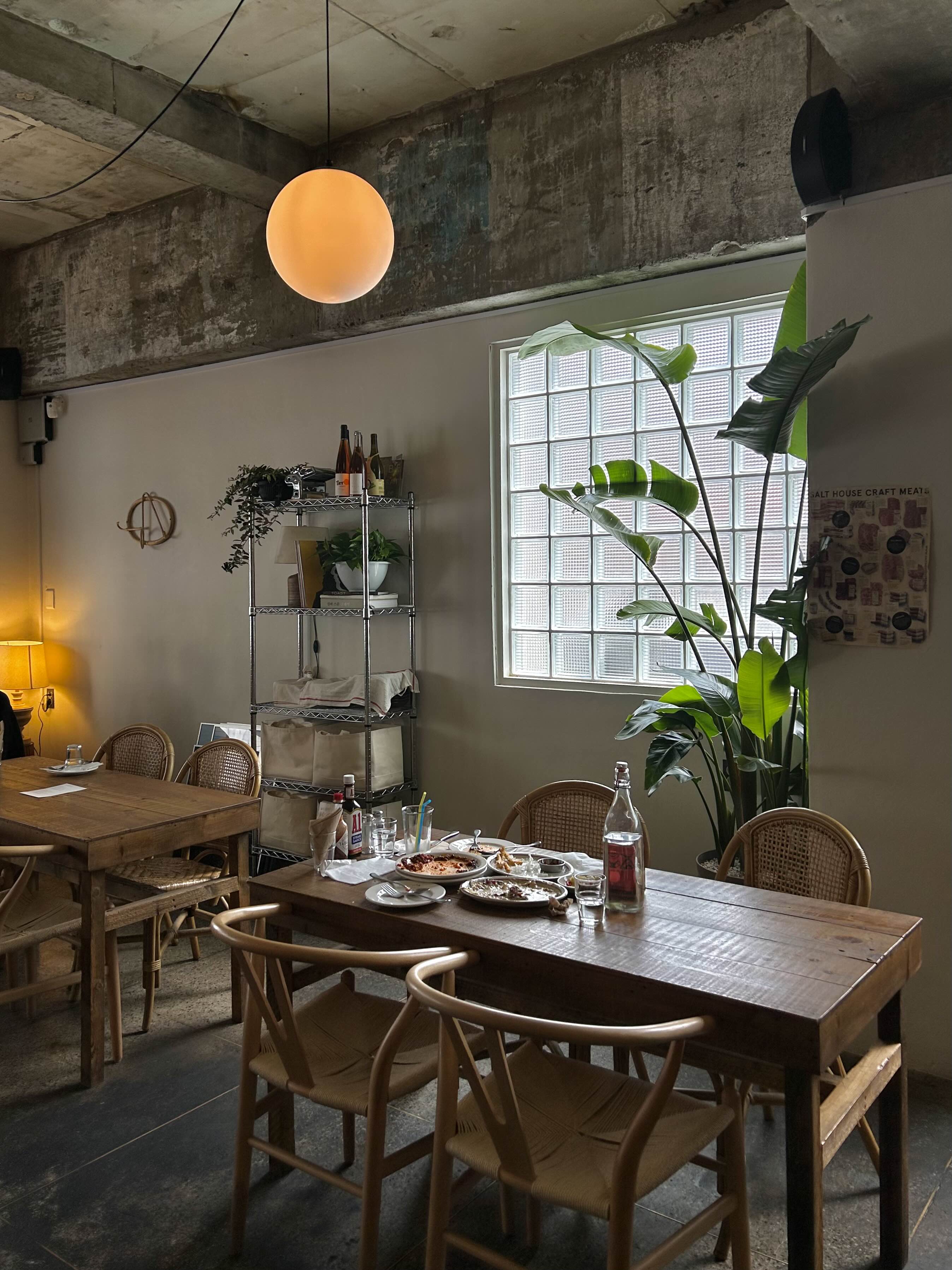 테이블이랑 뒤에 커다란 식물 그리고 조명까지 다 예쁨 ㅎ