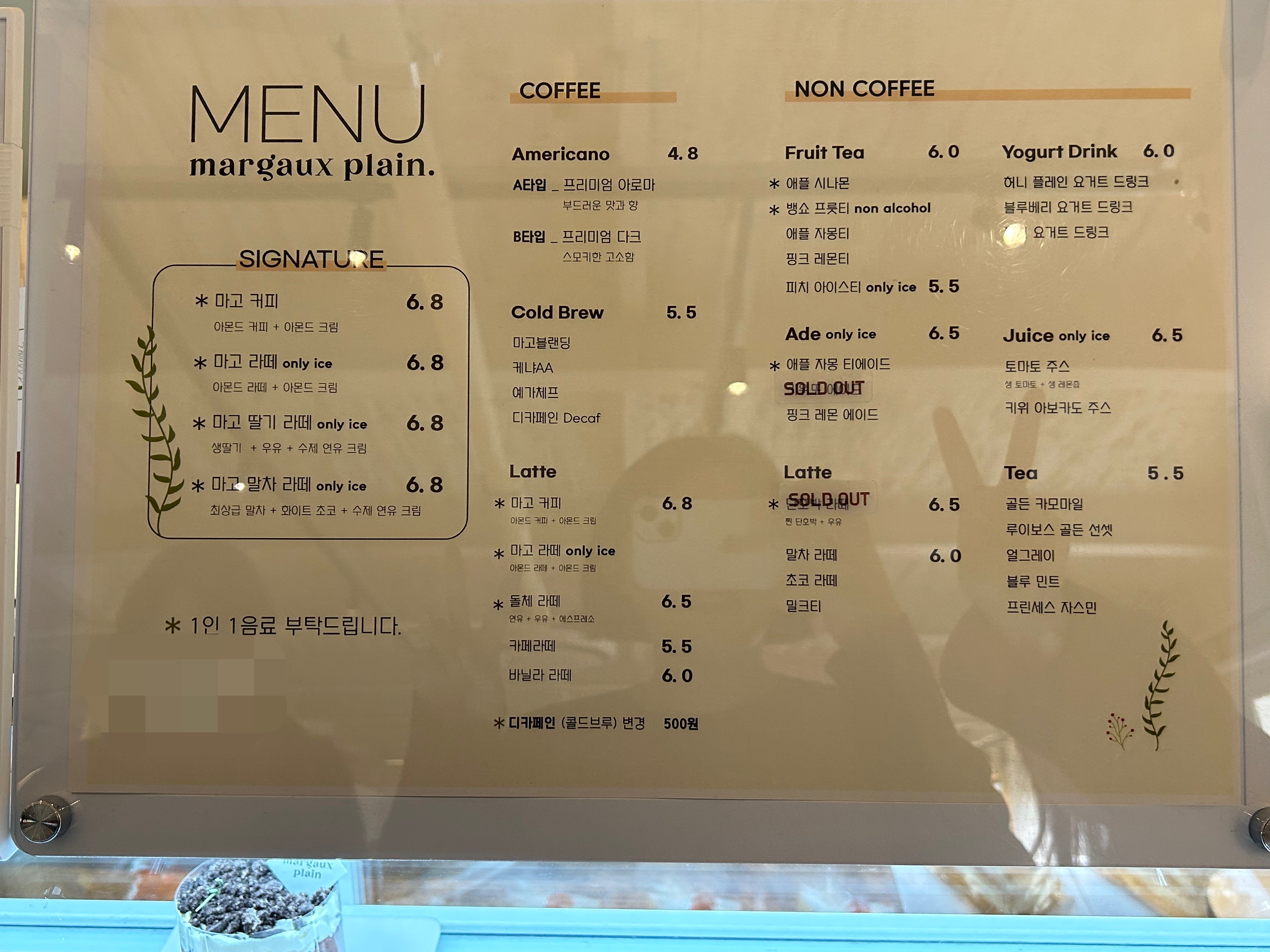 음료 고르기 힘들 때는 시그니처 중에서 보는 것도 좋을 것 같네요.
