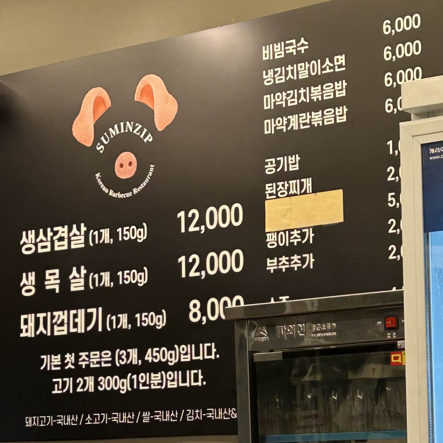 수민집 메뉴판이에요.