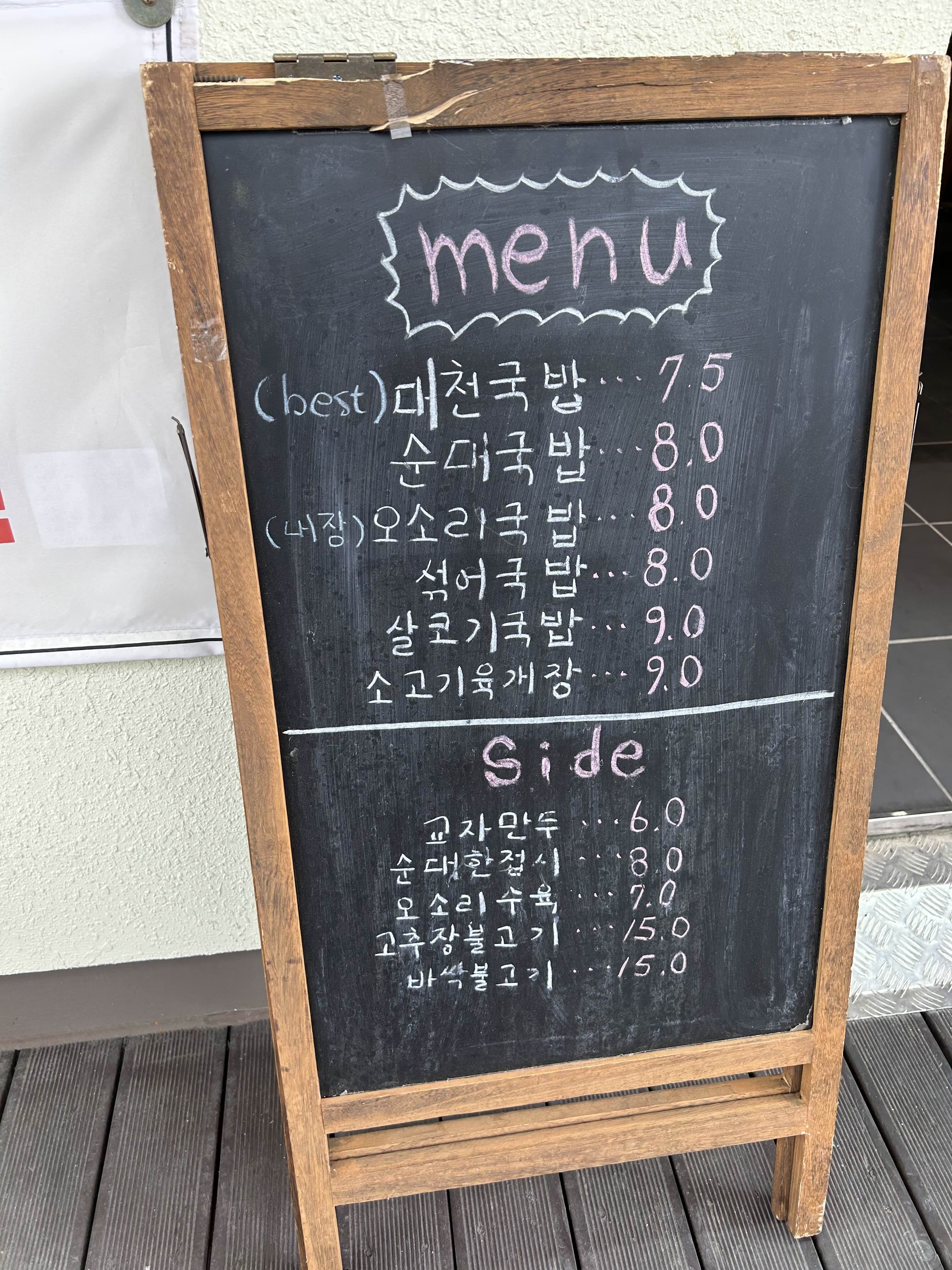 입구에 이렇게 입간판식으로 메뉴판이 있었어요.