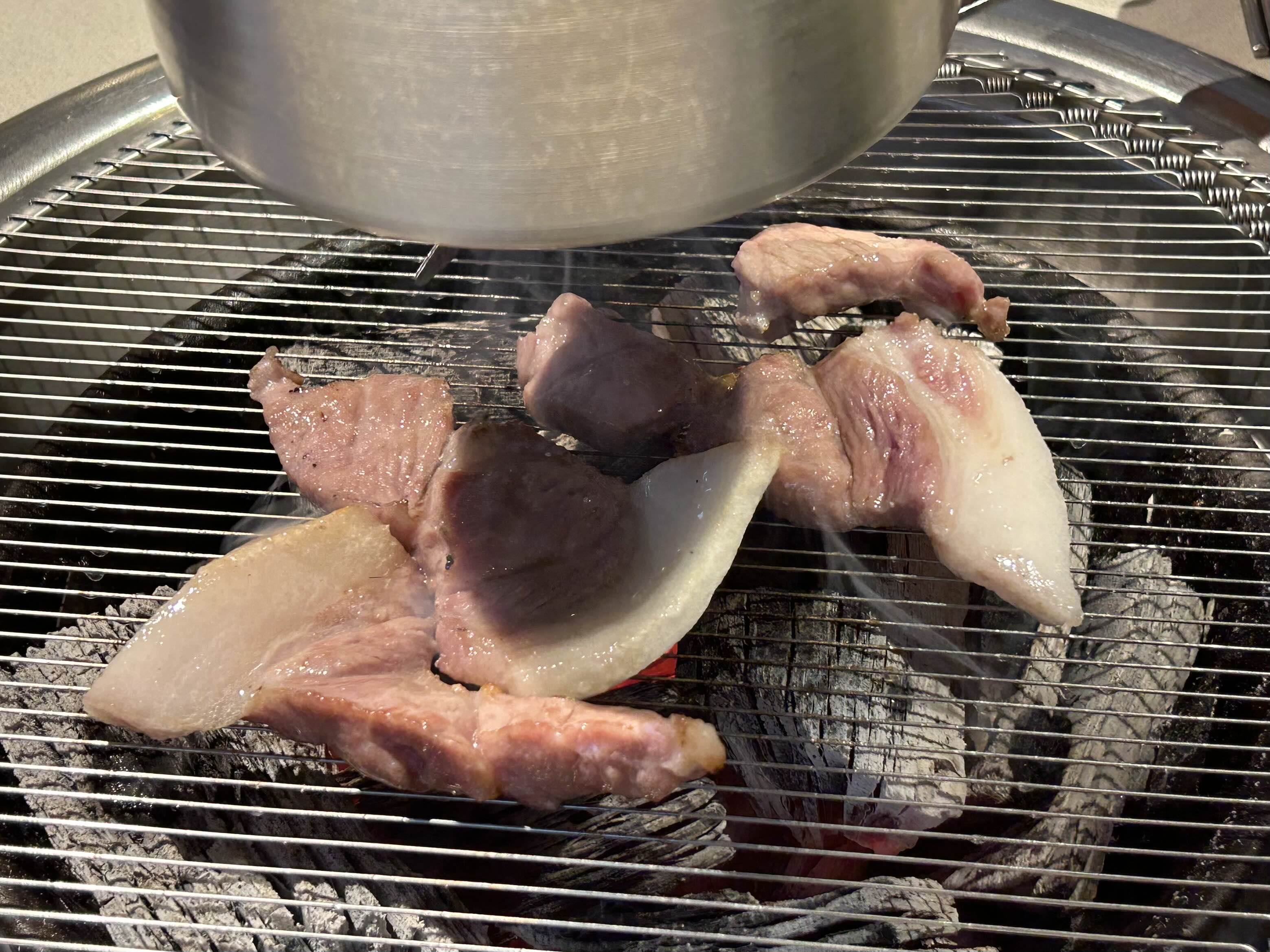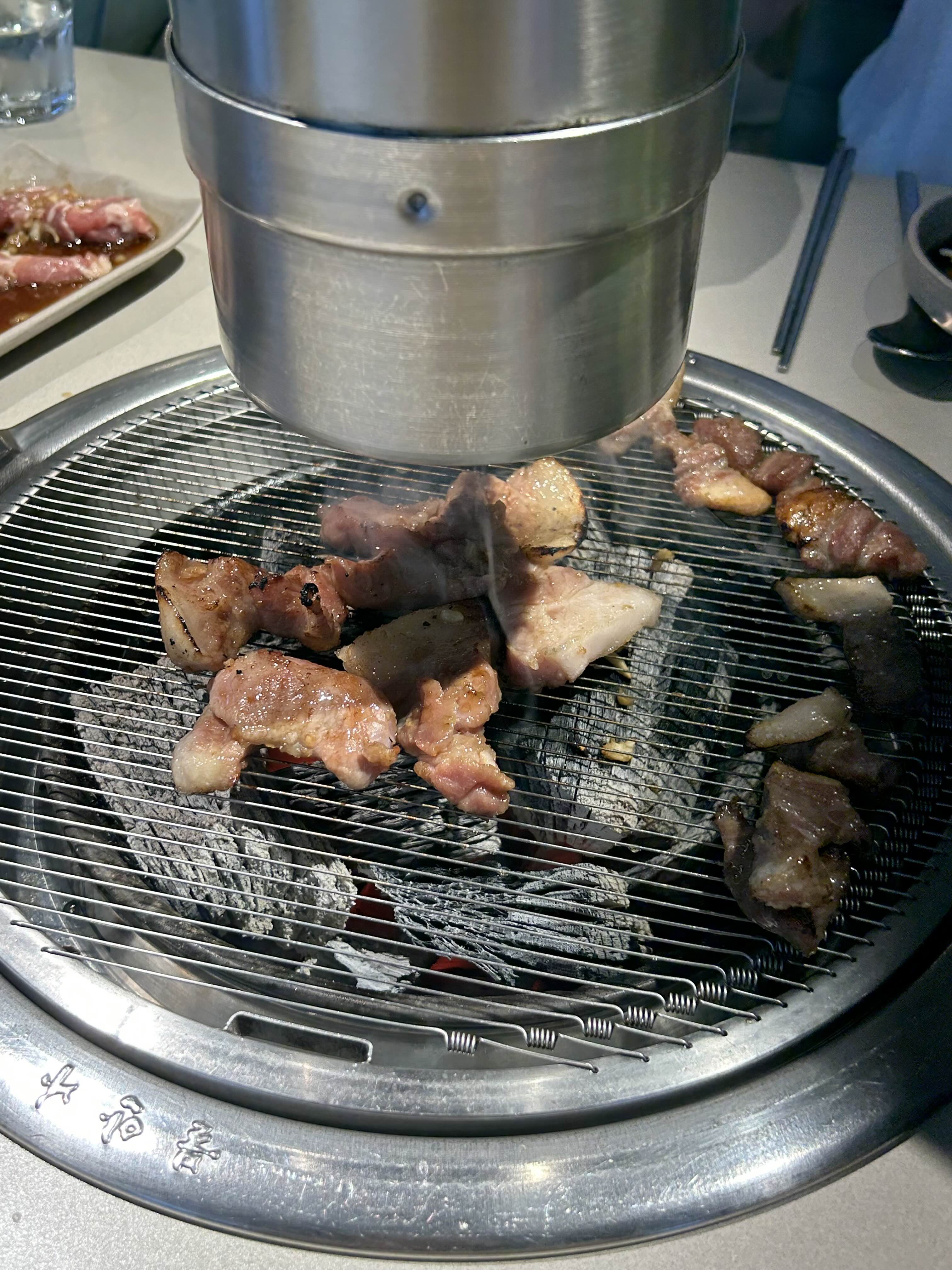 최고급 국산 참숯에 구워 먹는 국산 생 목덜미살! >_<