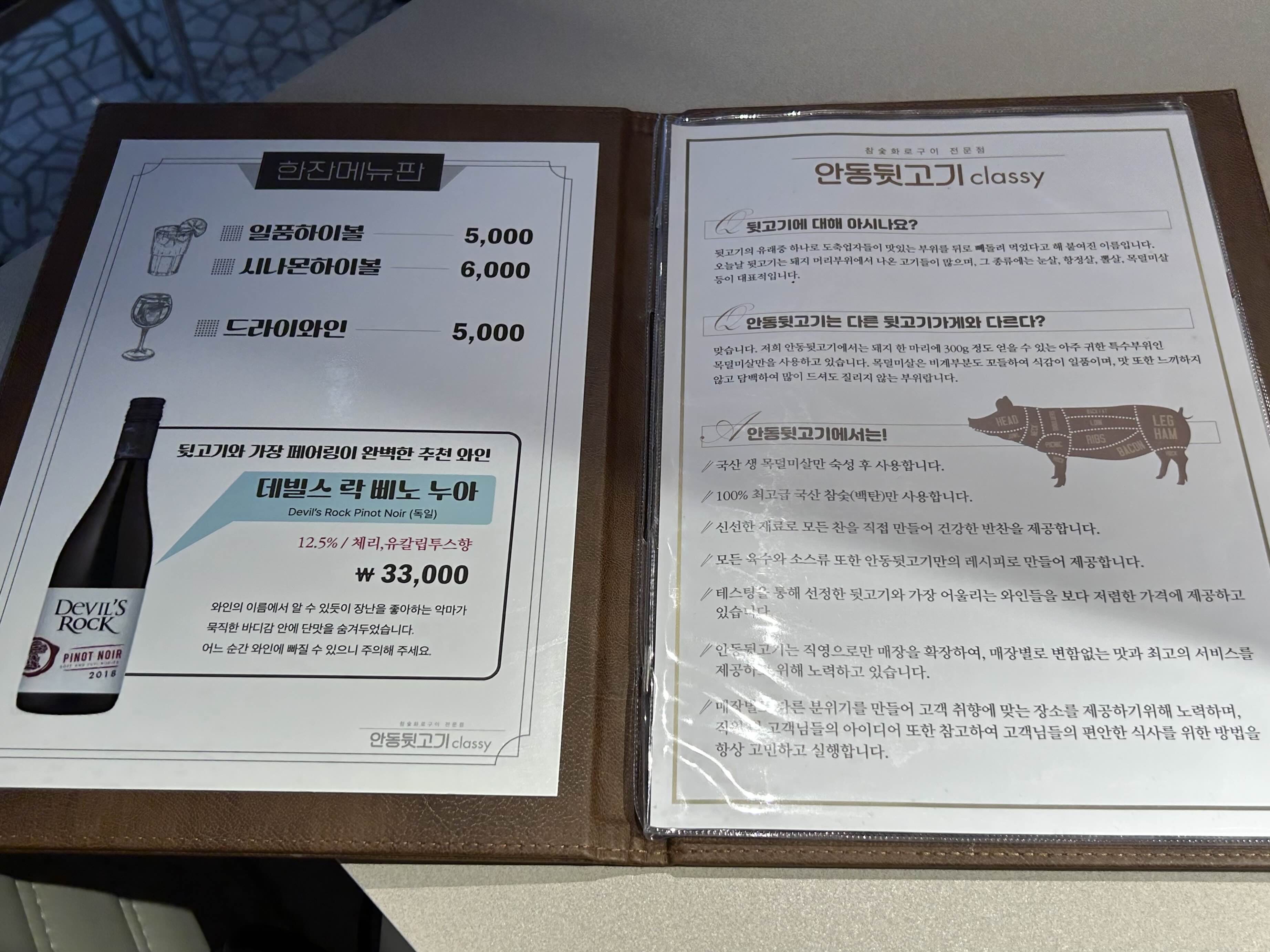 테스팅을 통해 선정한 뒷고기와 어울리는 와인도 있어요.