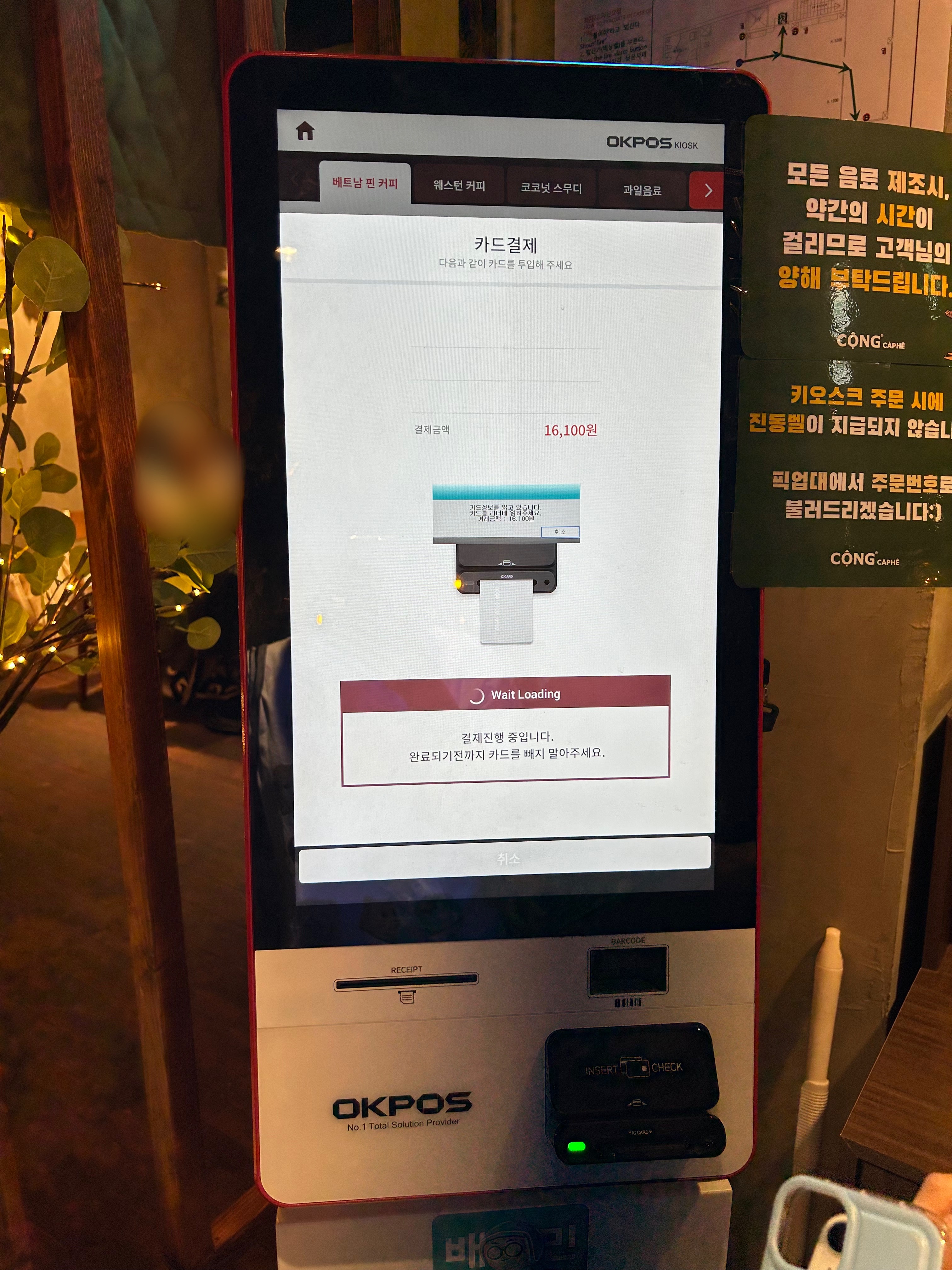 주문은 키오스크로 했어요.