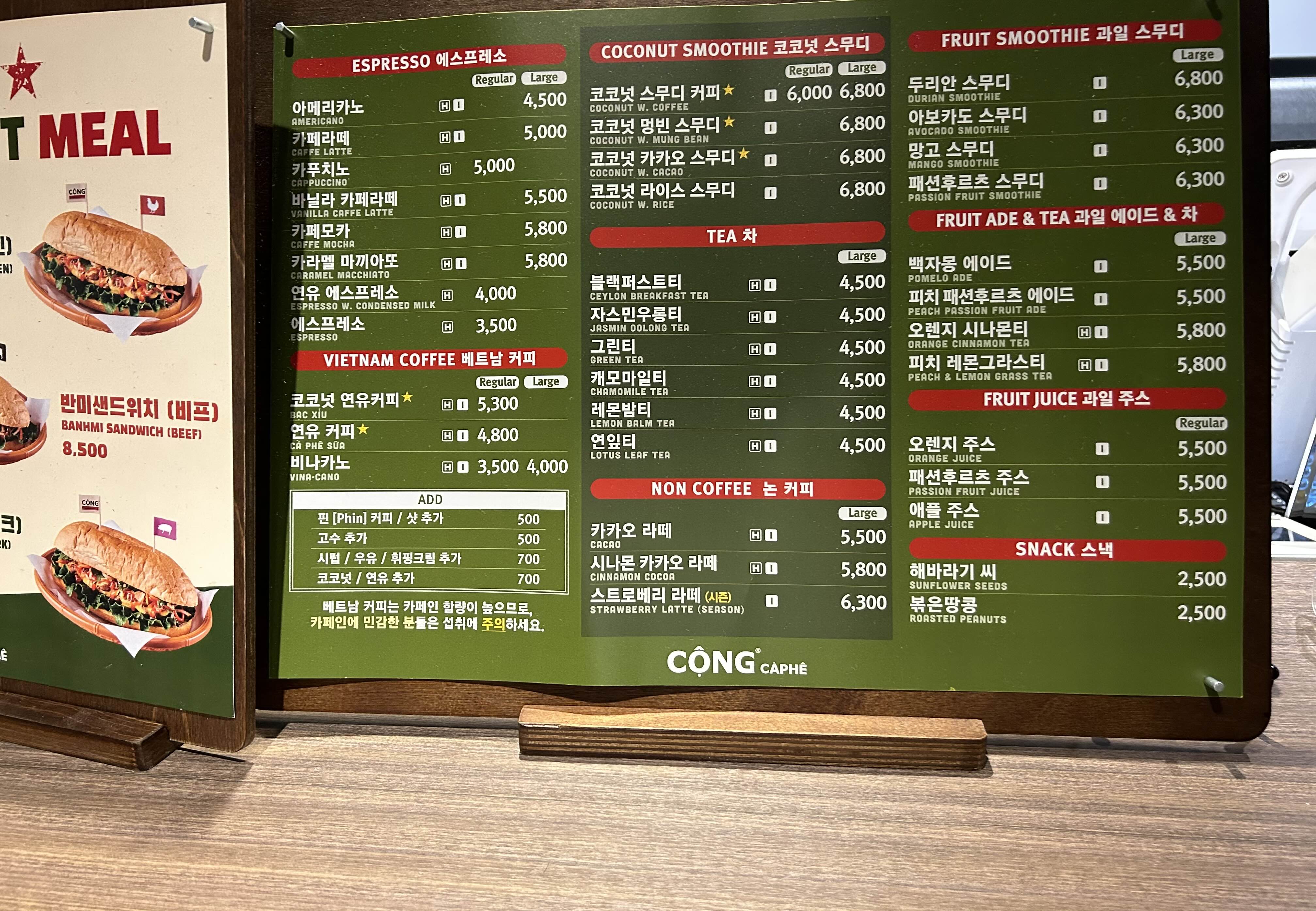 콩카페 메뉴판도 찍어보았습니당.
