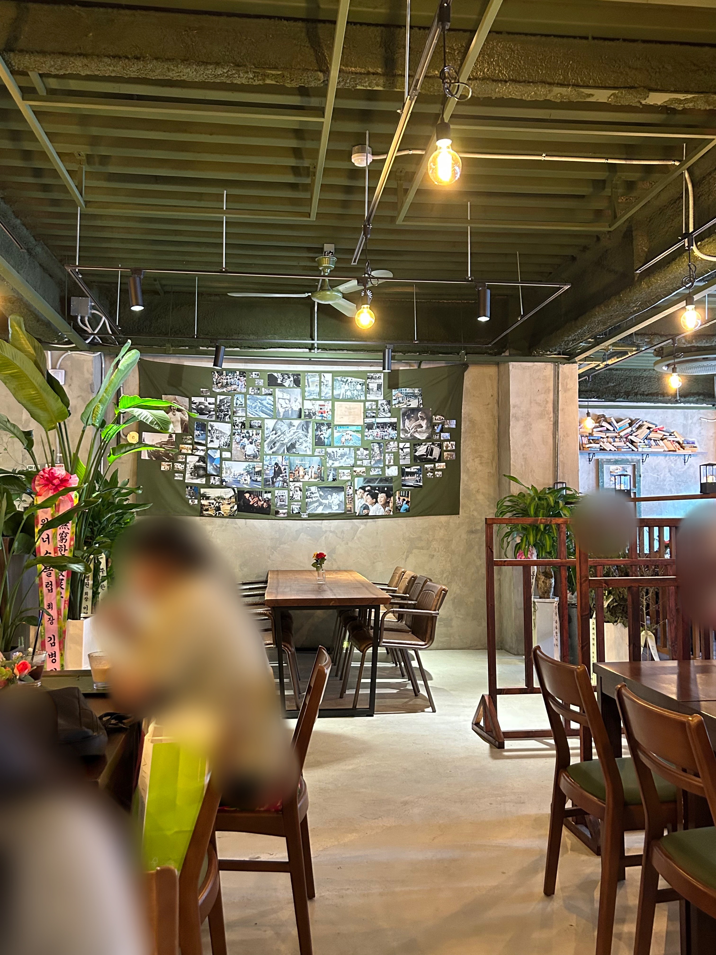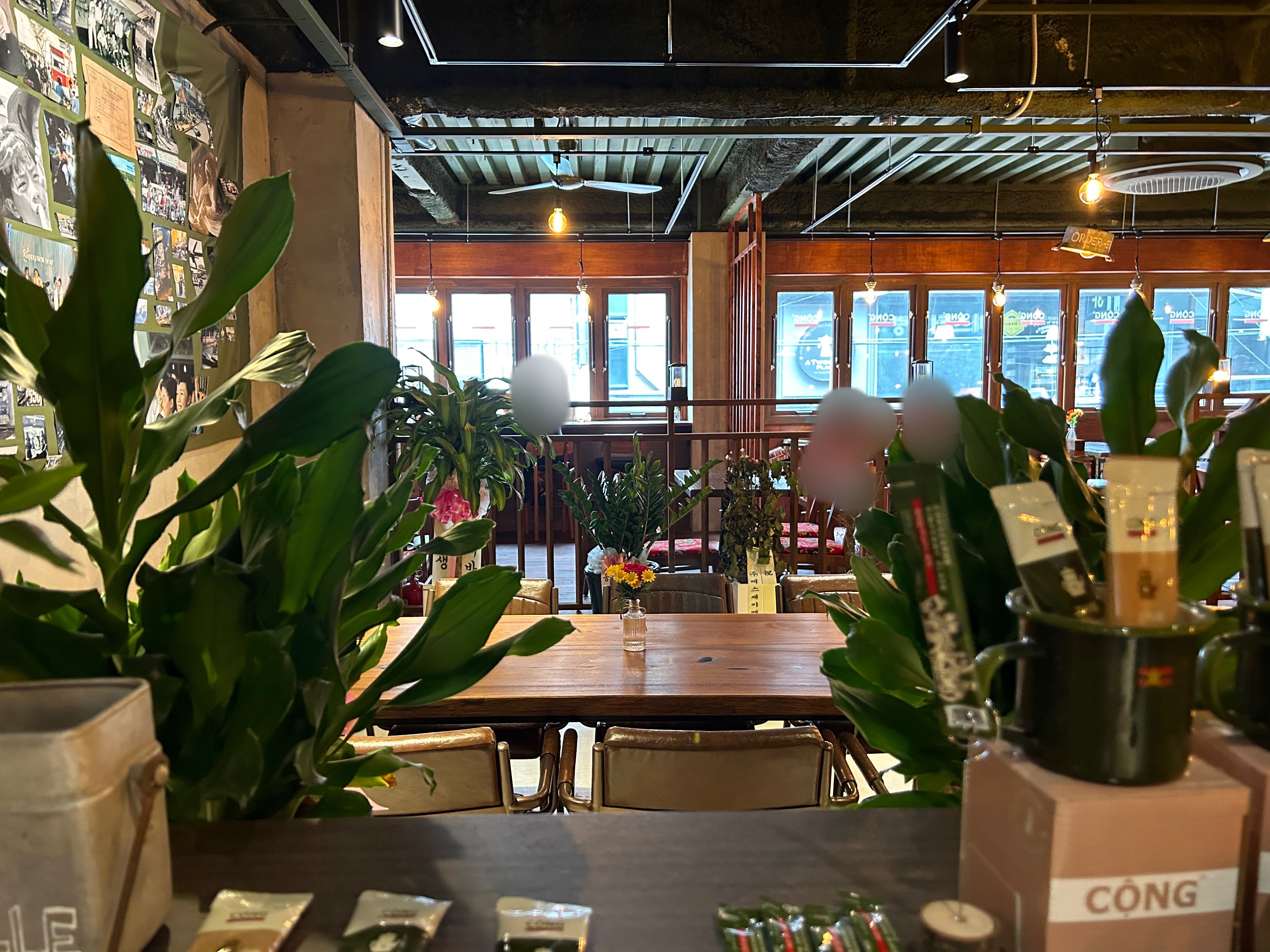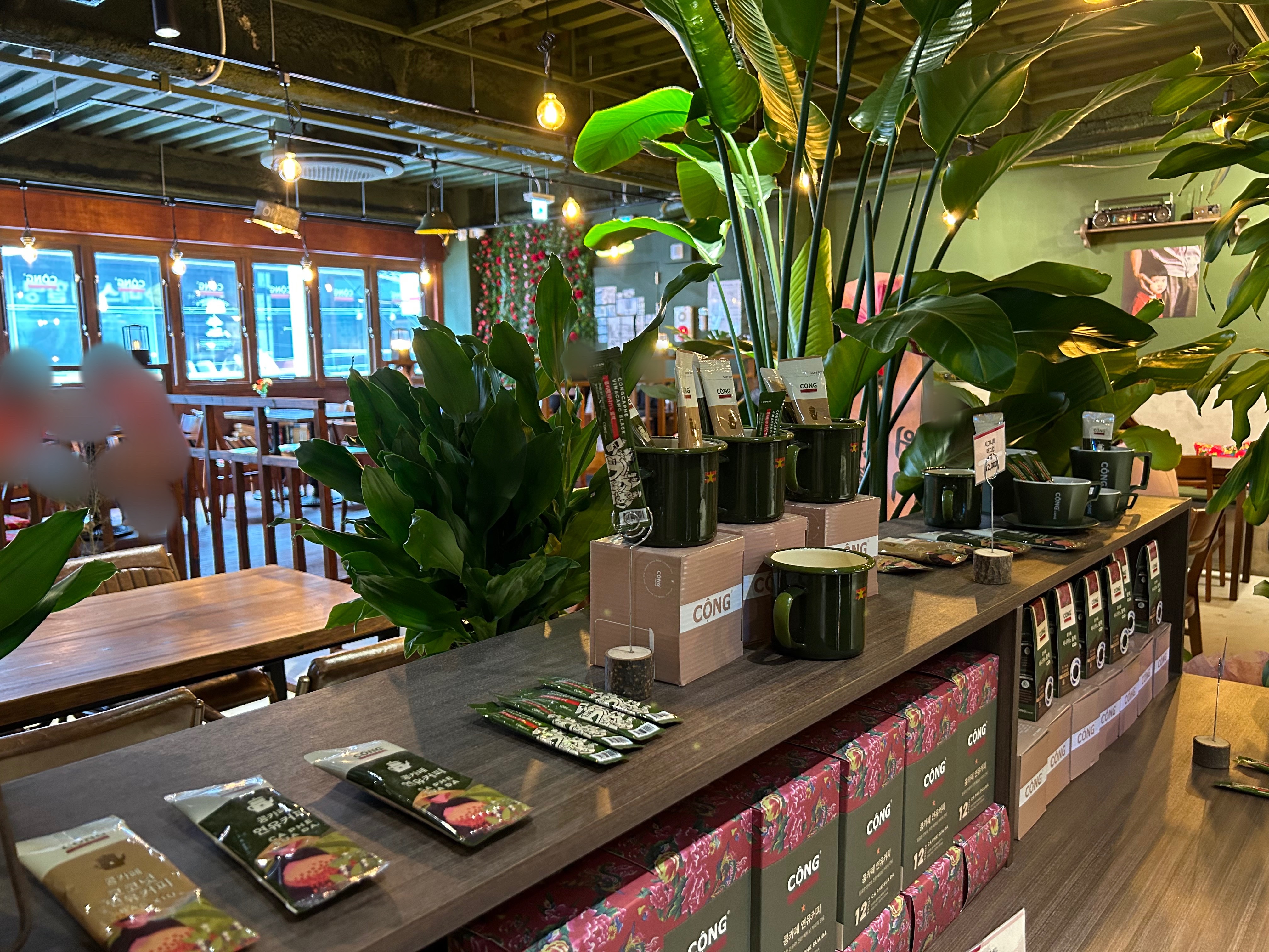 우드톤과 식물들의 조화가 숲속같은 느낌의 콩카페