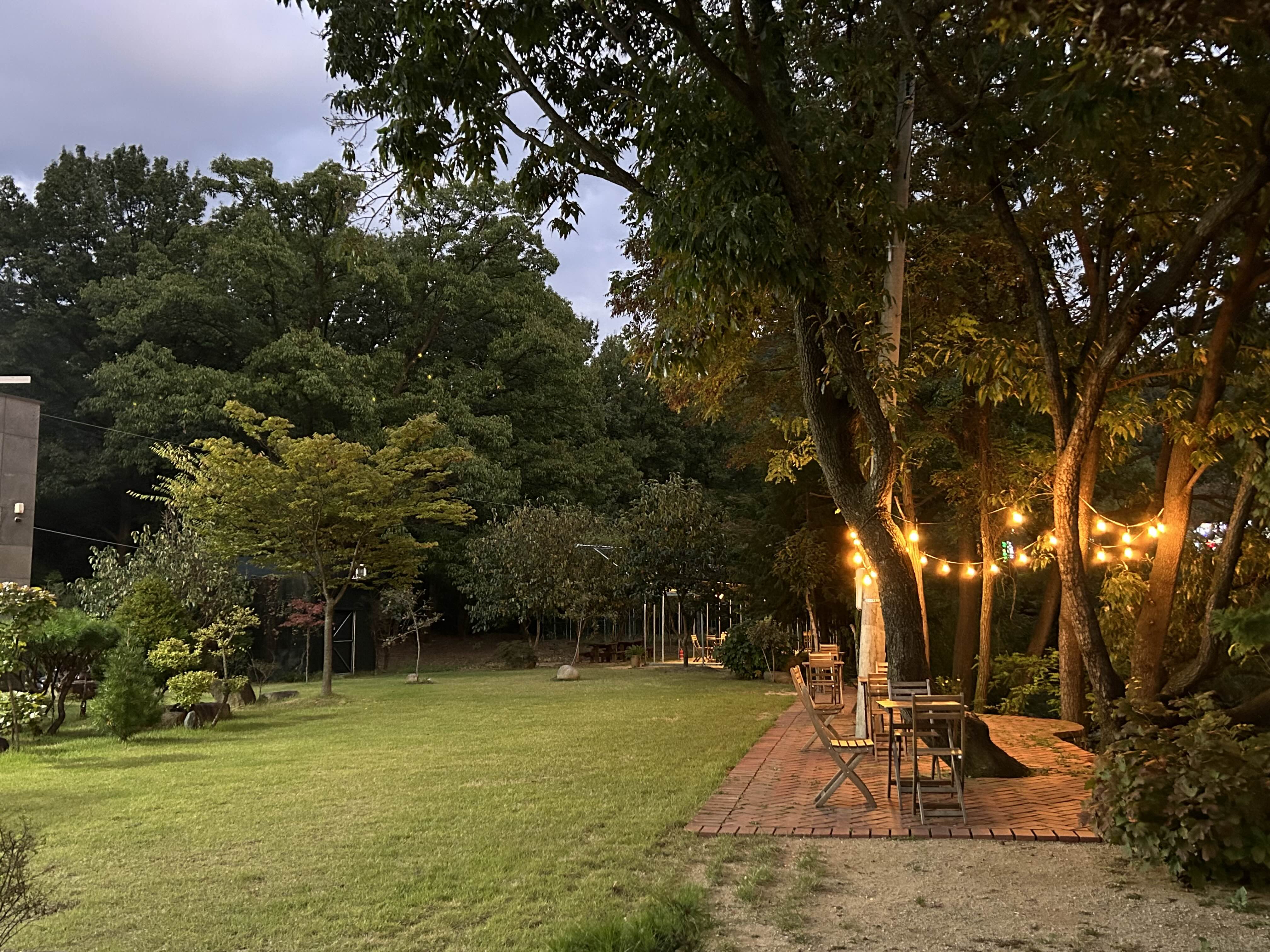 그리고 마당엔 주황색 조명빛이 갬성적인 예쁜 야외석도 있었어요.