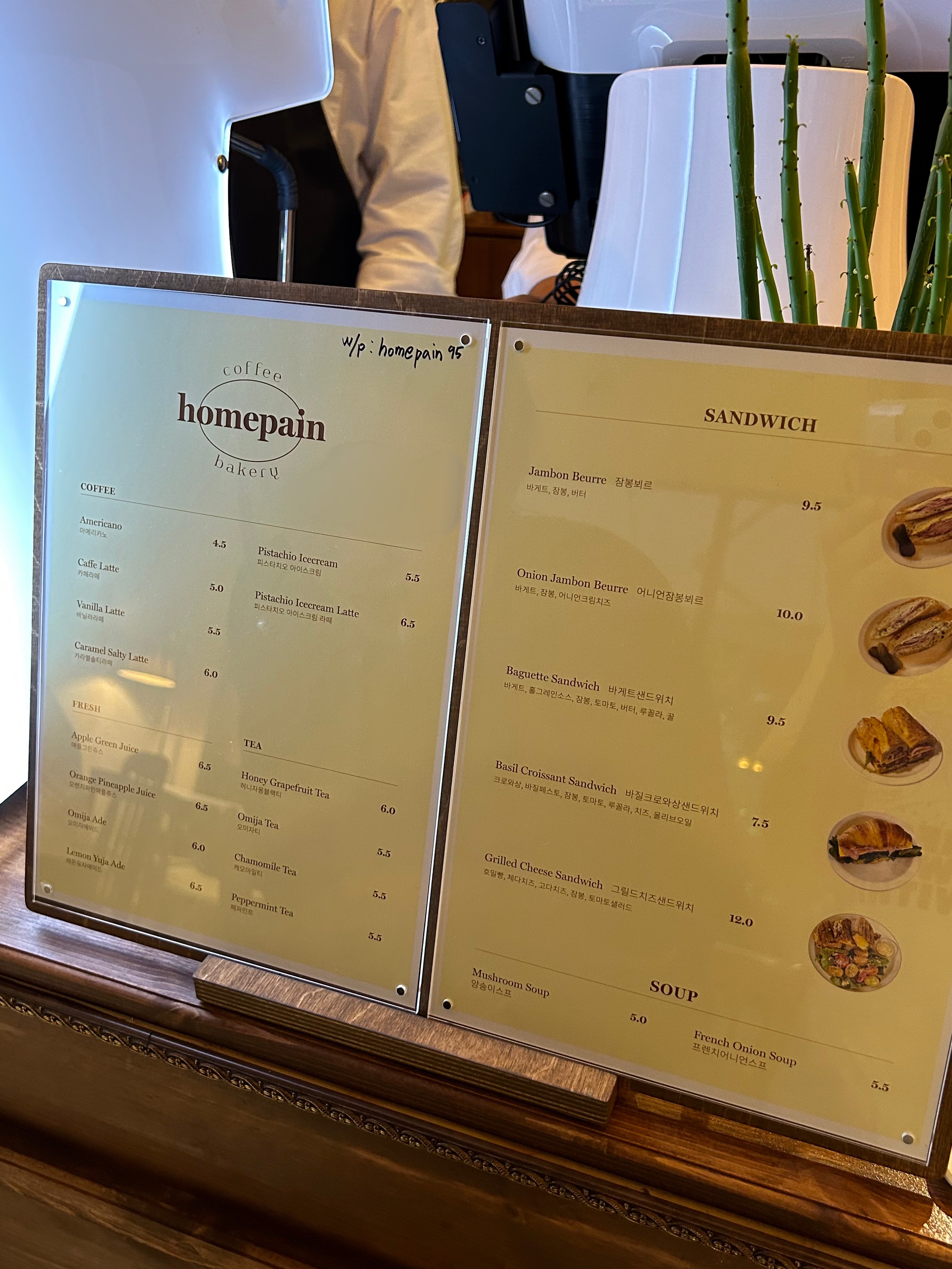 브런치 카페 답게 샌드위치,스프 메뉴판두 있어용.