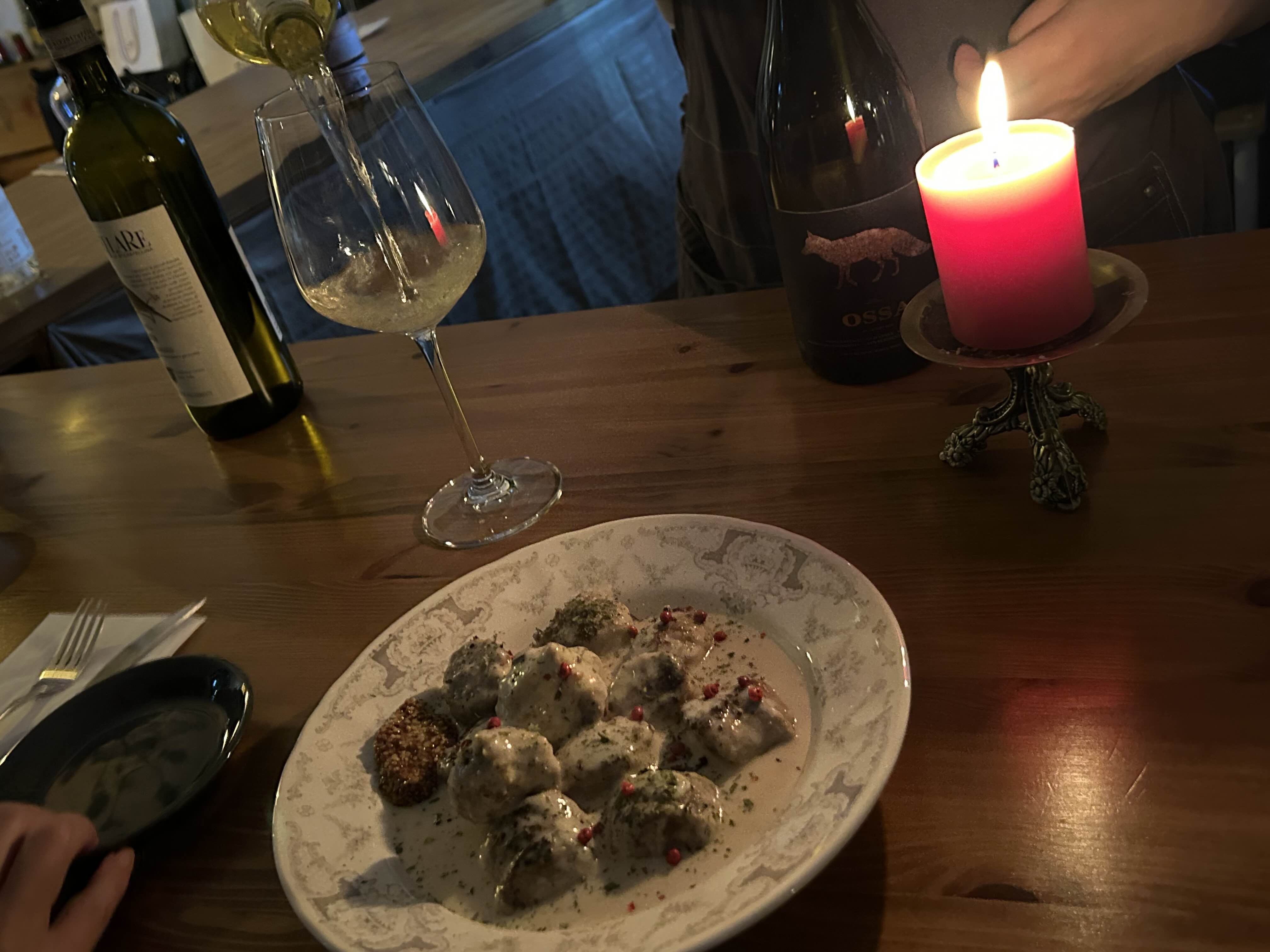 크림소스미트볼, 바질관자파스타 주문했어요.
