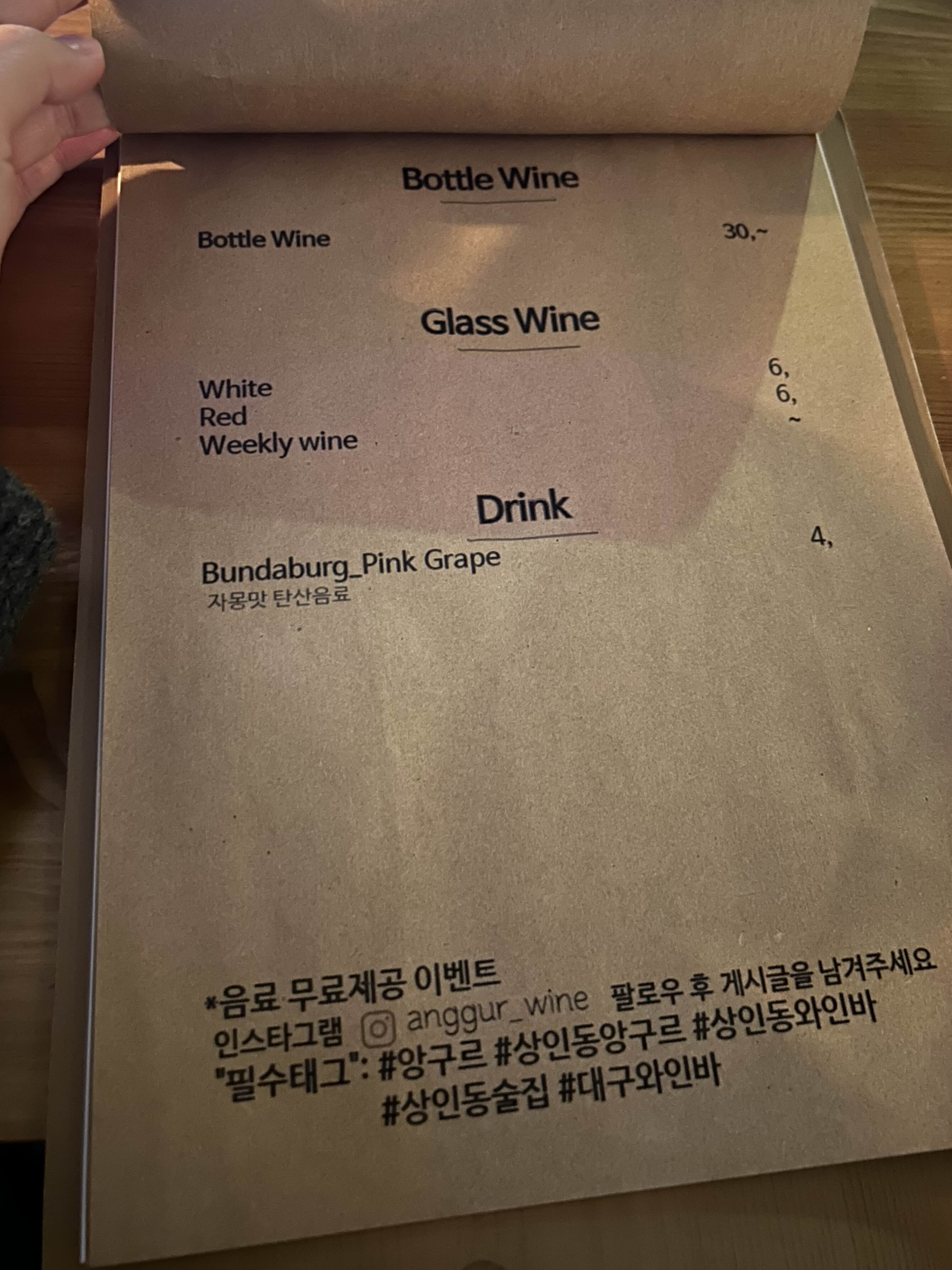 앙구르 메뉴판