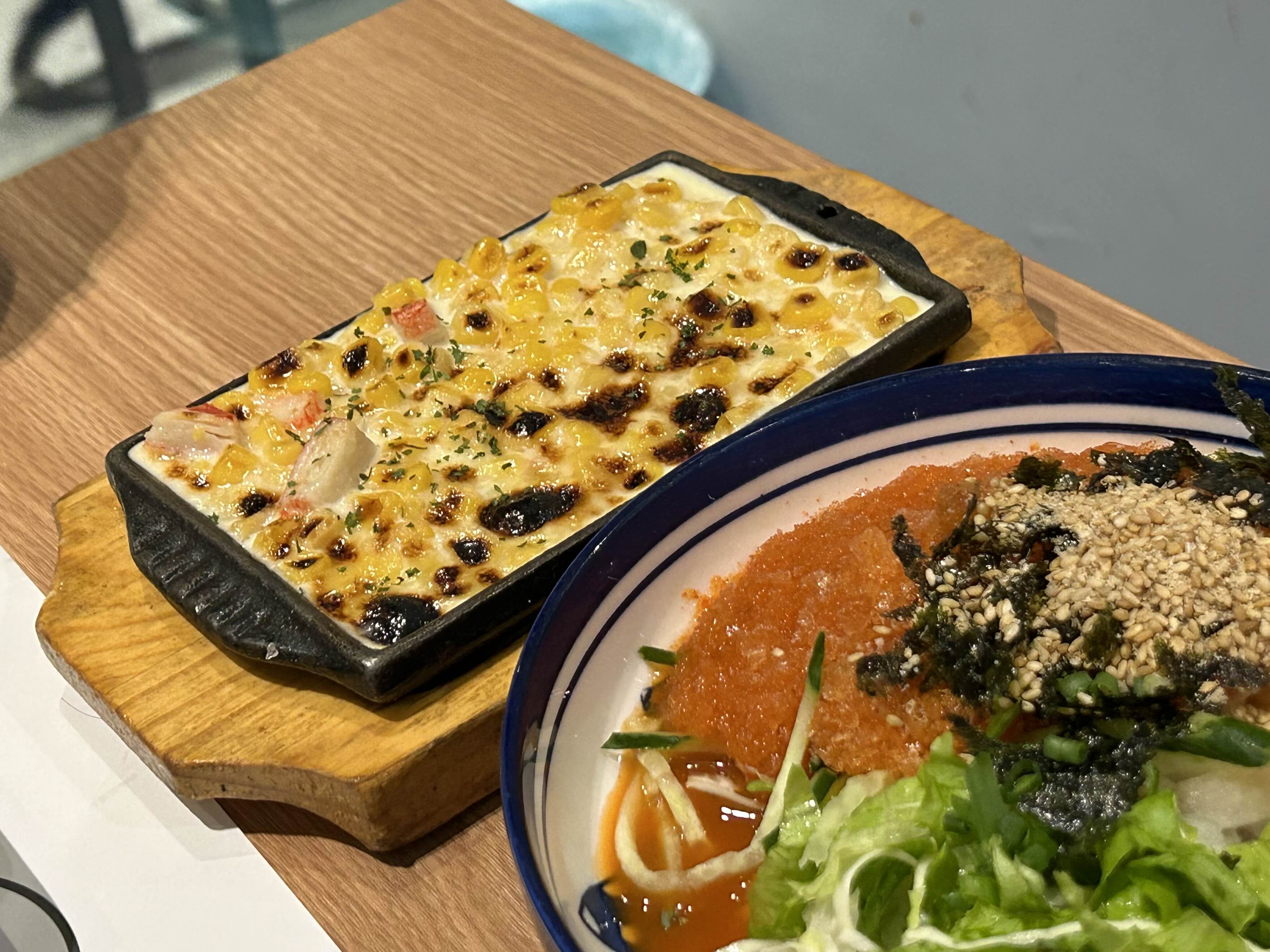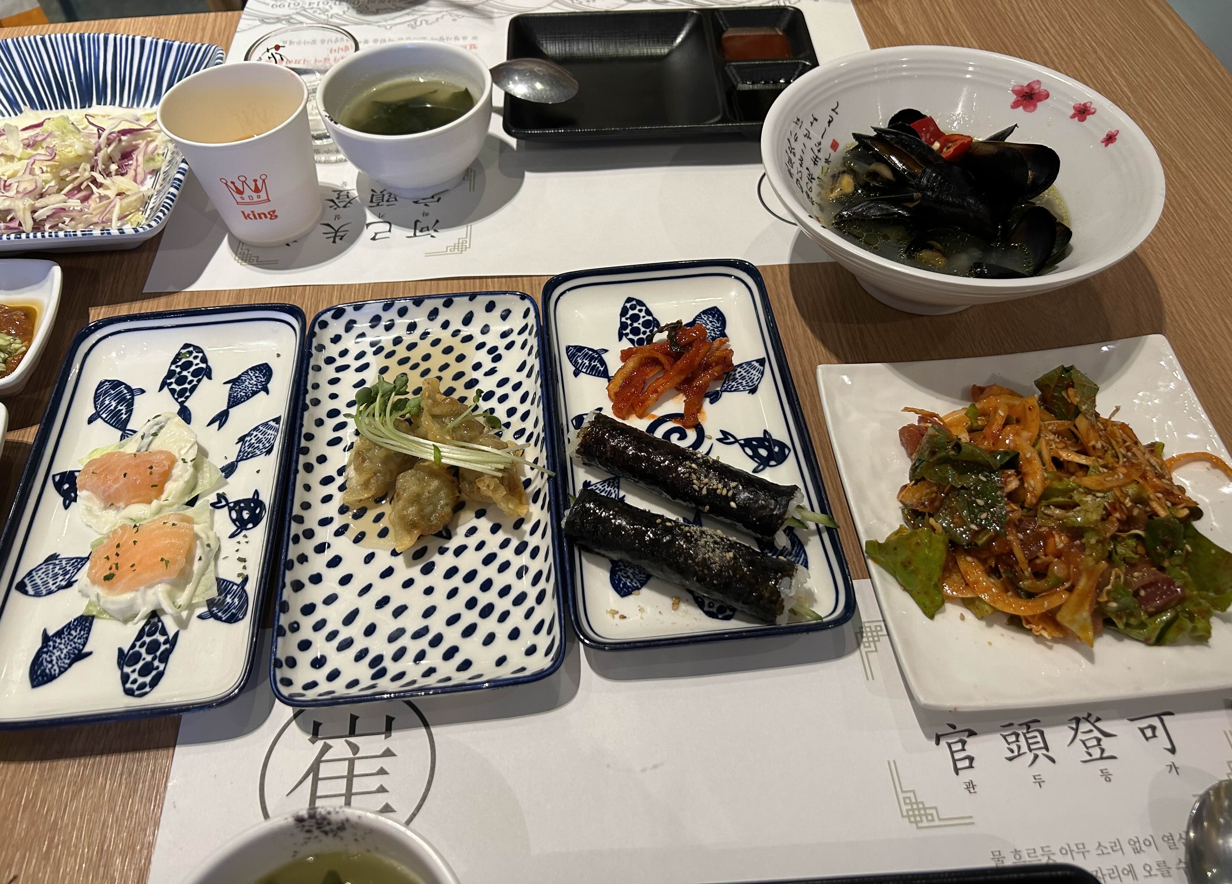 무침회 김밥? 튀긴만두 연어샐러드? 홍합탕?