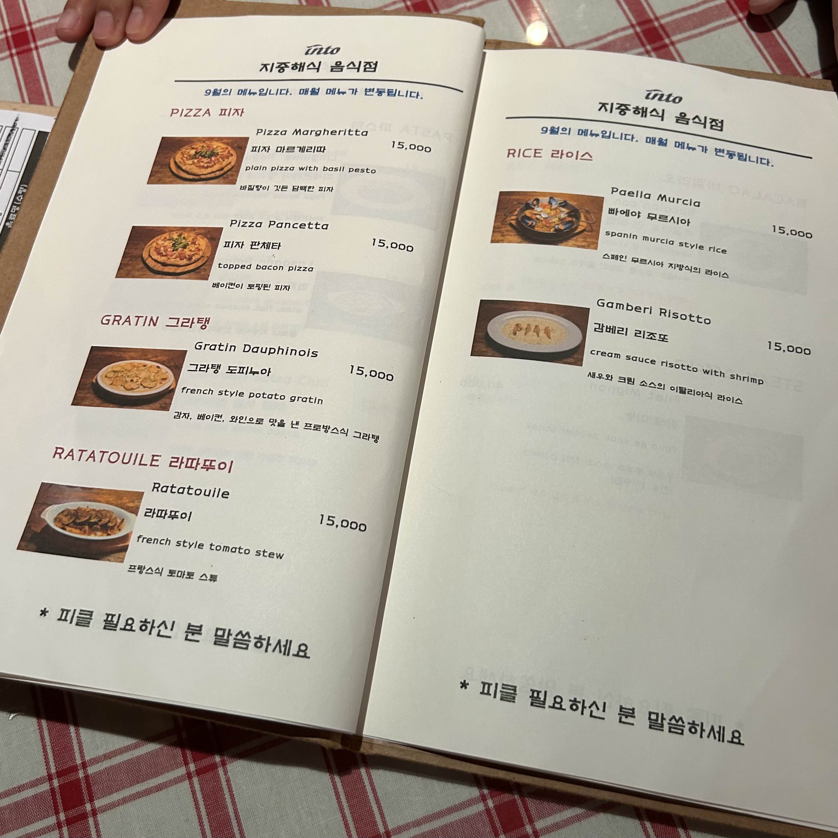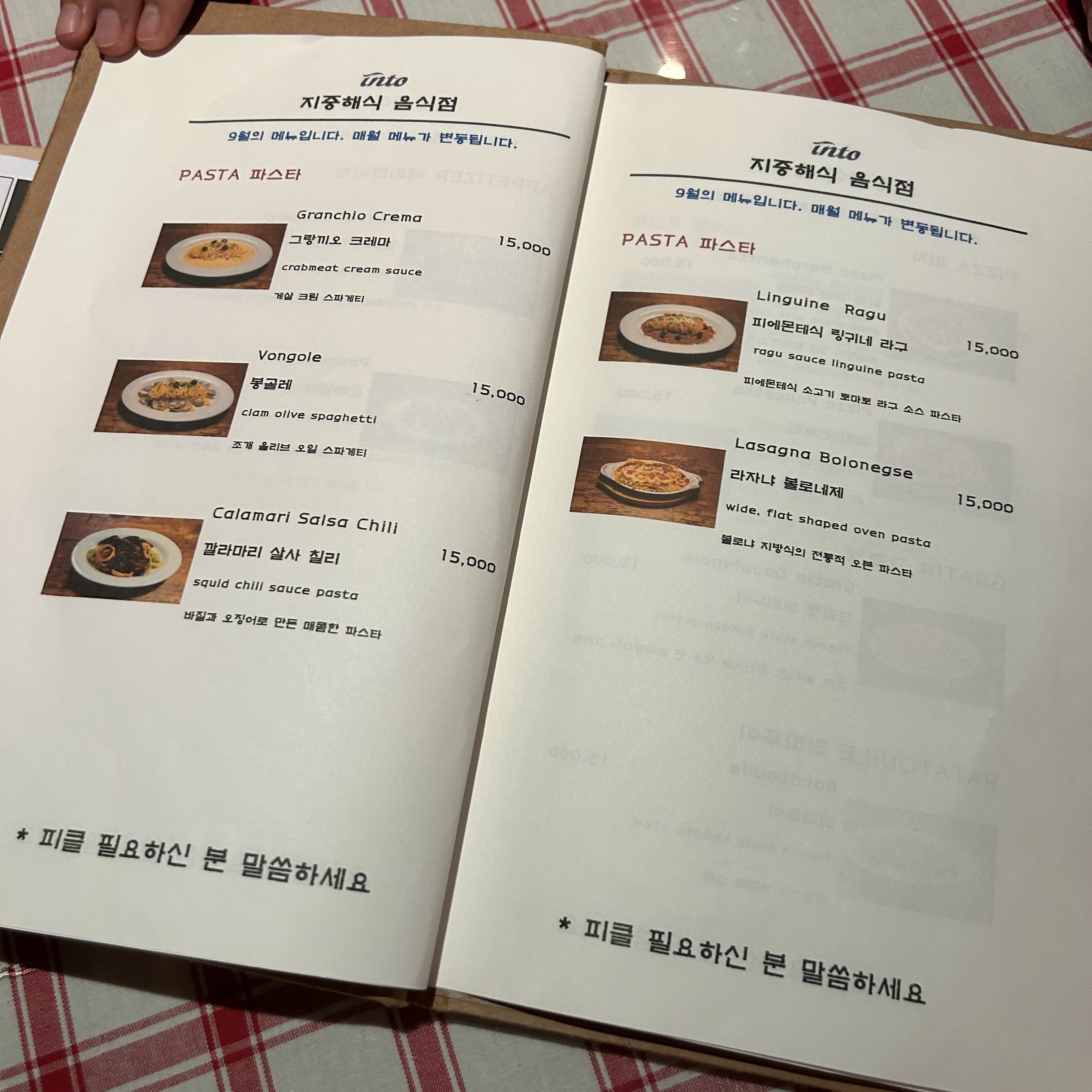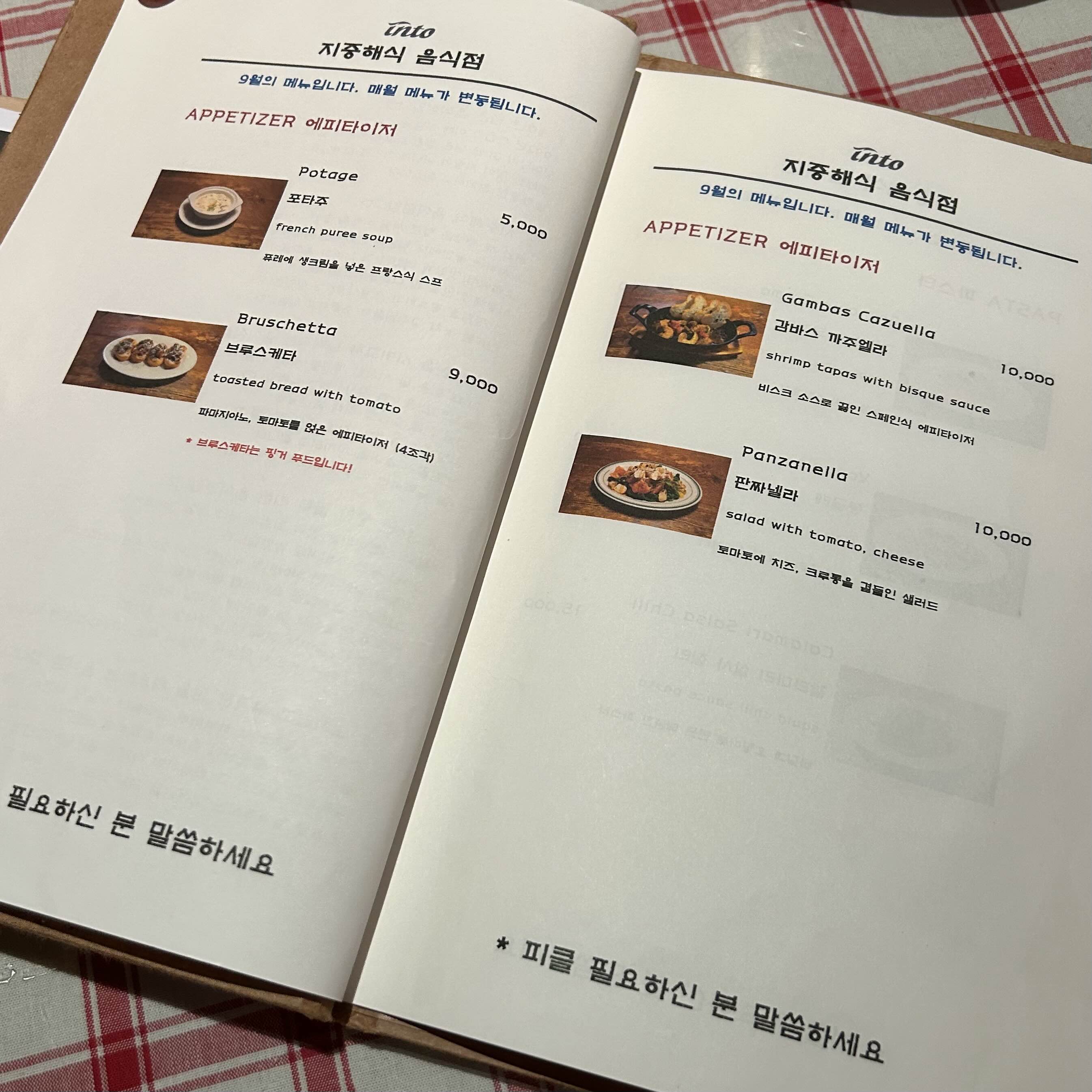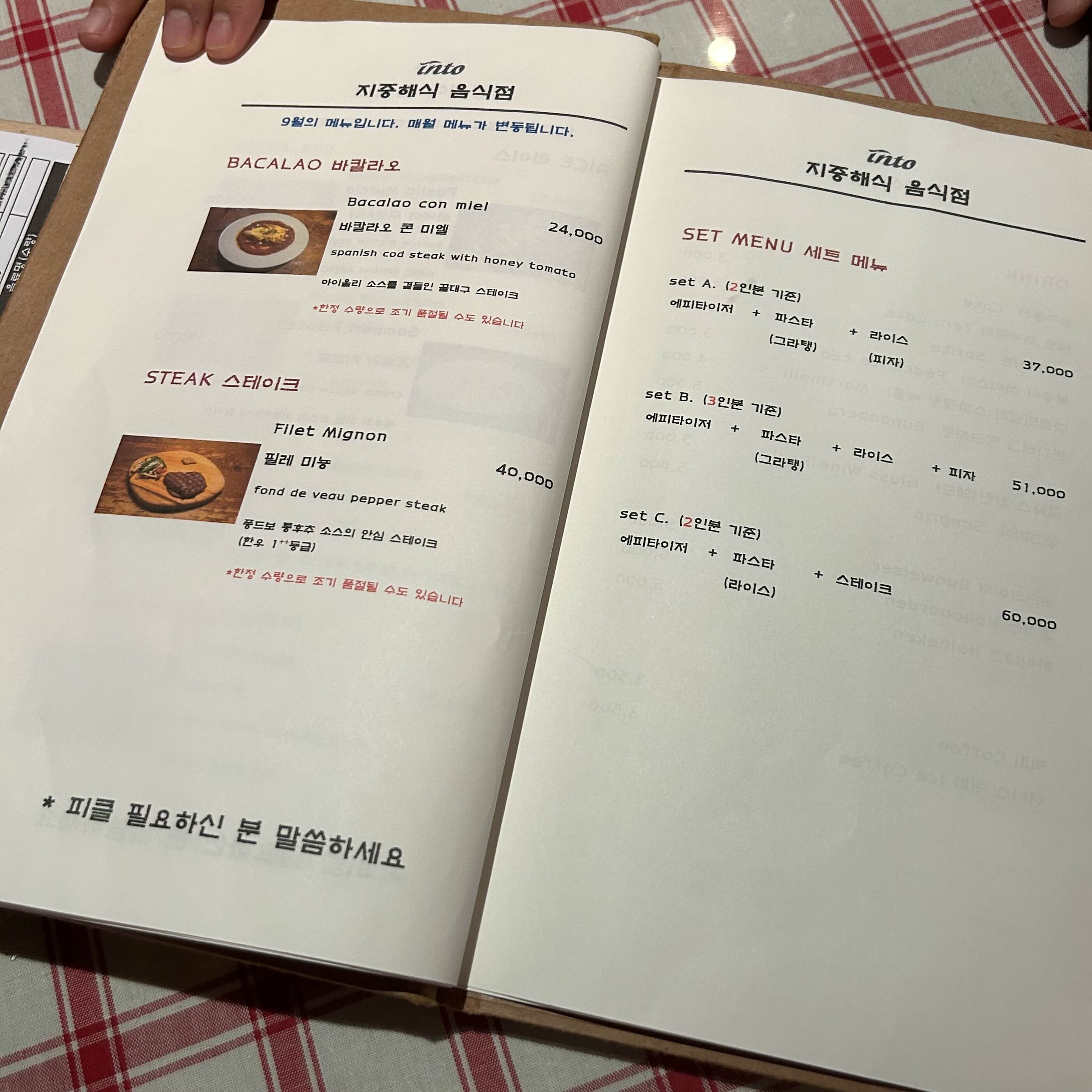 그리고 이 땐 9월의 메뉴였고 매월 메뉴가 변동된다고 적혀있네요.