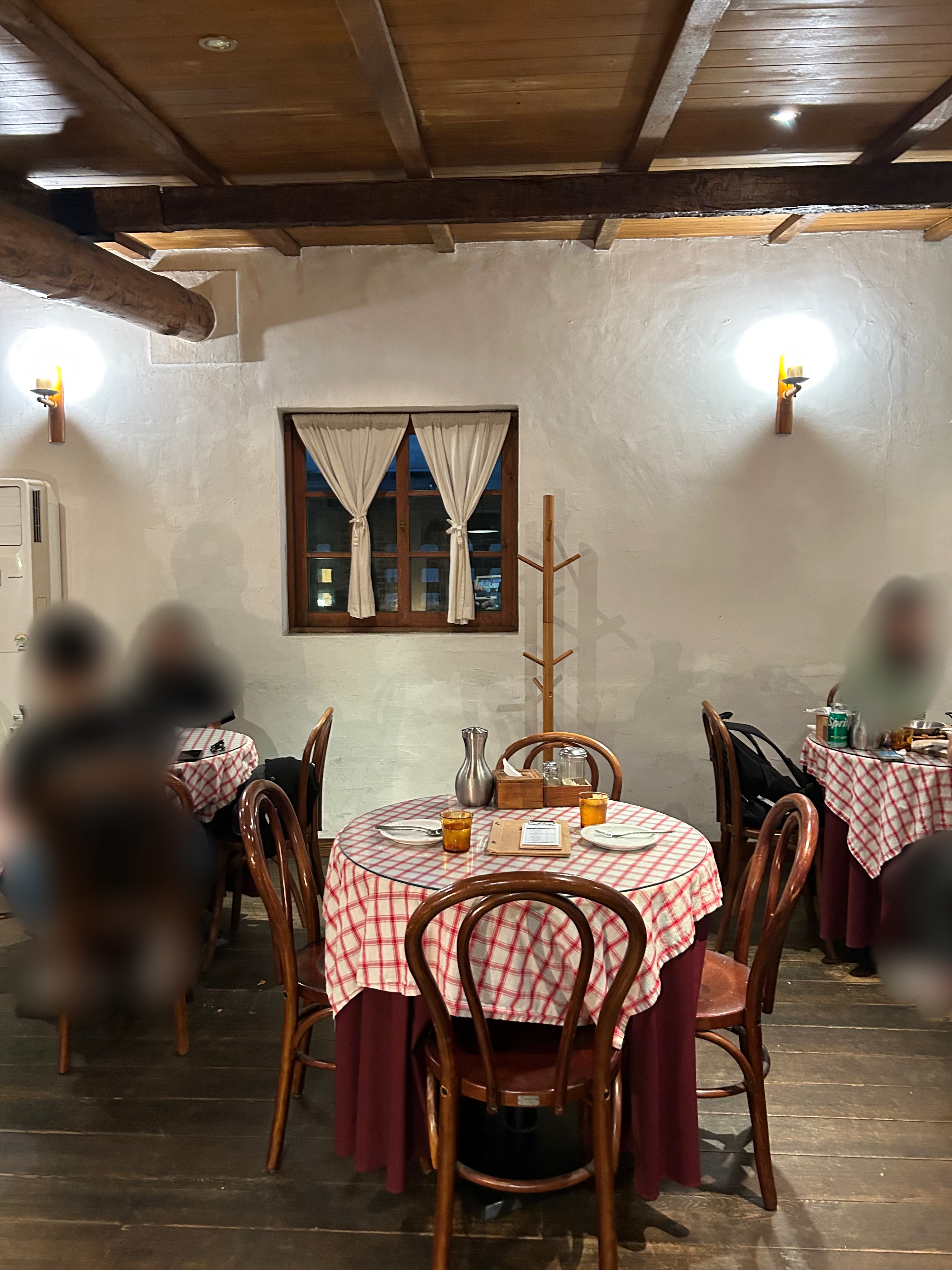 2인 테이블 셋팅이 되어있었고 식탁보도 넘 귀엽더라구요.
