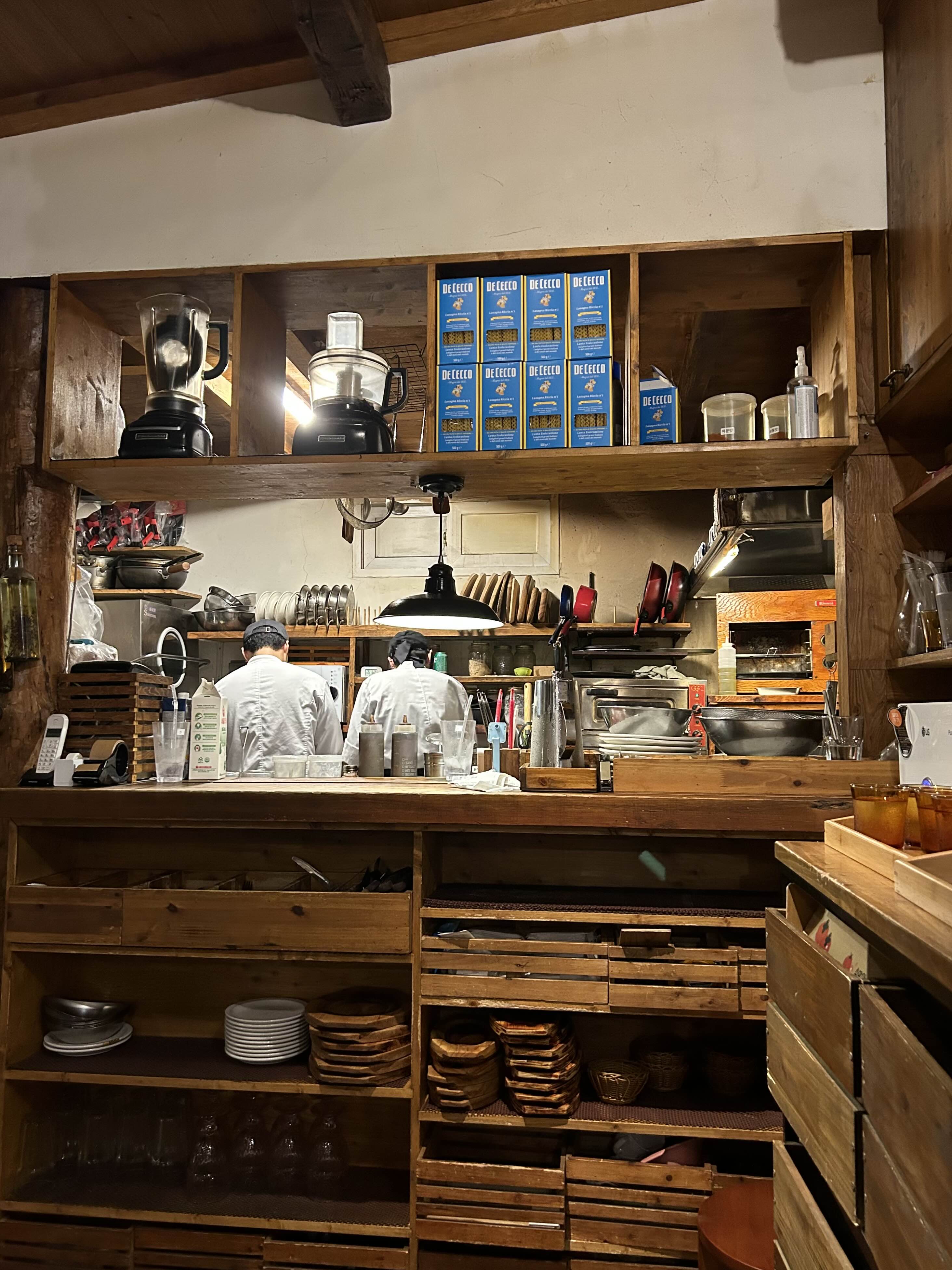 키친 바로 앞 자리가 비어 있고 적당해 보여서 여기 앉았어요.
