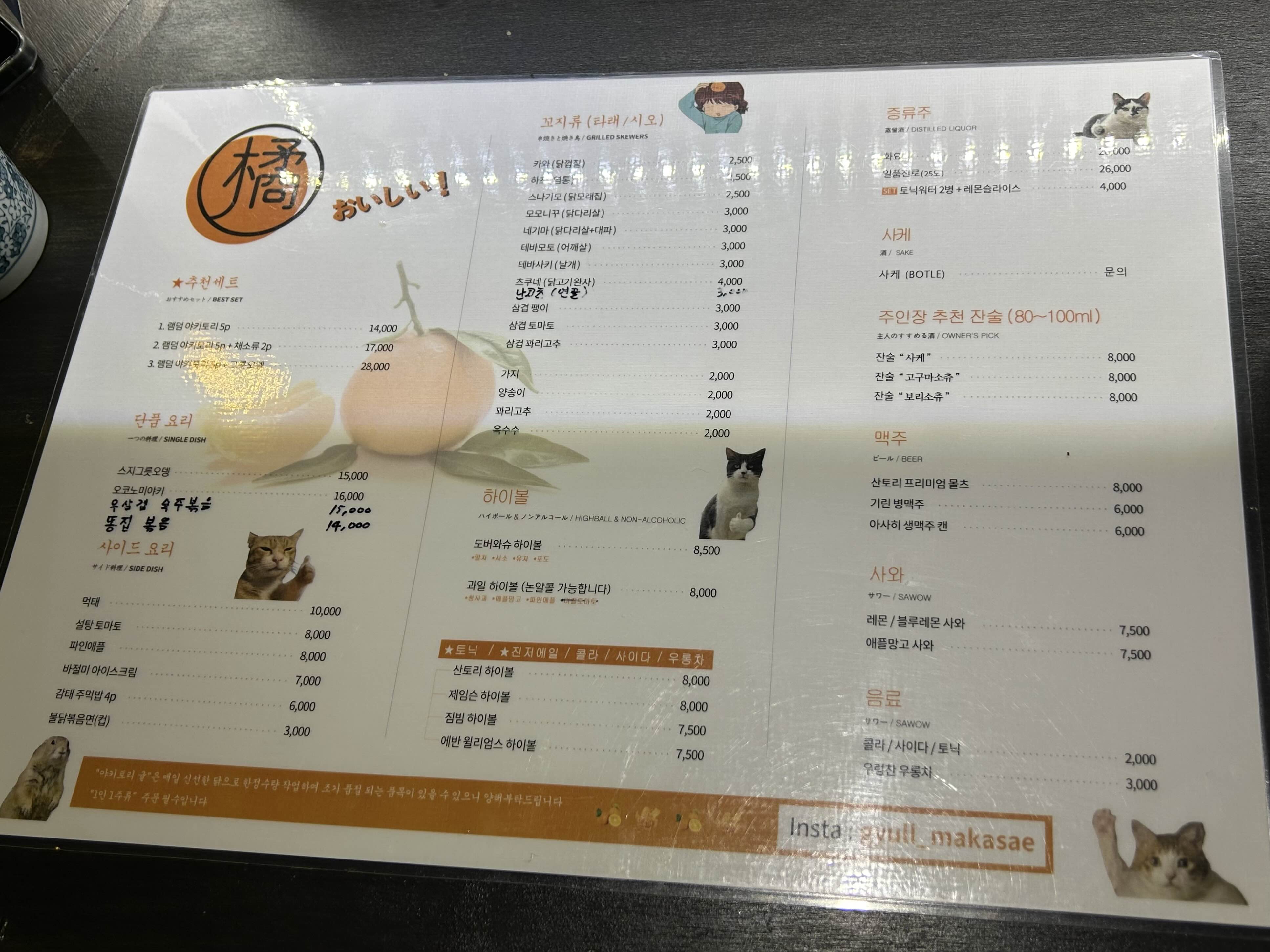 메뉴판 여기저기 고양이 누끼 따서 배치한게 졸귀탱…
