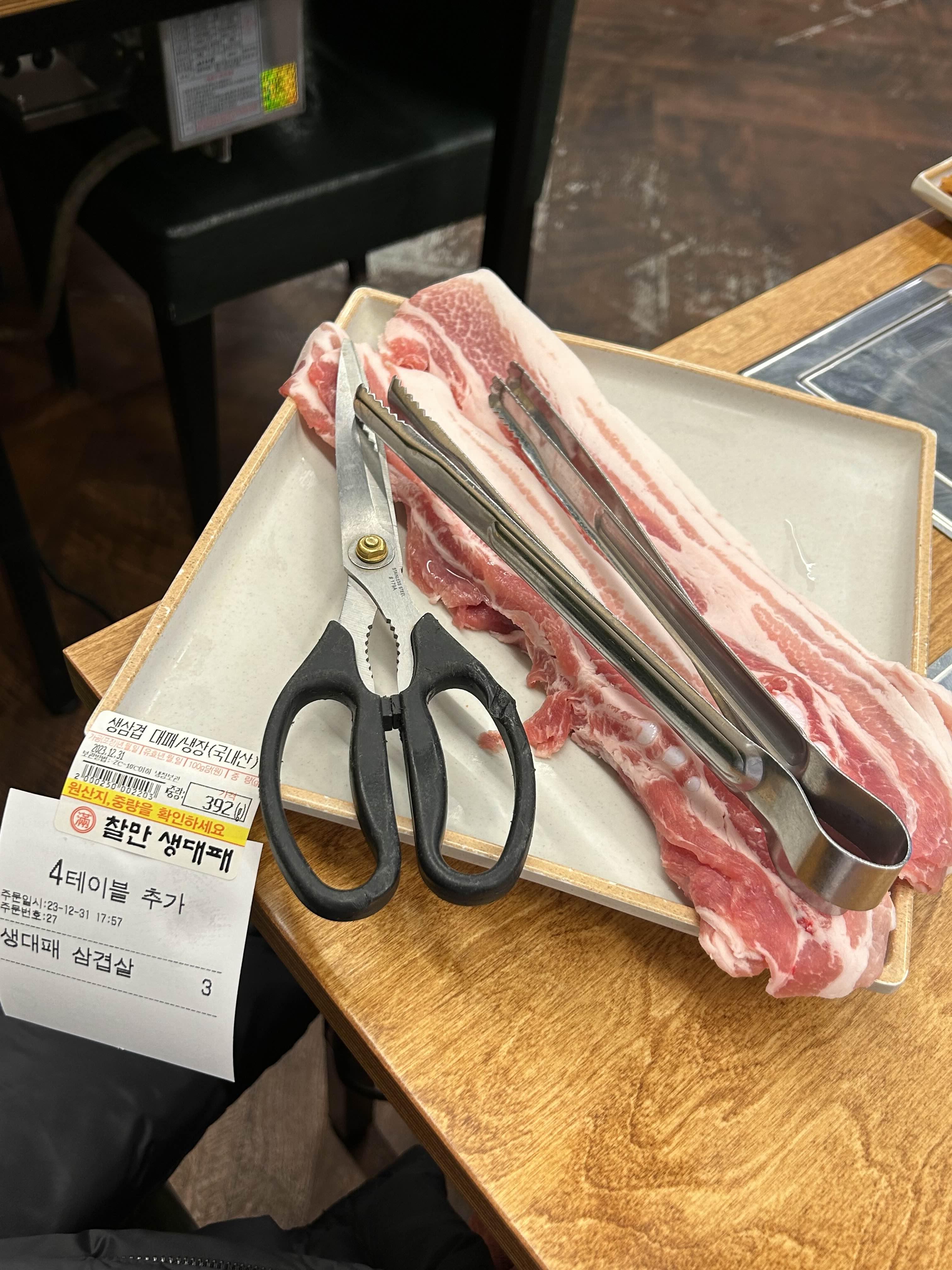 저희는 생대패 삼겹살 3개부터 주문했어요.