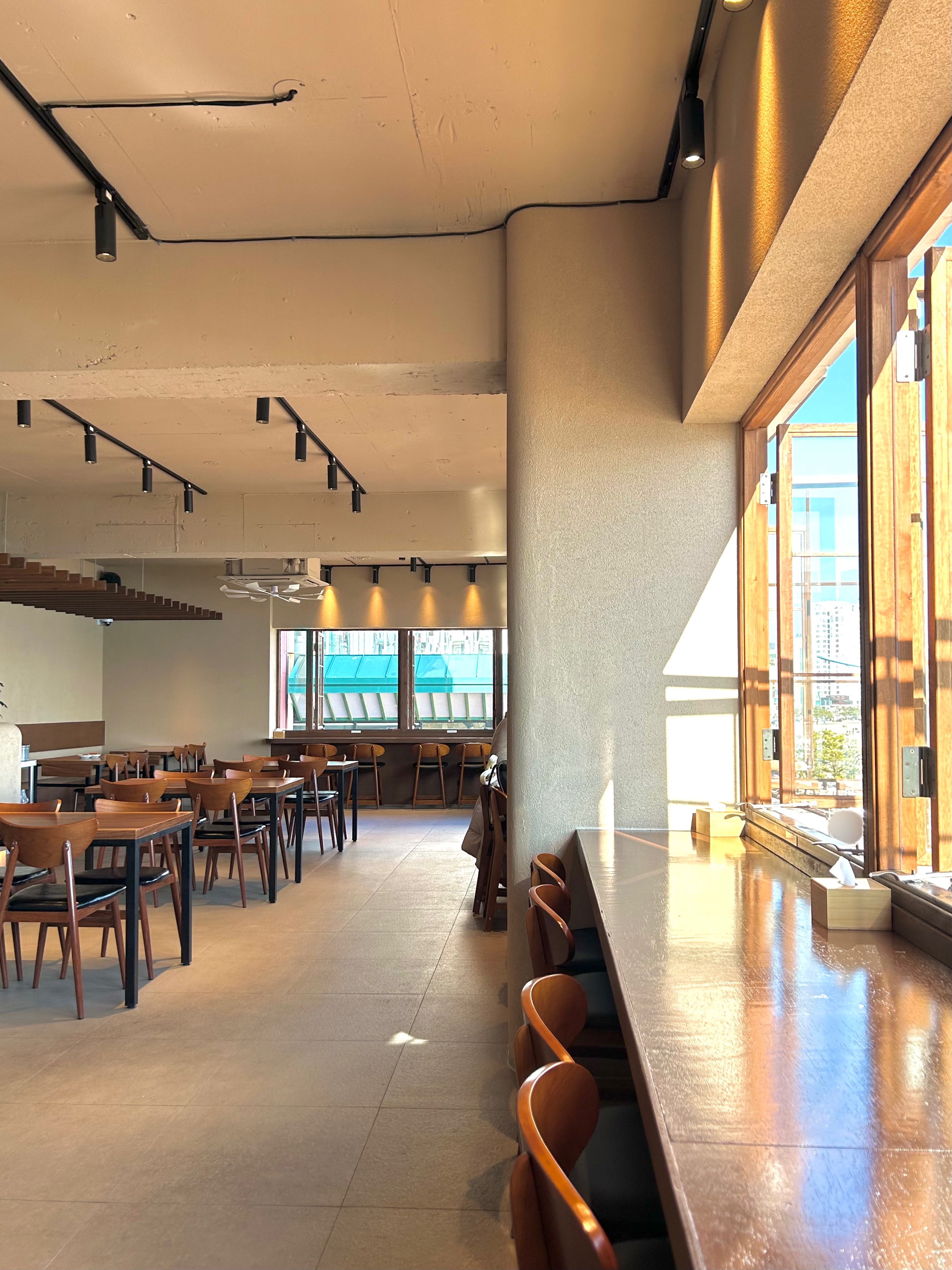 창가를 따라 쭉~ 자리가 있고 홀에도 테이블 몇 개가 있었어요.