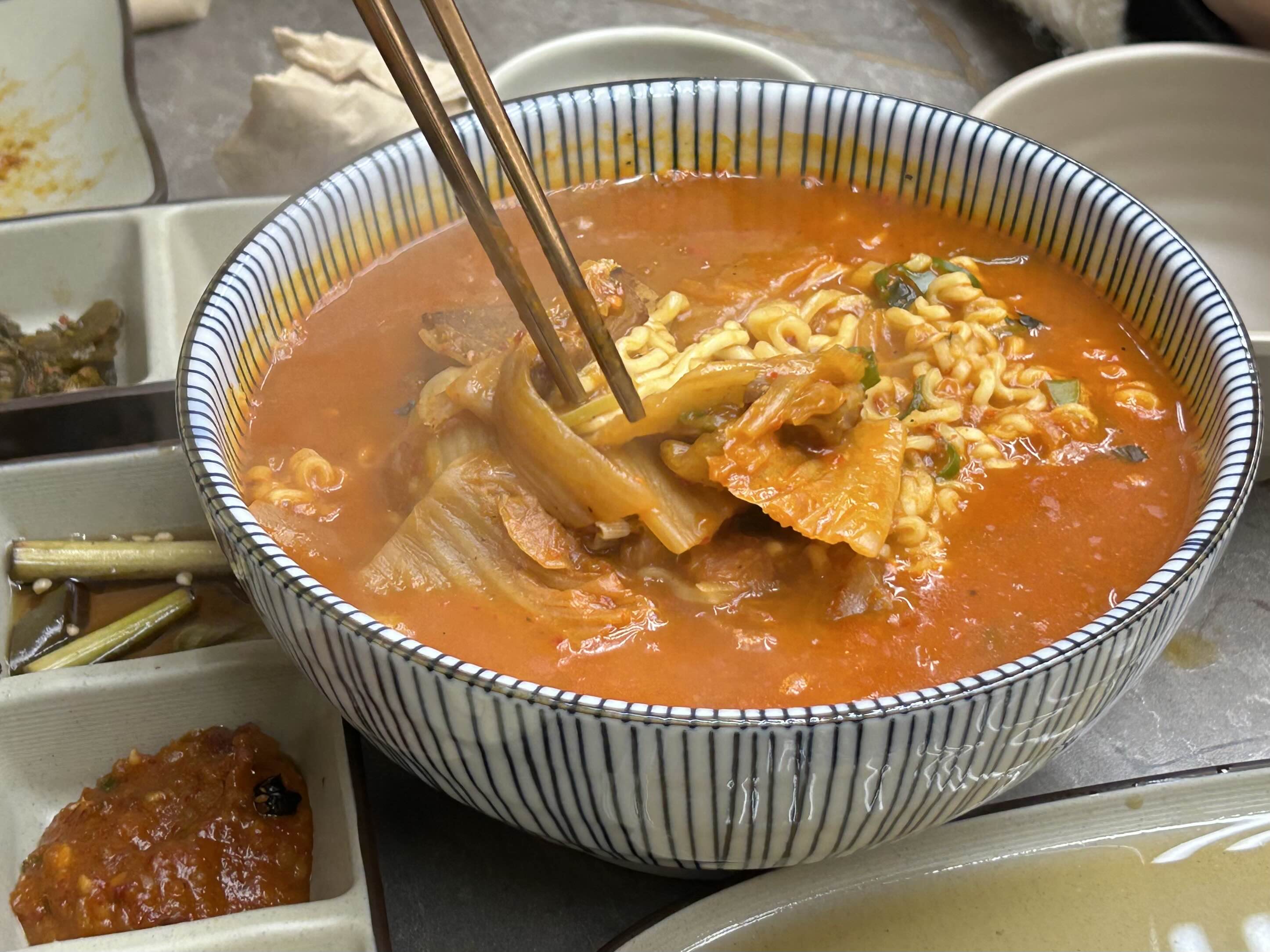 김치라면도 시켰는데 배가 터질 것 같았어요.