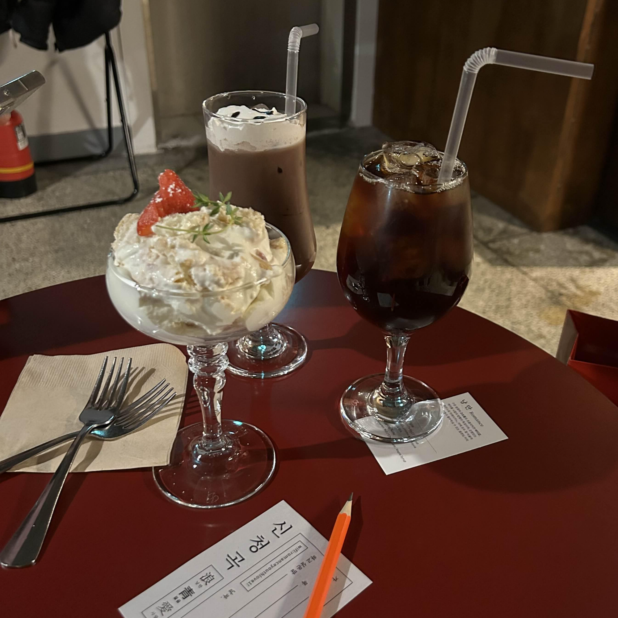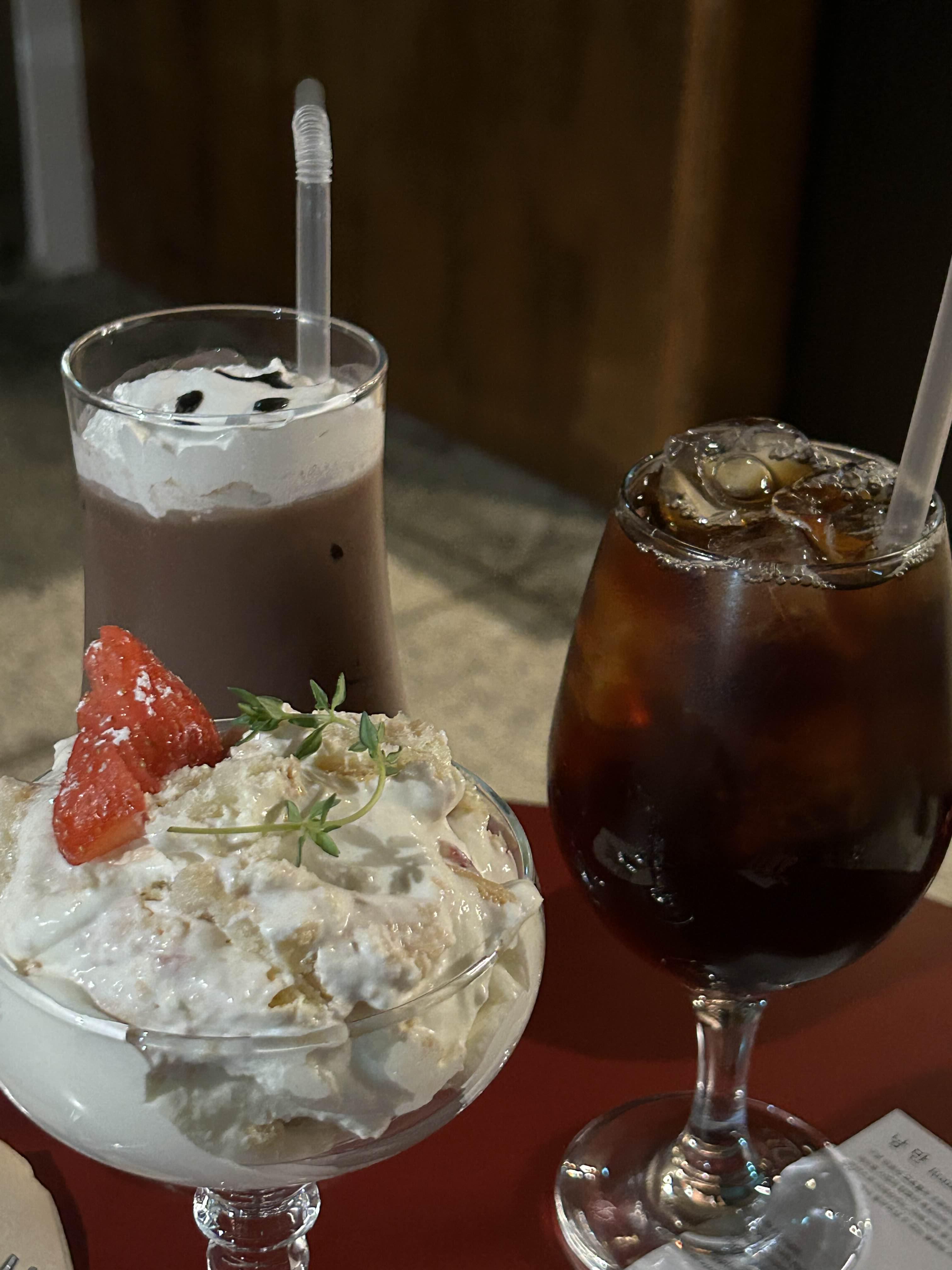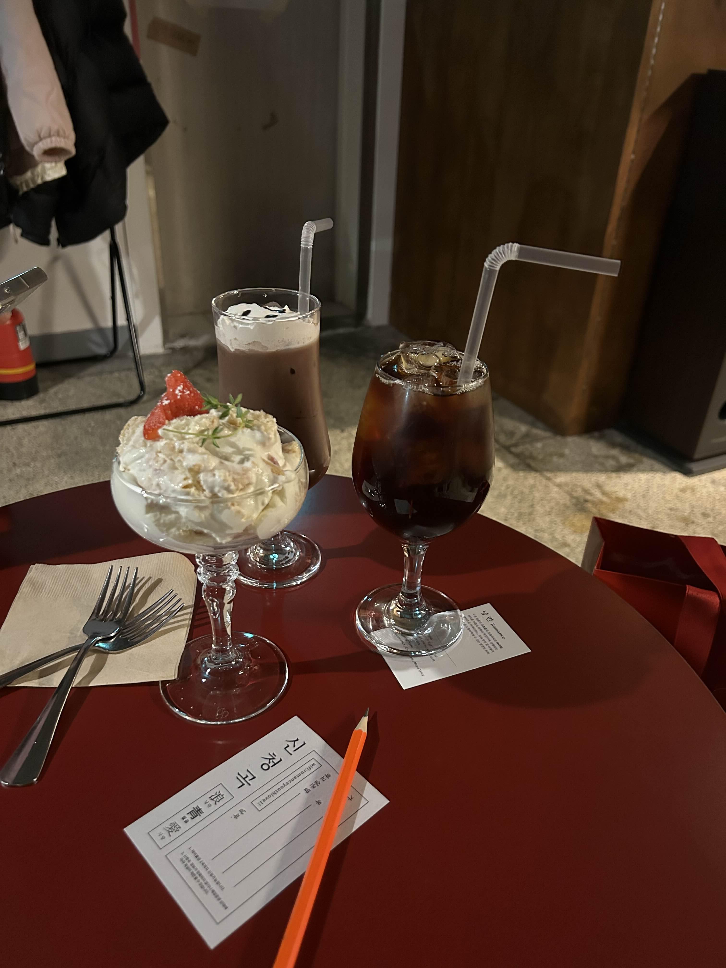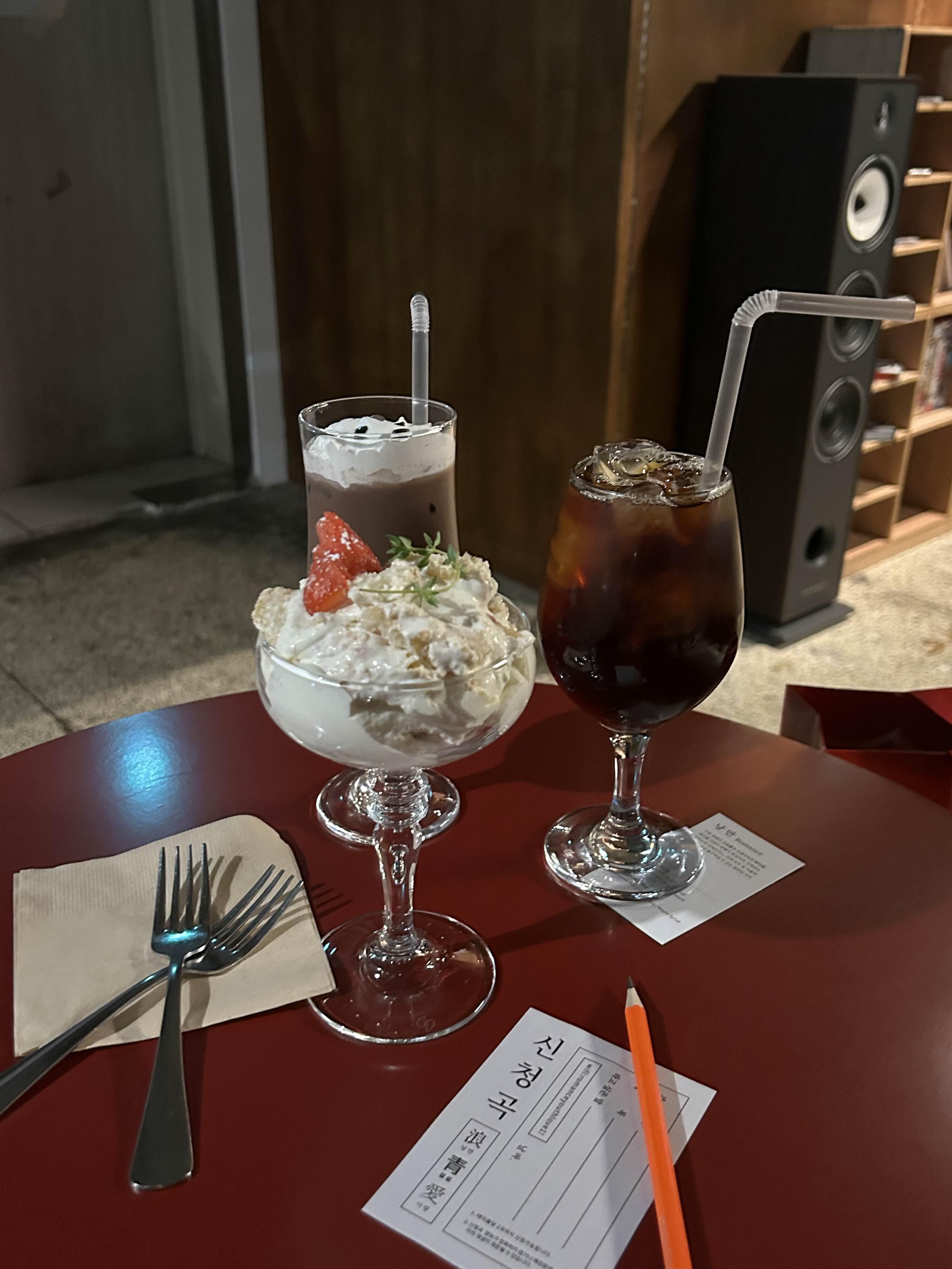 주문한 음료랑 딸케 나왔쥬