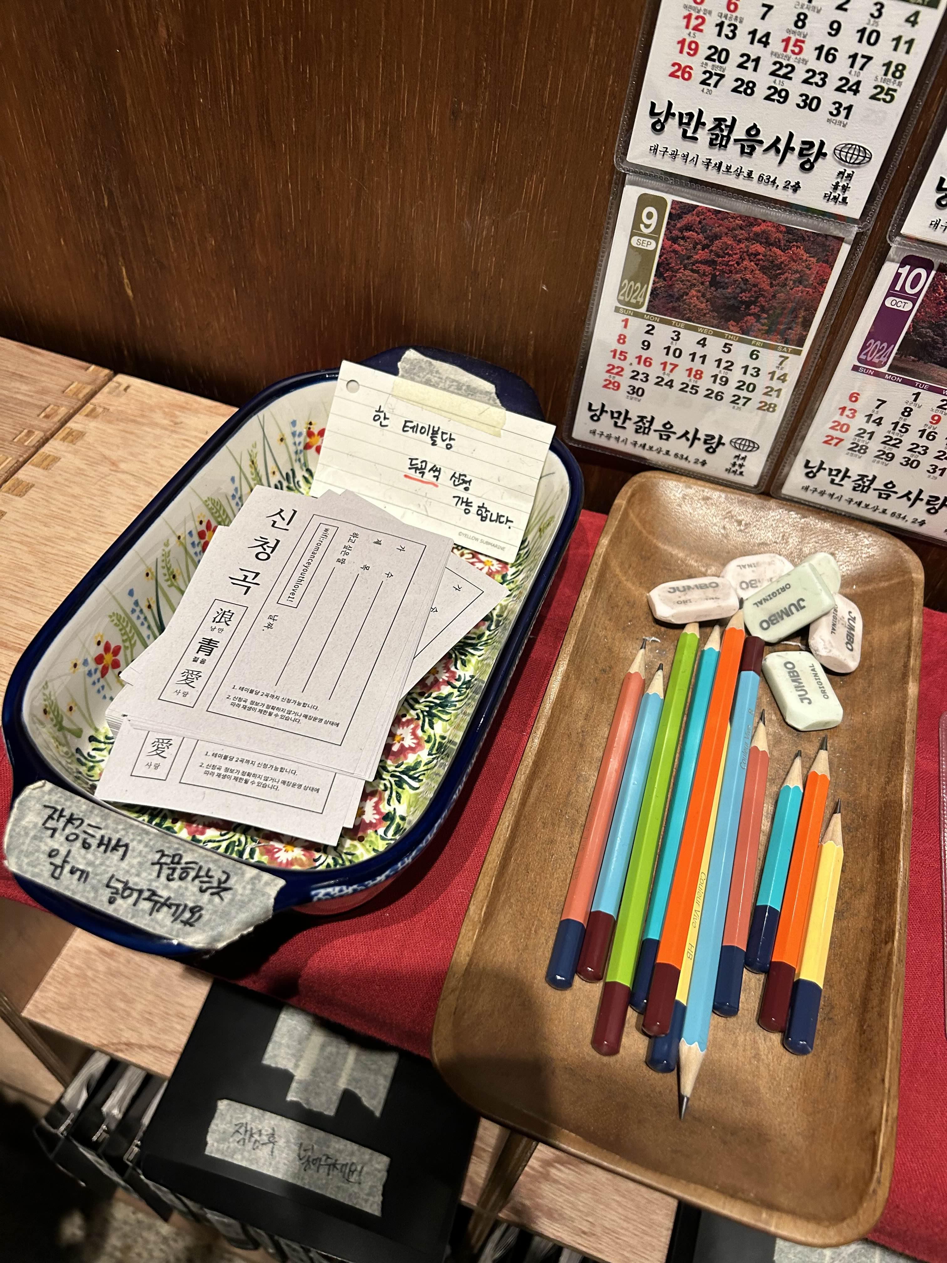 요기 신청곡 종이가 있었어요.