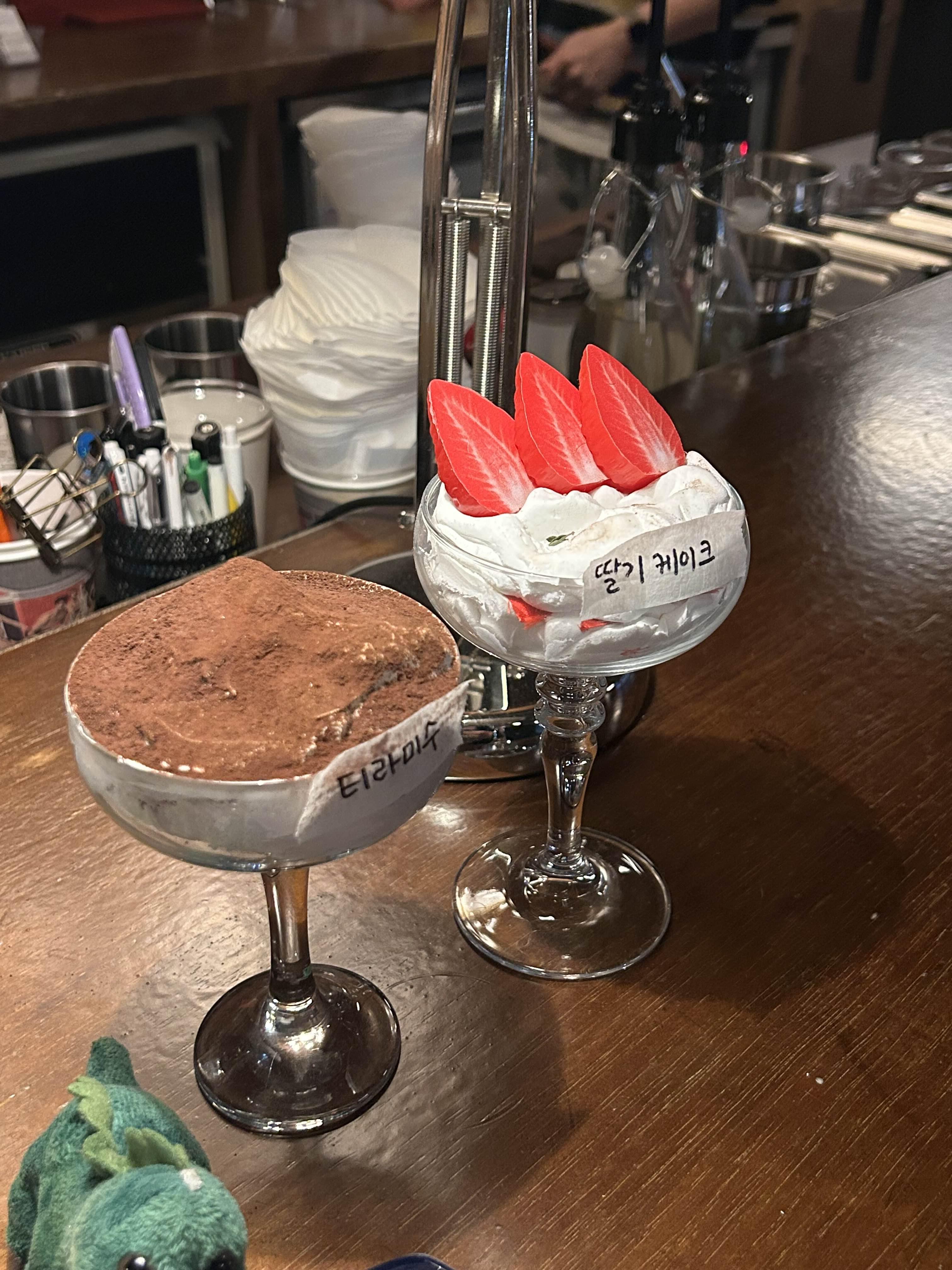 티라미수랑 딸기케이크 모형도 있었어요.
