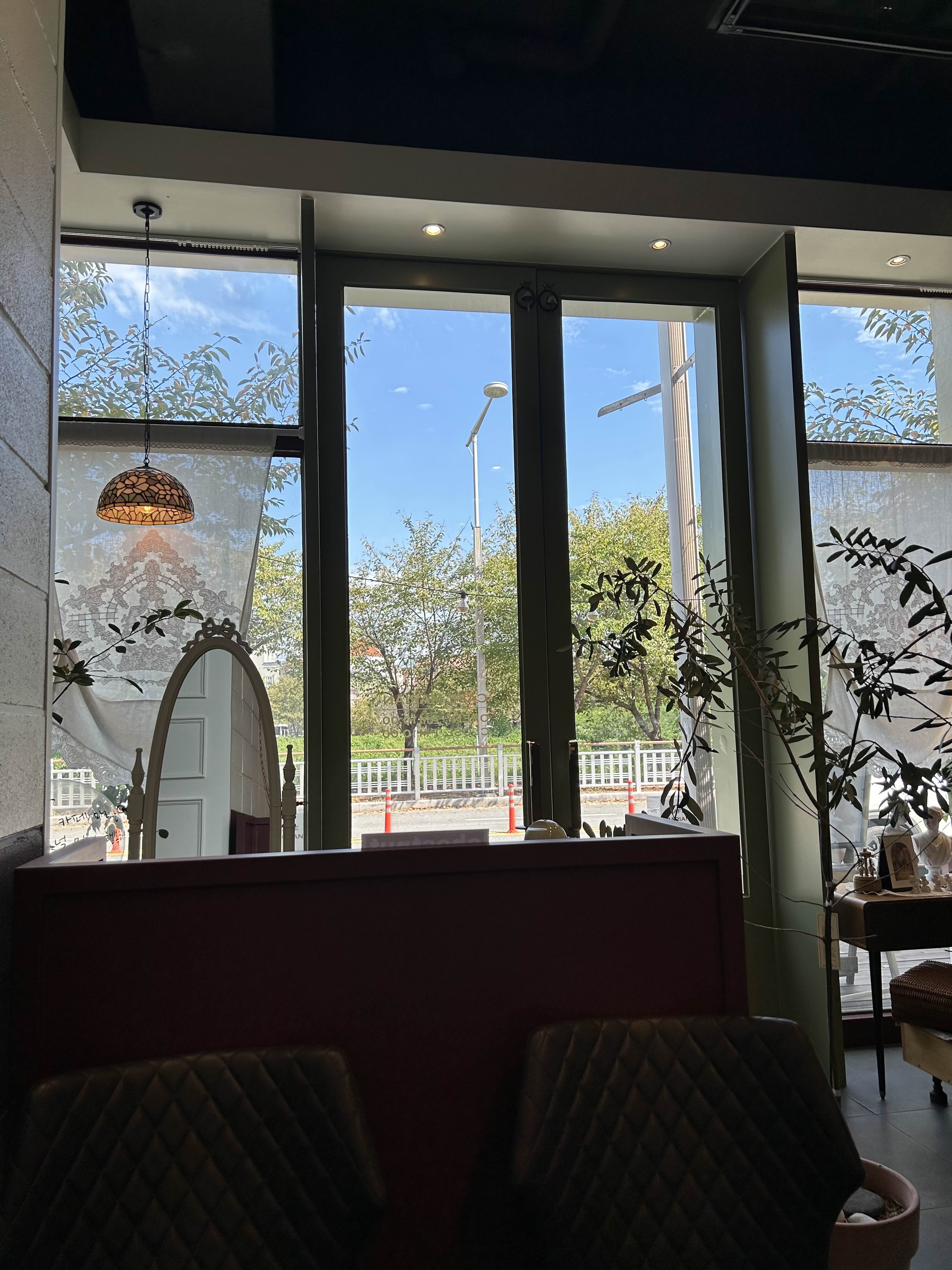 카페 안에서 바깥을 봤을때
