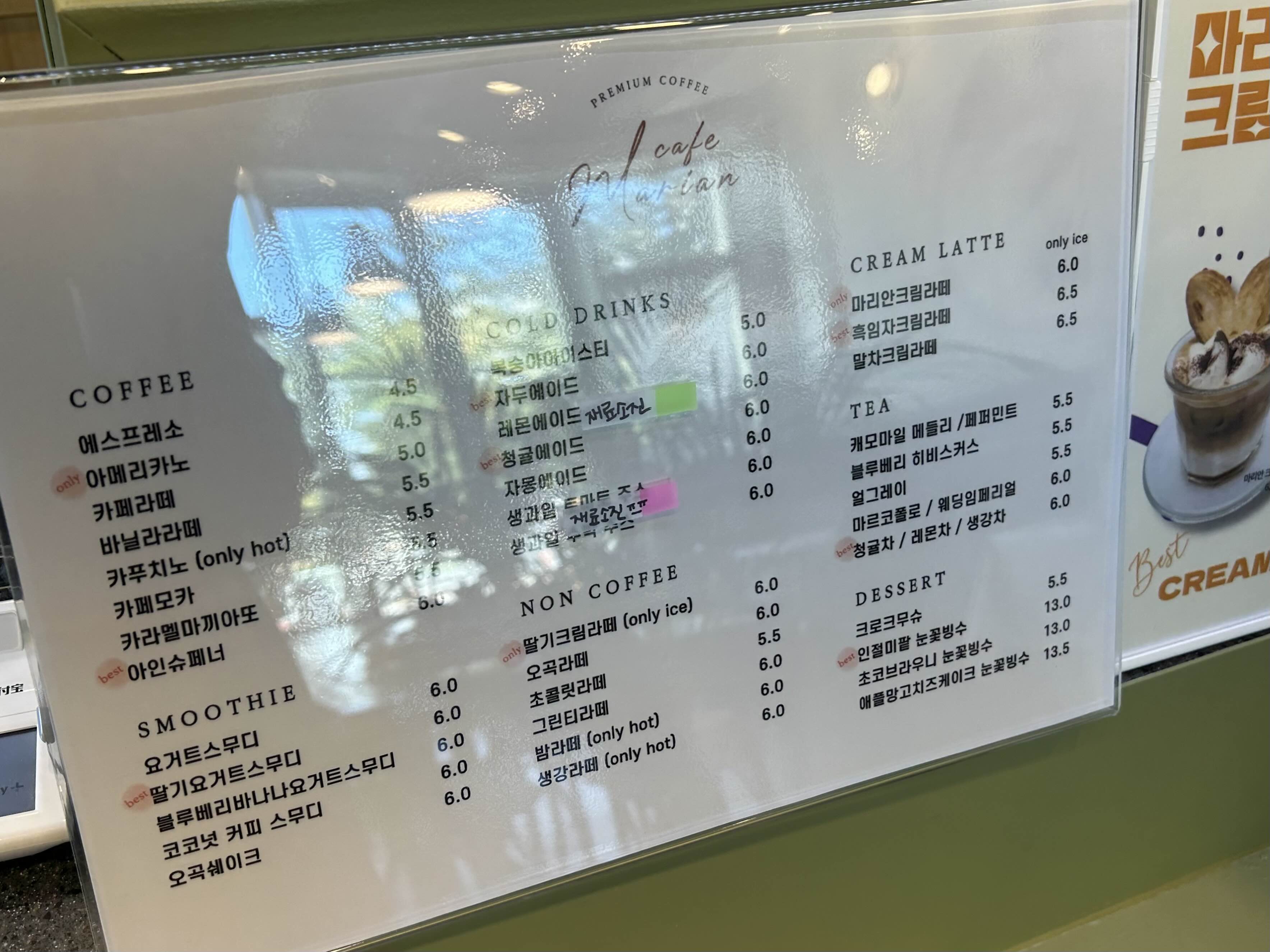 마리안 메뉴판이에요.