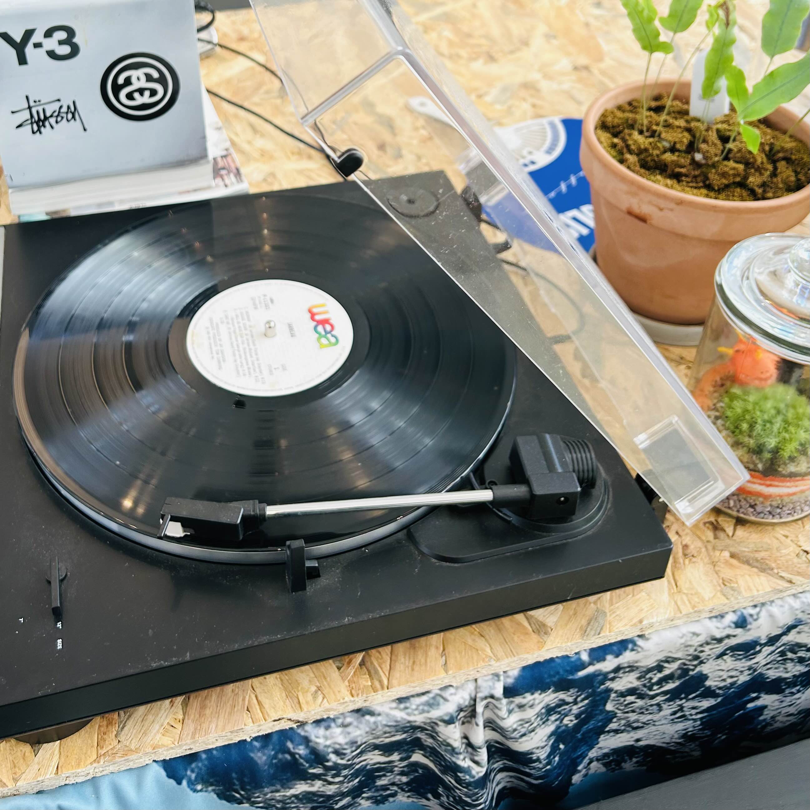 옆으론 턴테이블도 있었어요.