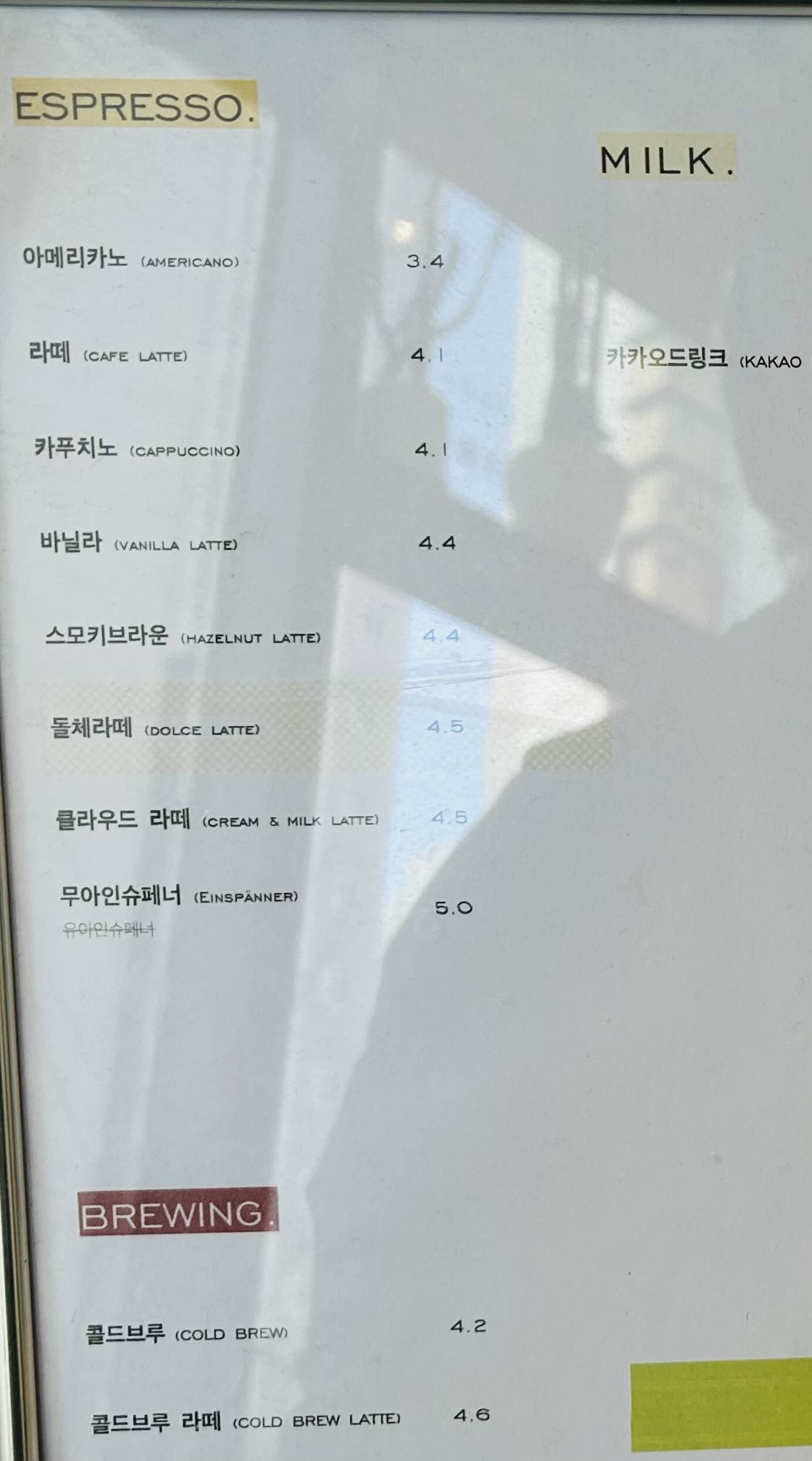 커피는 다른 메뉴와 차별되게 색감 표시를 넣어두신 돌체라떼로 초이스!