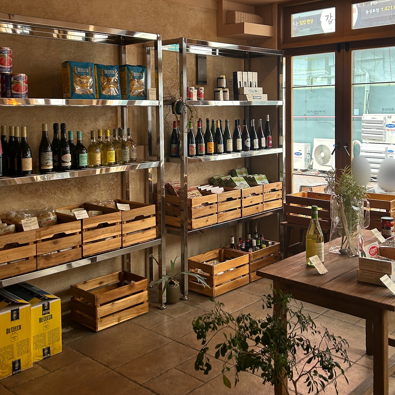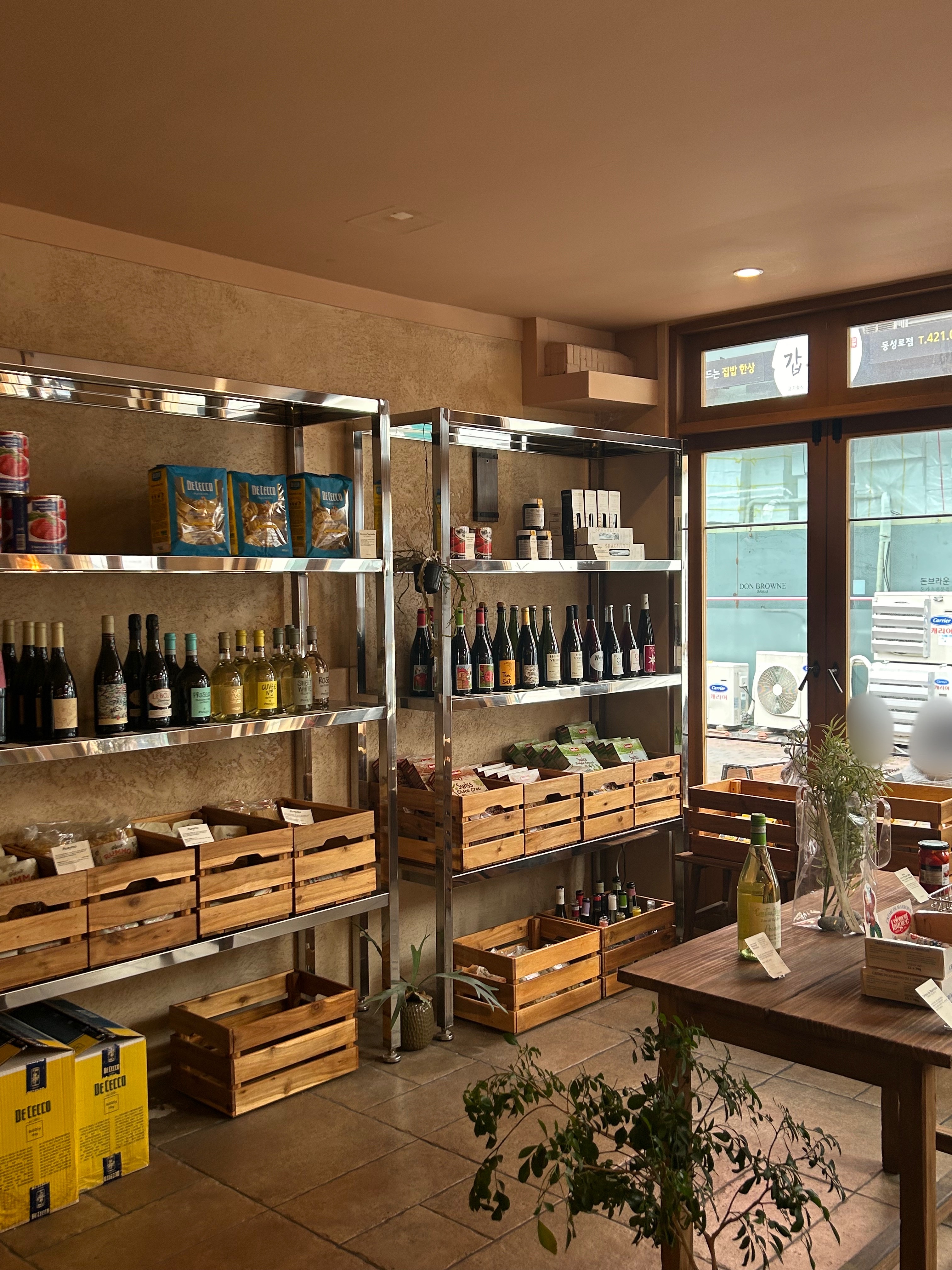 들어가자마자 그로서리 느낌이 나게 꾸며진 공간이 눈에 띄었어요.