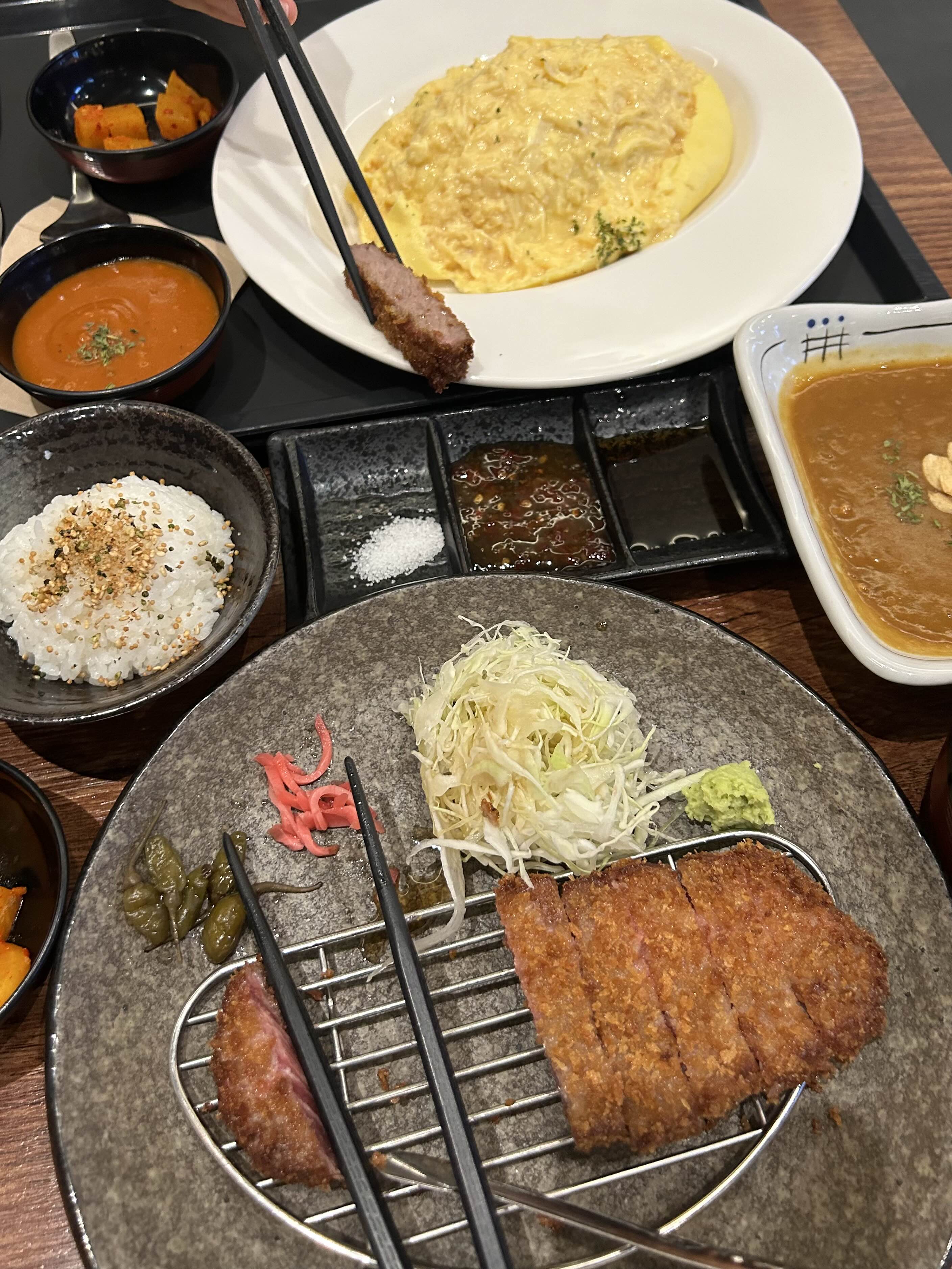 둘이 오므라이스랑 규카츠 나눠 먹으니 딱 배부르더라구요.