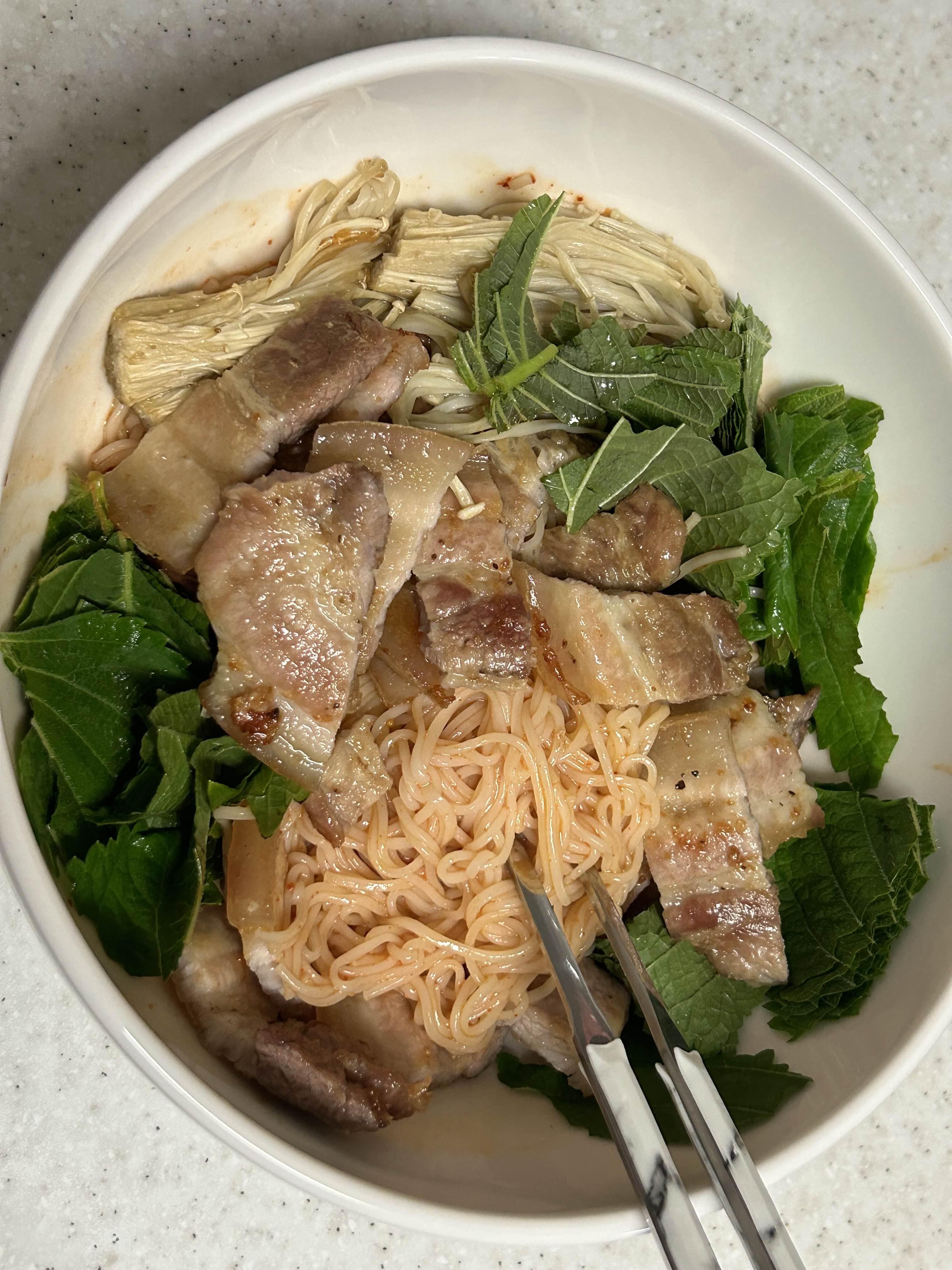 삼겹살 투하해서 냠냠냠