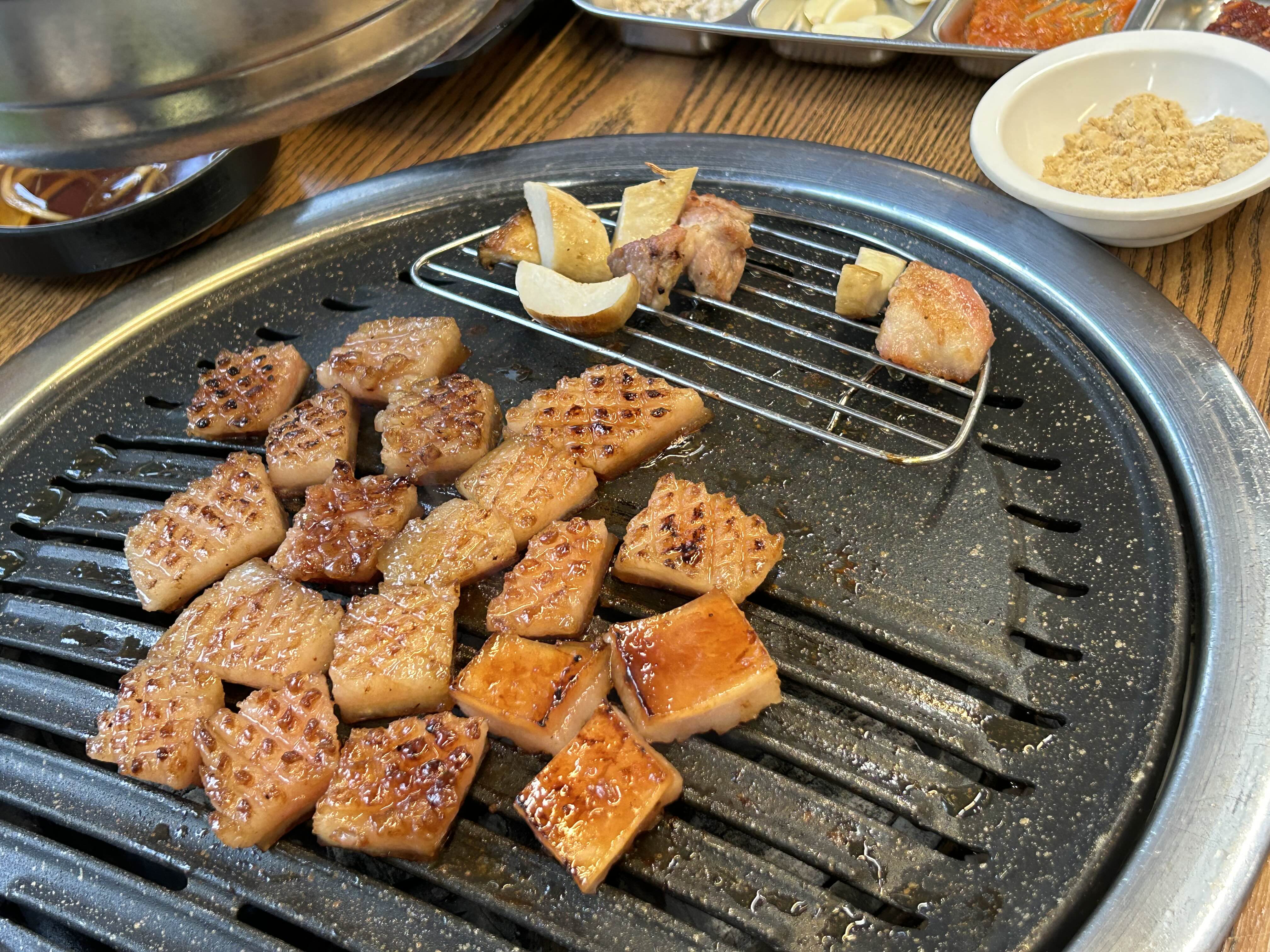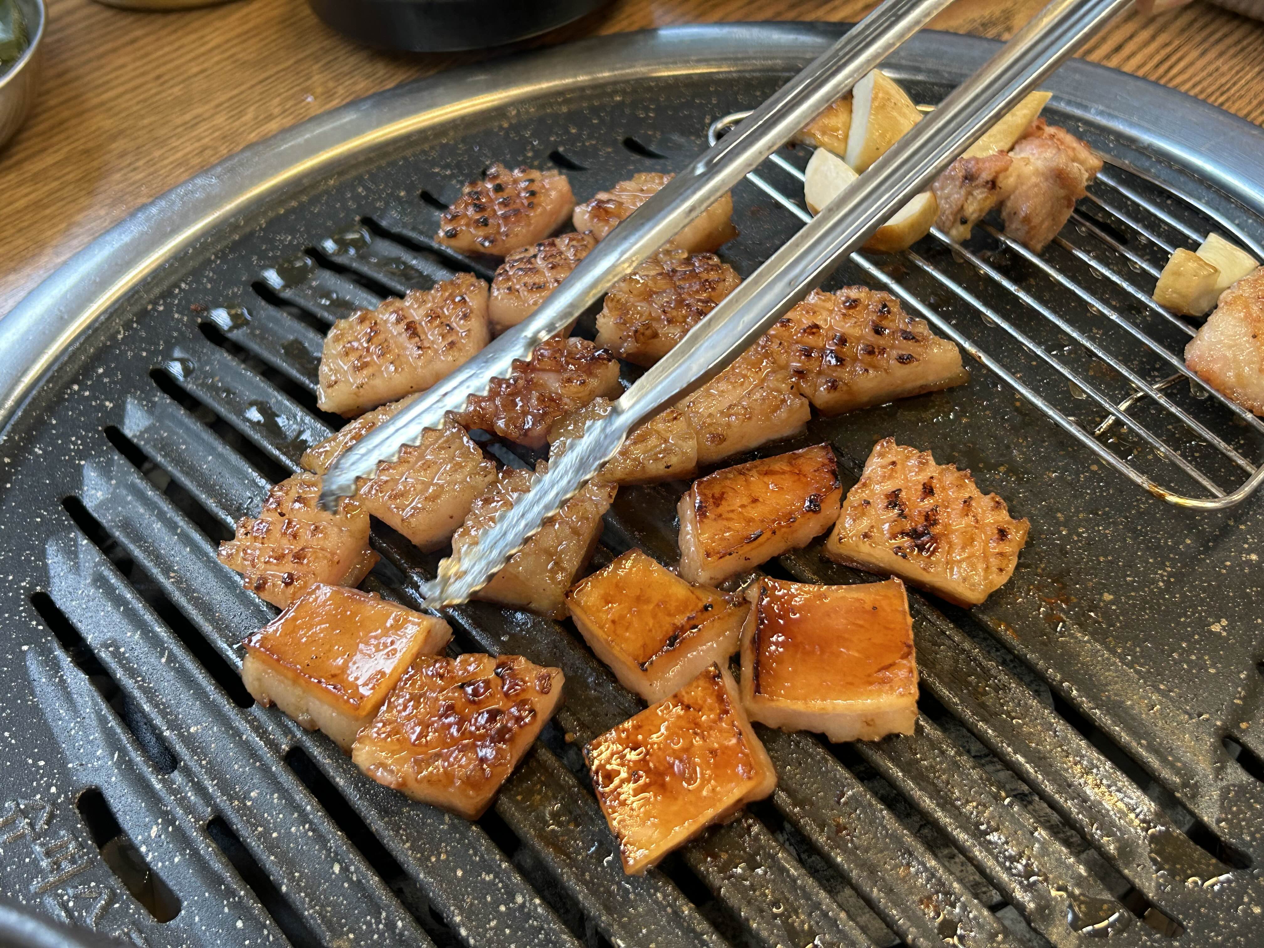 불판에 올리고 조금 후에 바로 먹을 수 있었어요.