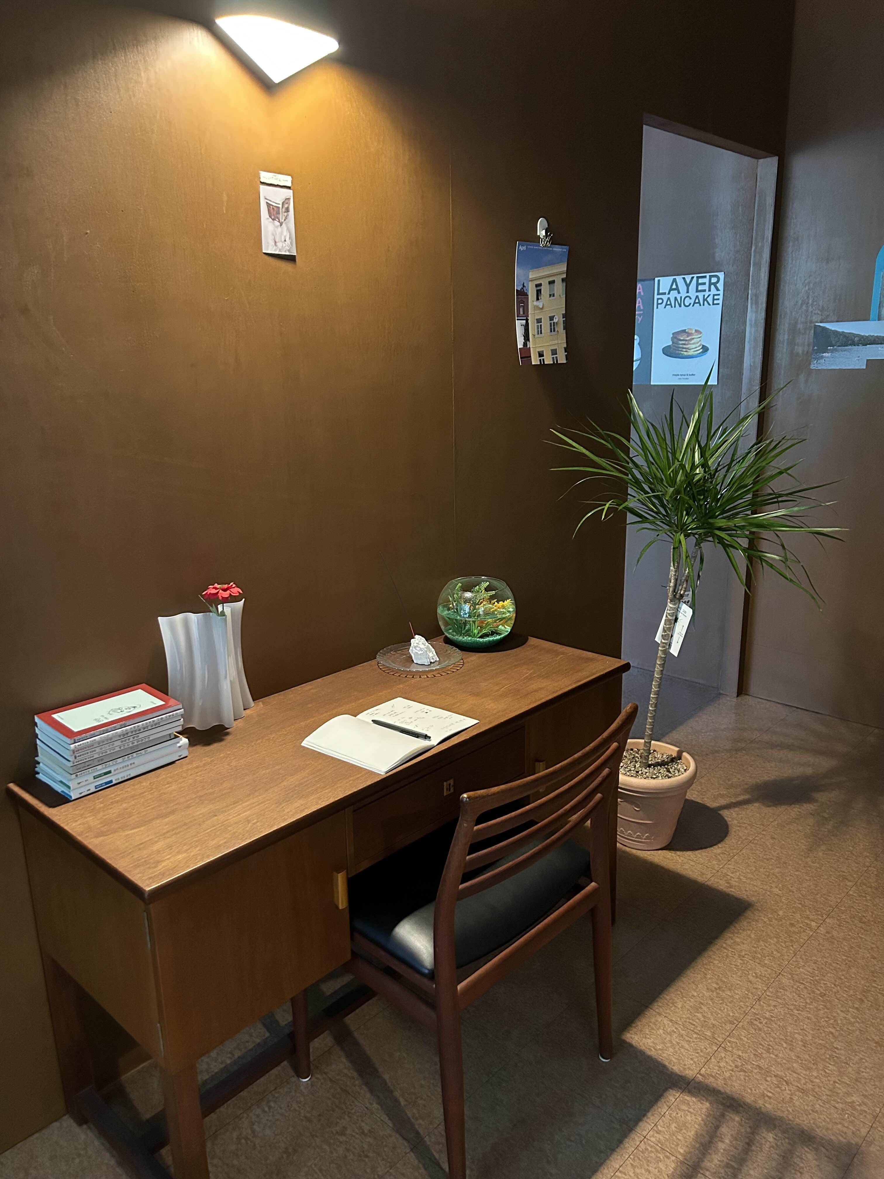 책상이 하나 있는데 방명록 쓰는 곳인가 싶네용.