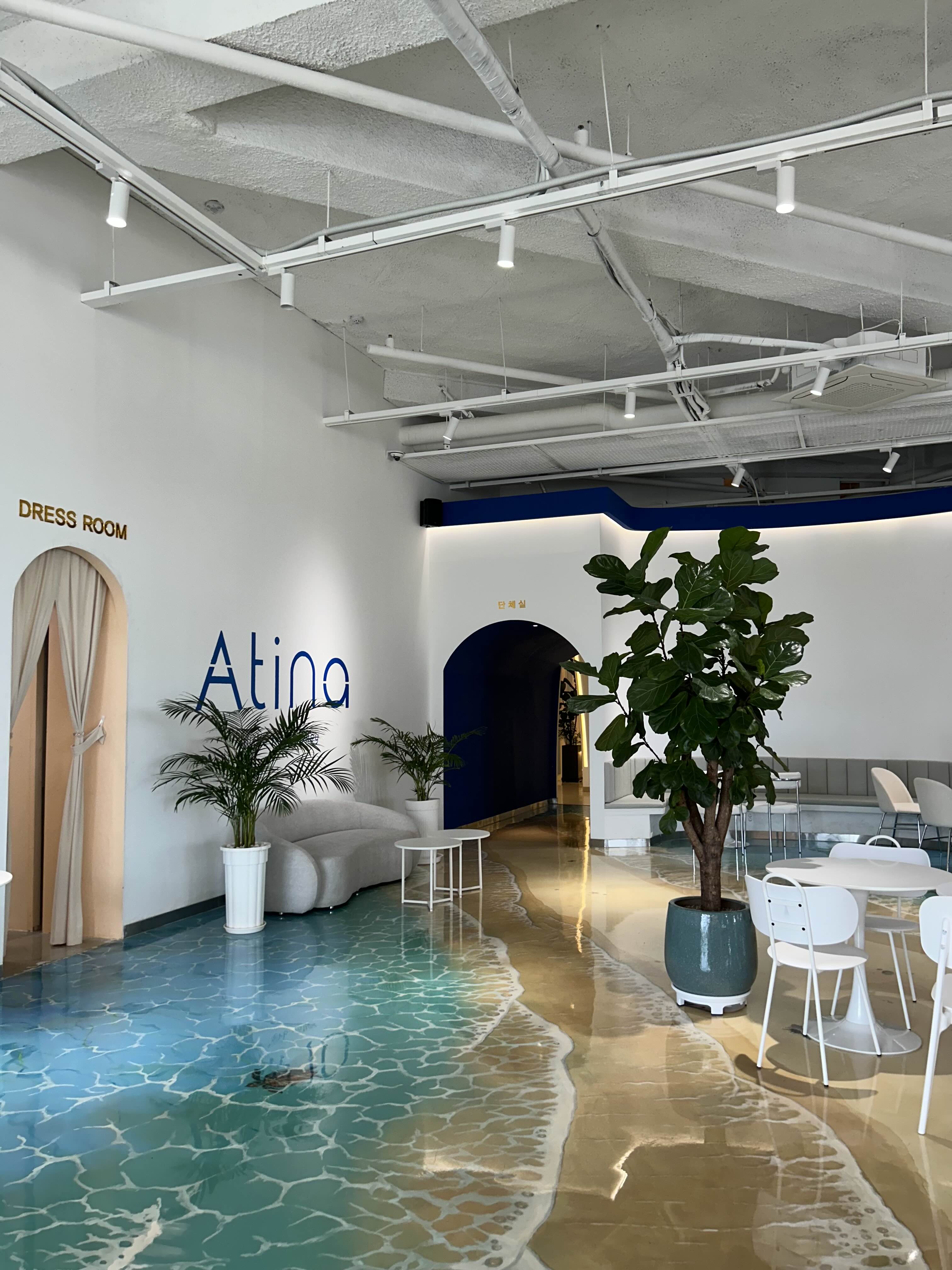바닥을 파도 무늬로 꾸며두셔서 시원한 느낌도 들구 그랬어요.
