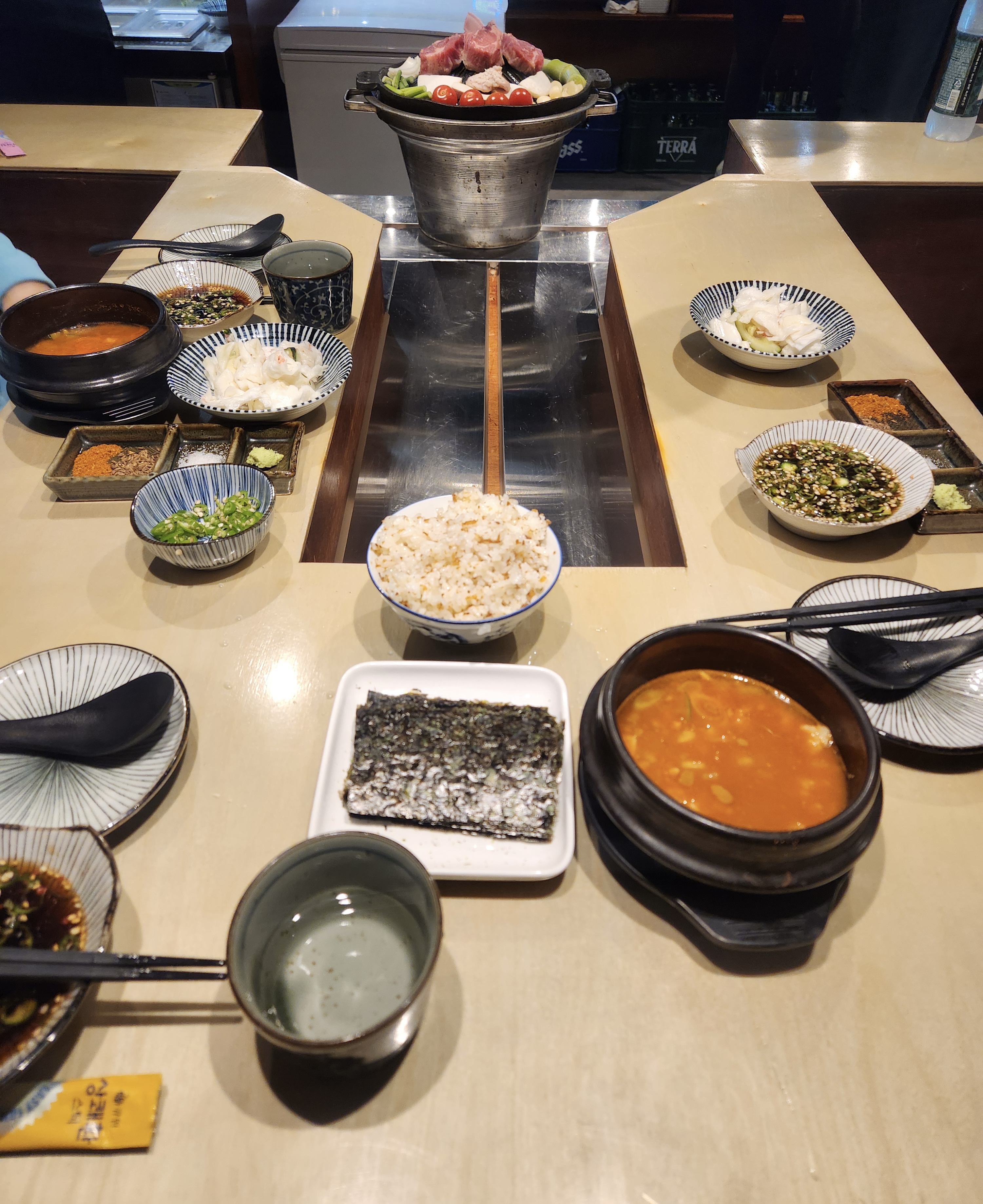 거의 다 바 테이블인데, 3인이 앉기 좋을 디귿자 형태로 움푹 파인 자리도 있더라구요.