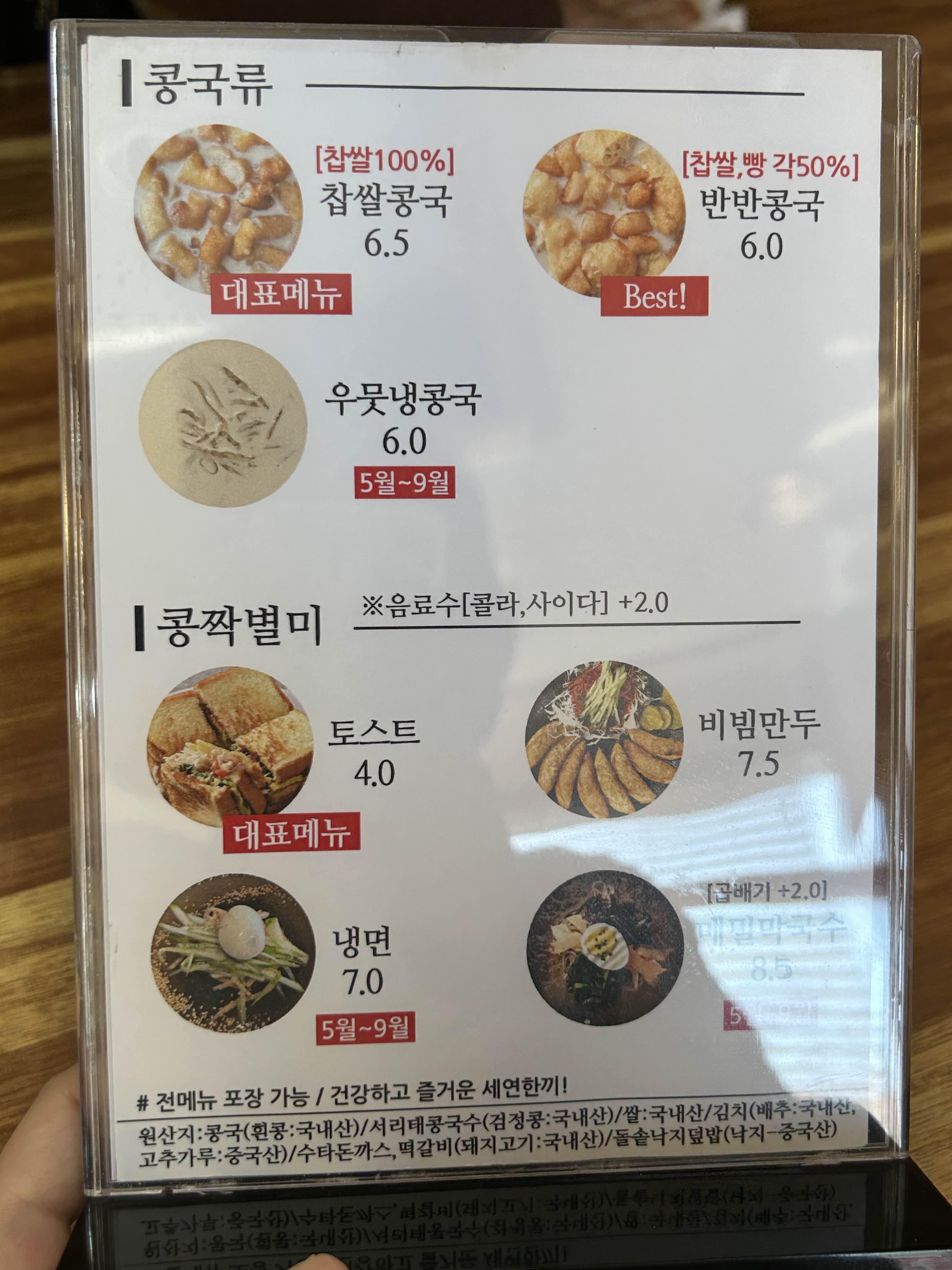 세연콩국 메뉴에요.