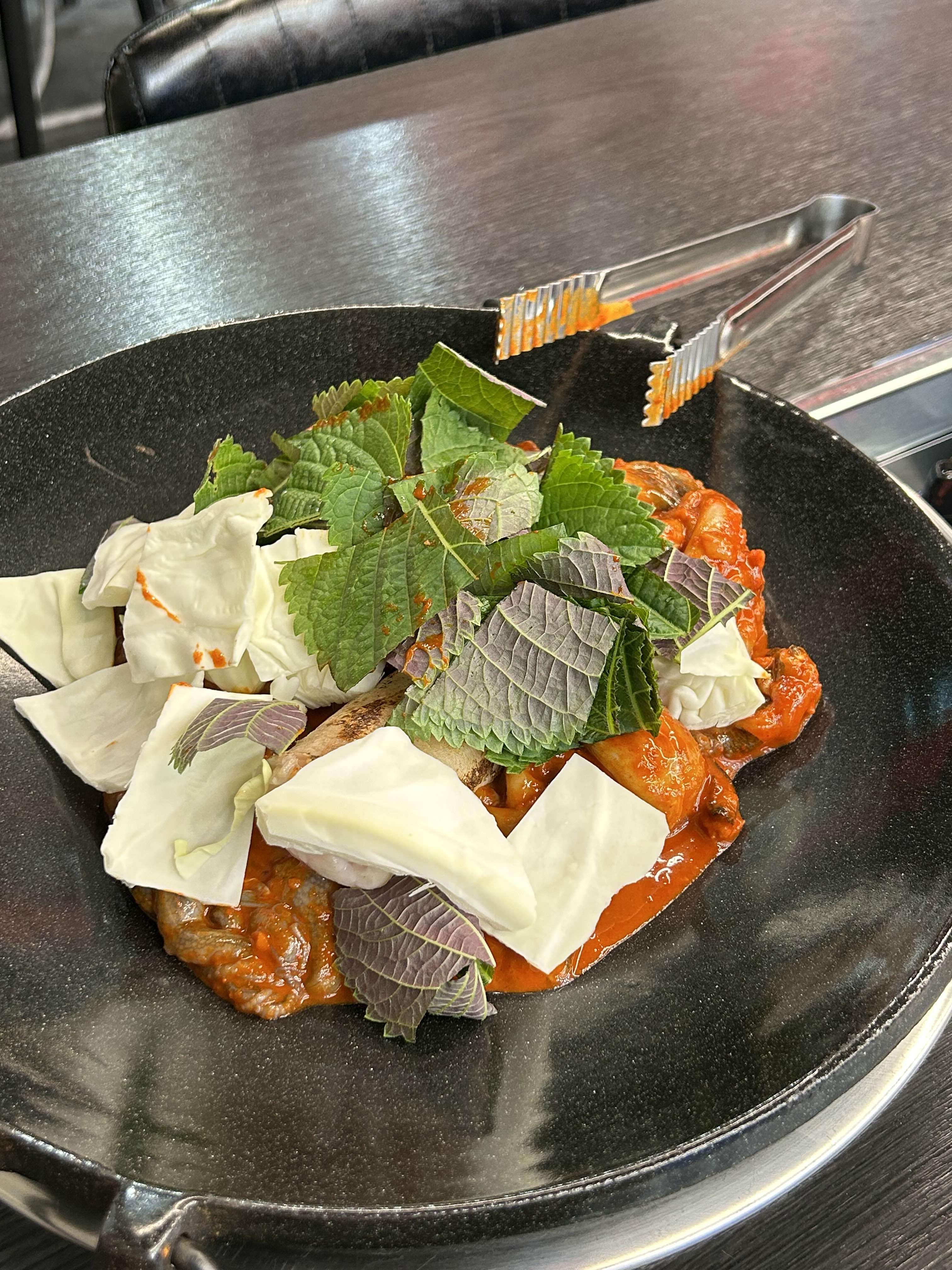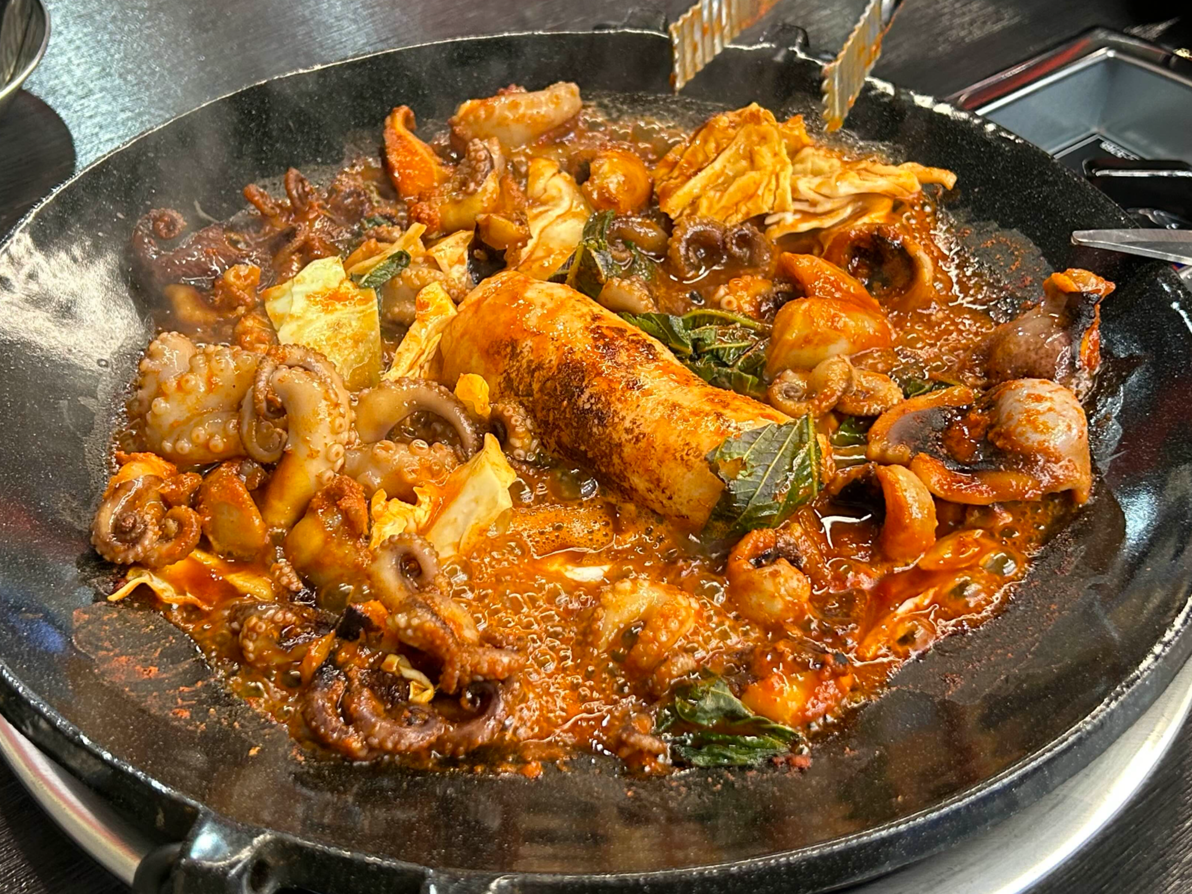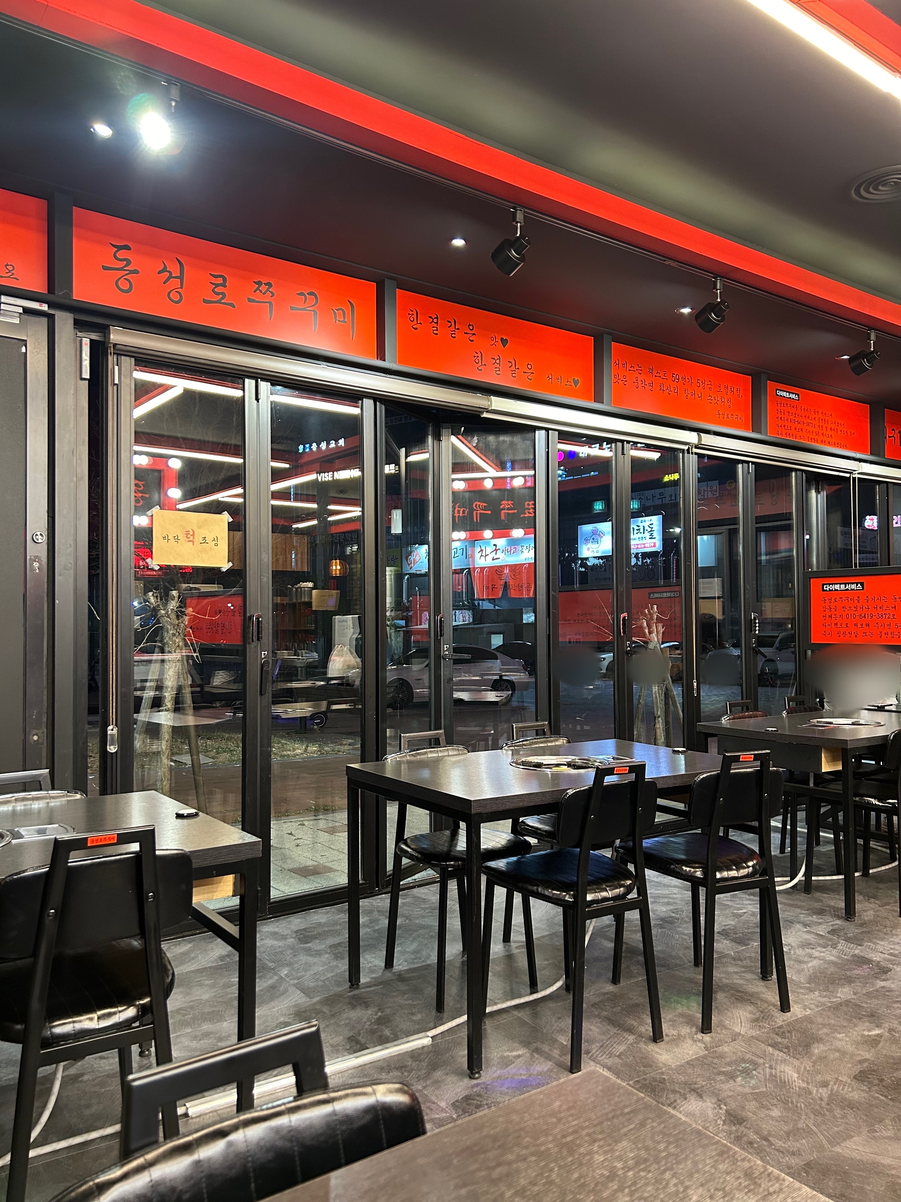 까만 배경에 빨간 인테리어가 그리들에 올라간 쭈꾸미 색이랑 비슷하네요.