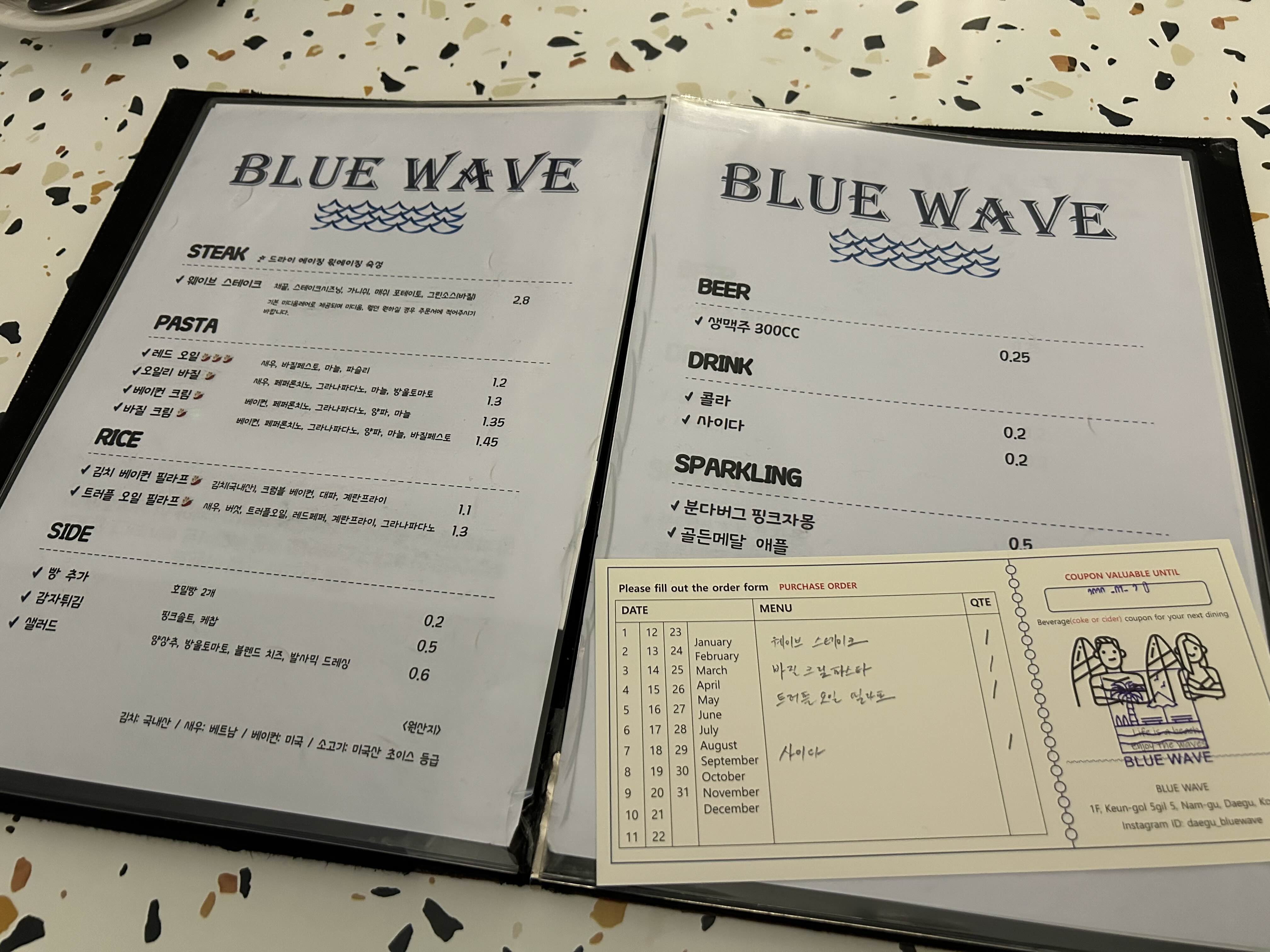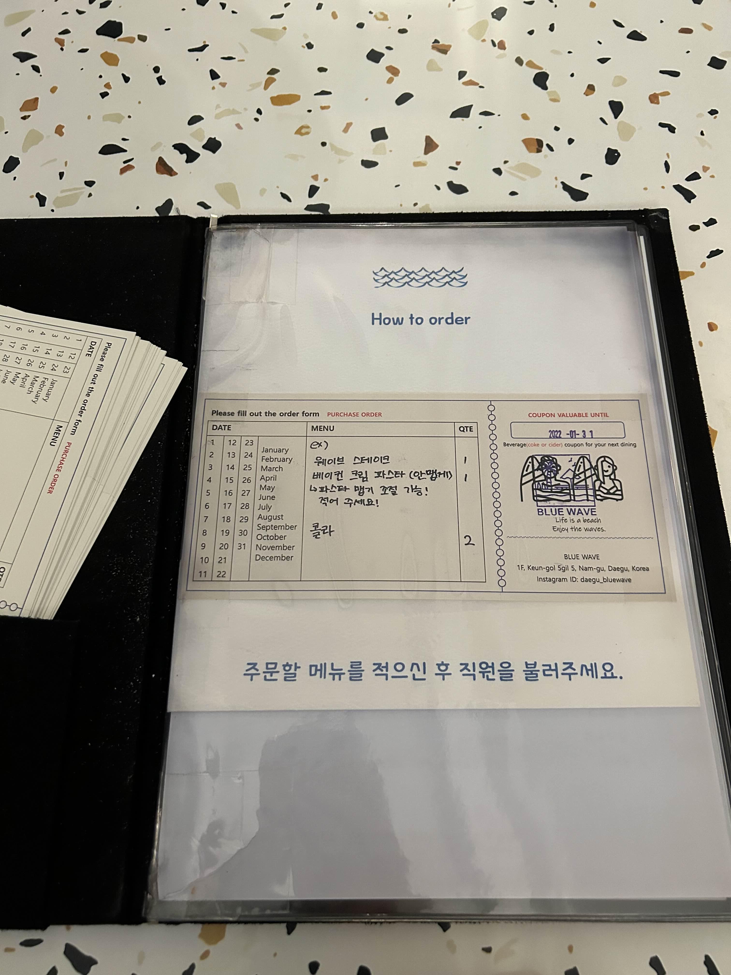 메뉴는 직접 골라서 적어 드리는 시스템이더라구요.