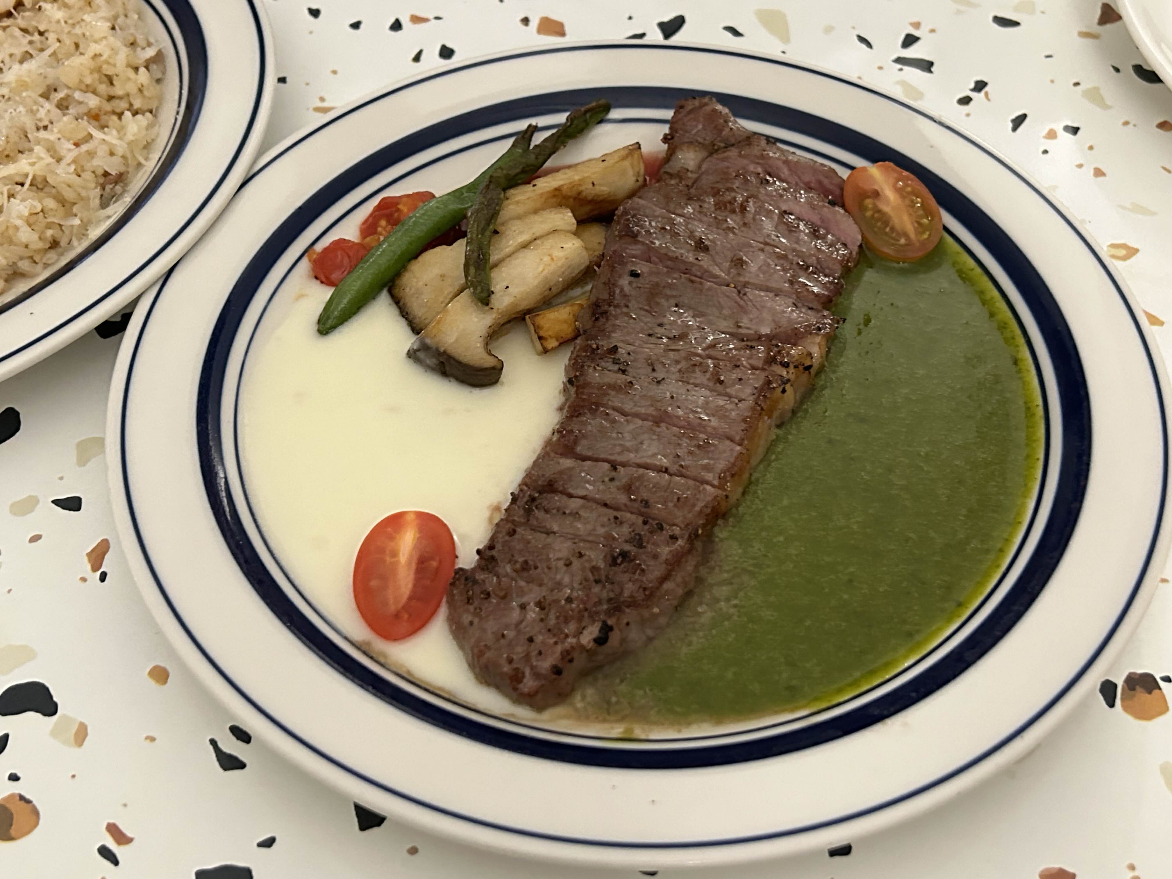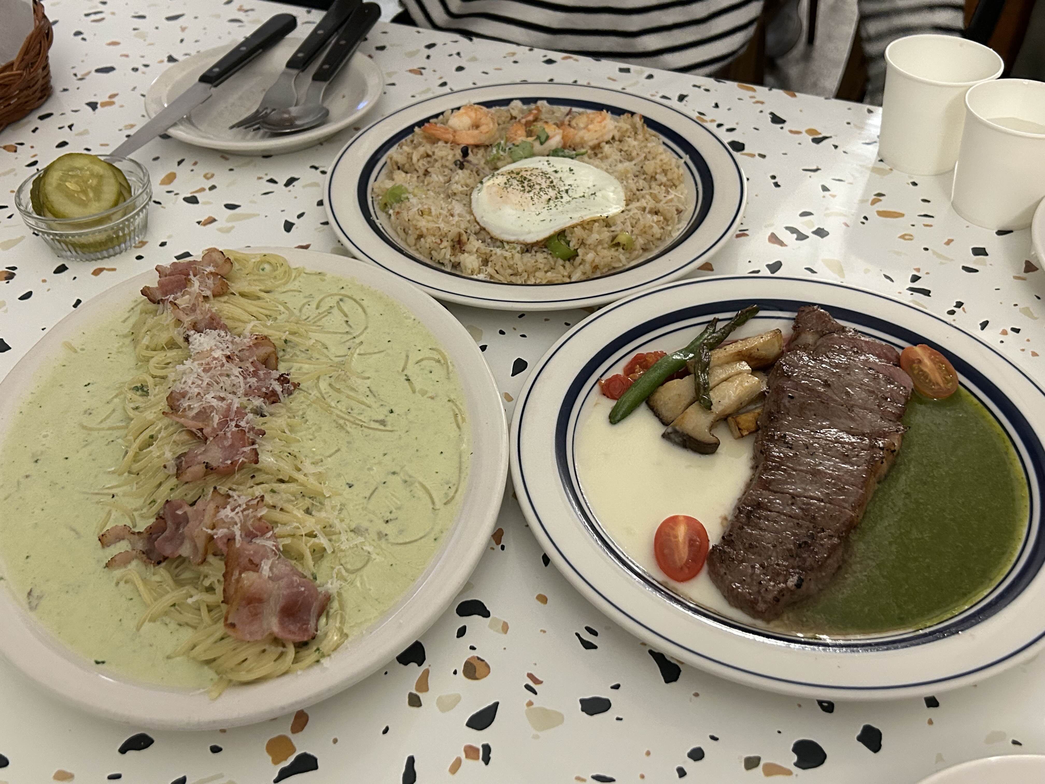 스테이크, 파스타, 필라프, 사이드 메뉴, 음료