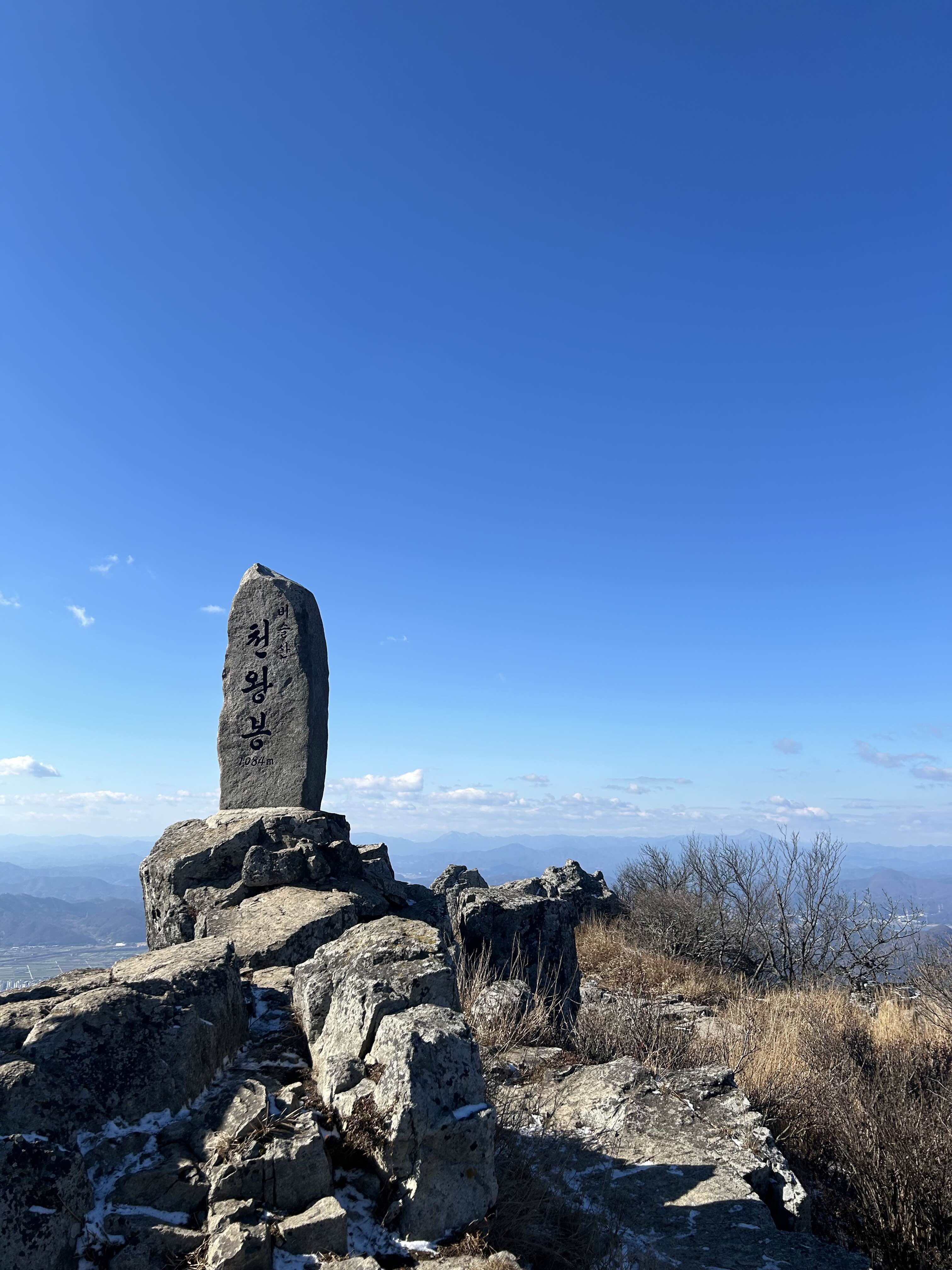 늠름하게 서있는 천왕봉 정상석이 보였어요.