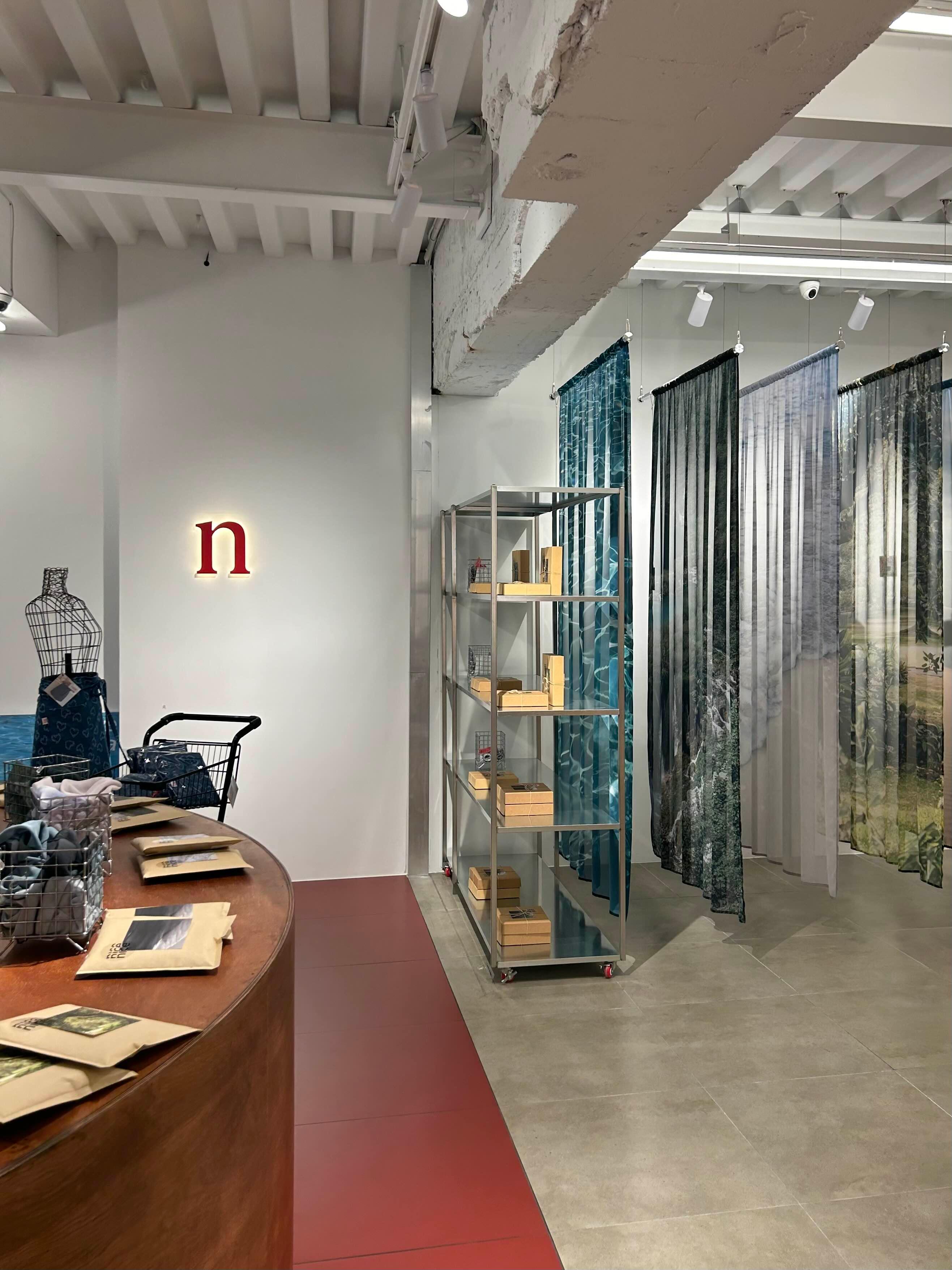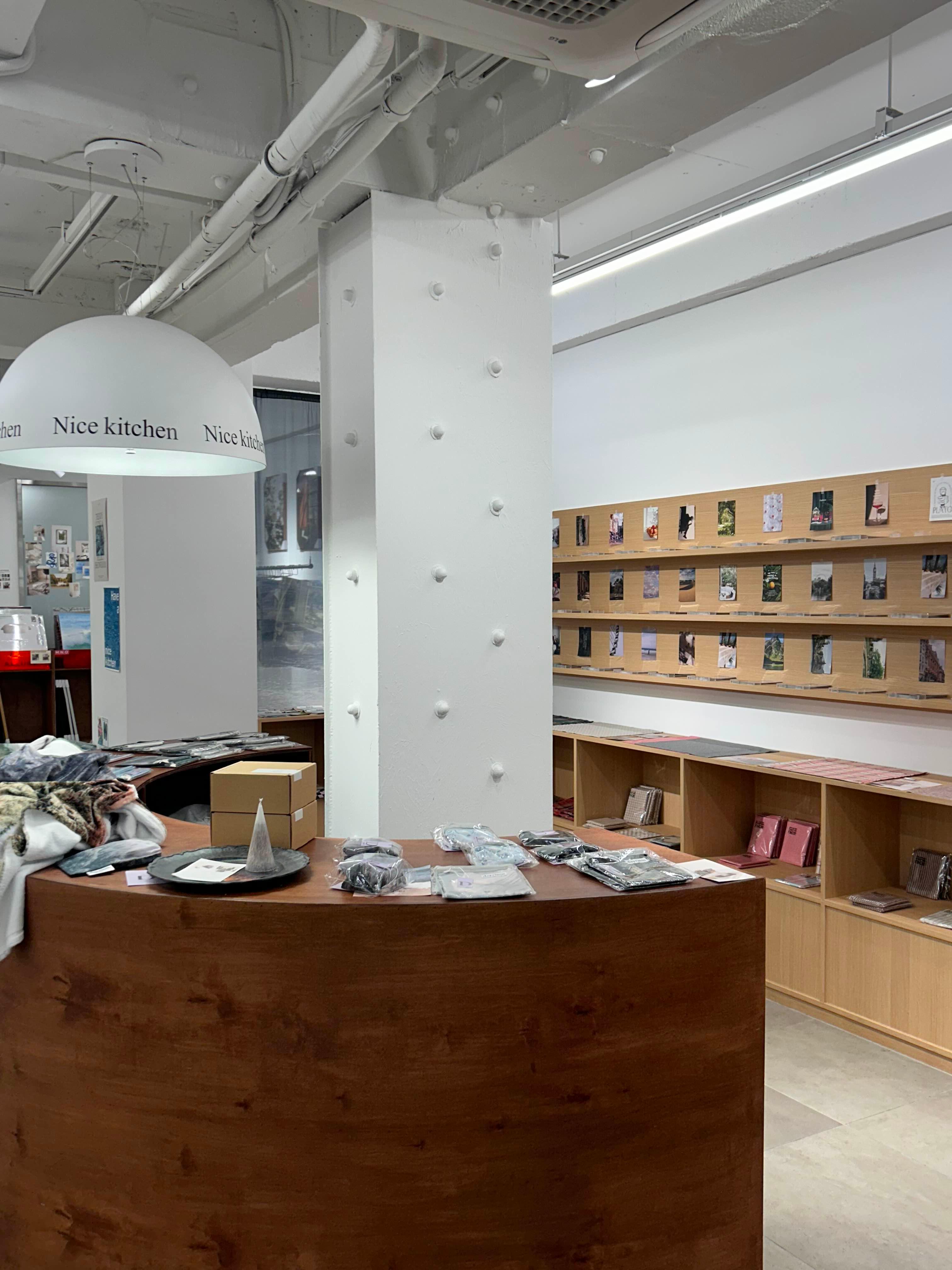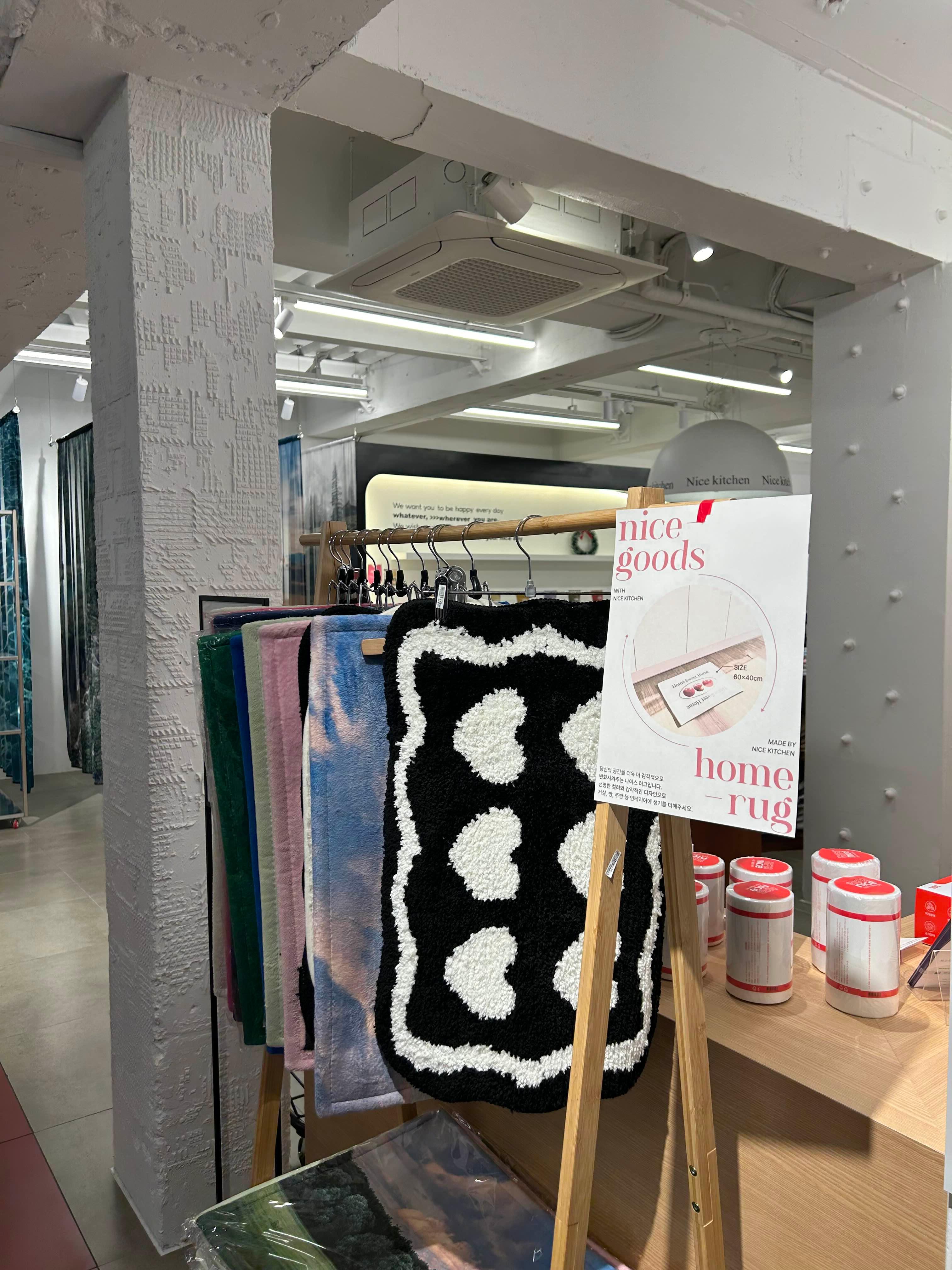 요기는 러그,엽서,파우치,장갑 등의 상품들이 진열되어 있었어요.