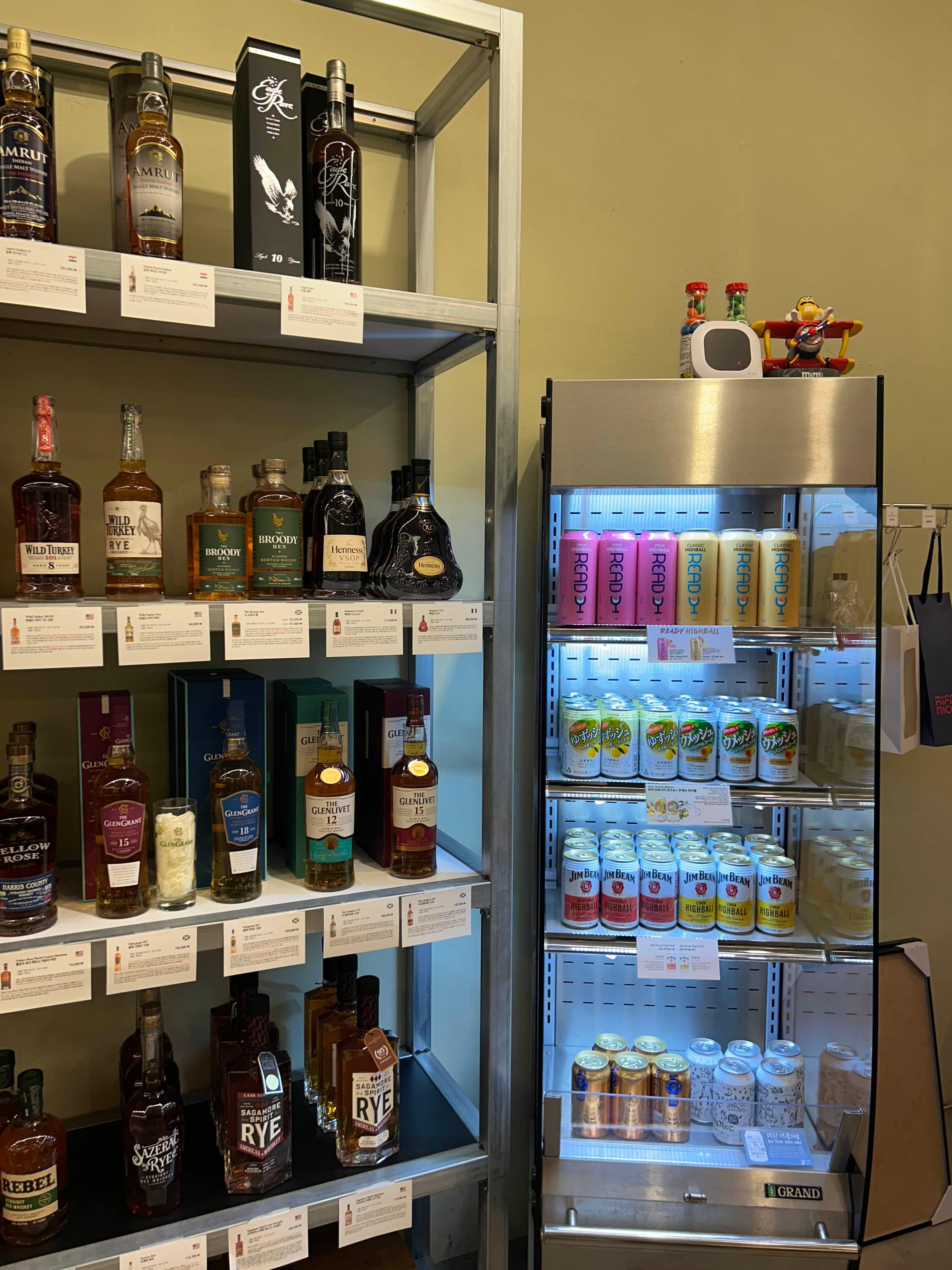 그리고 매장 안쪽에 이렇게 와인이랑 각종 주류, 스낵이 많았어요.