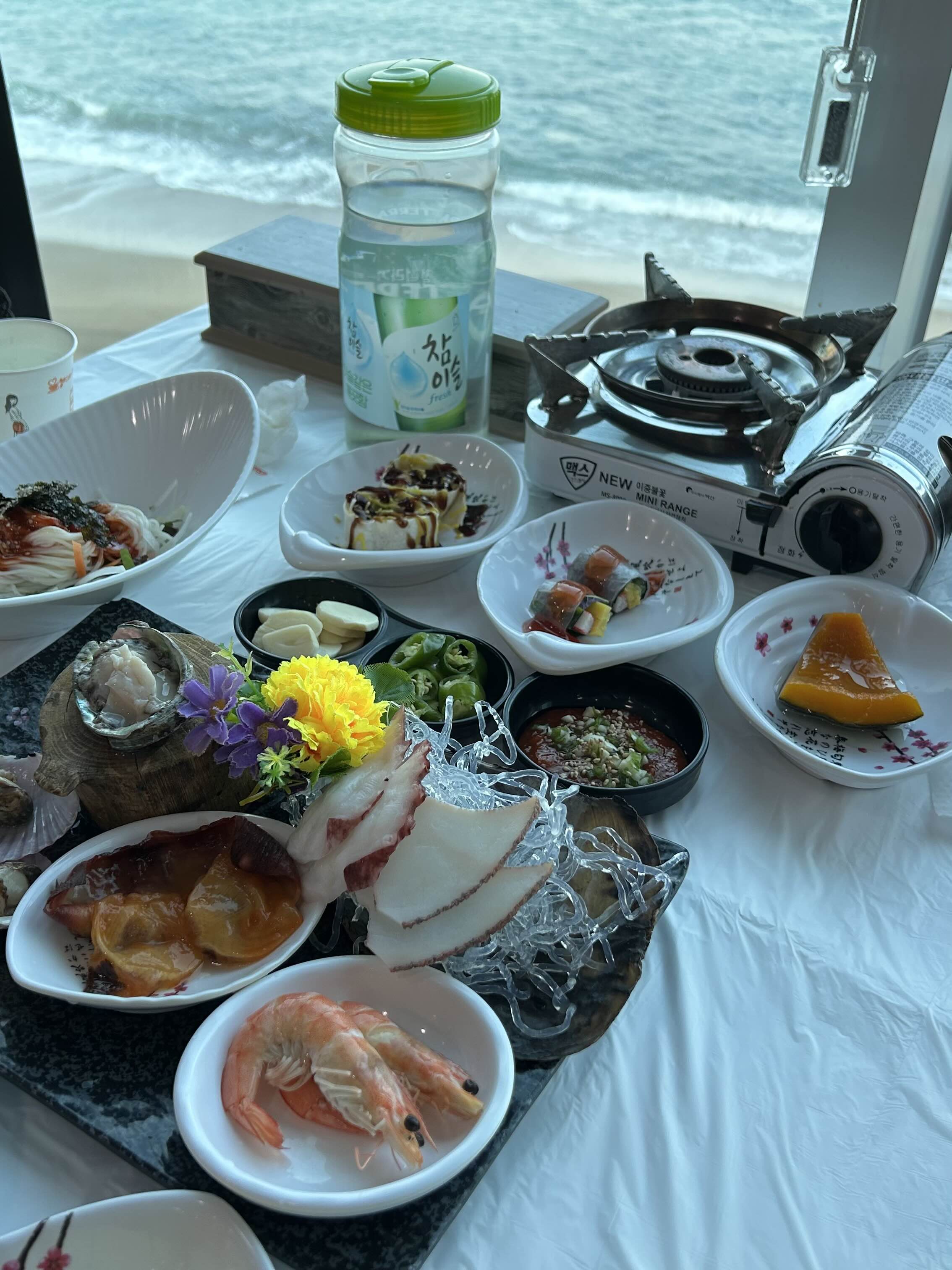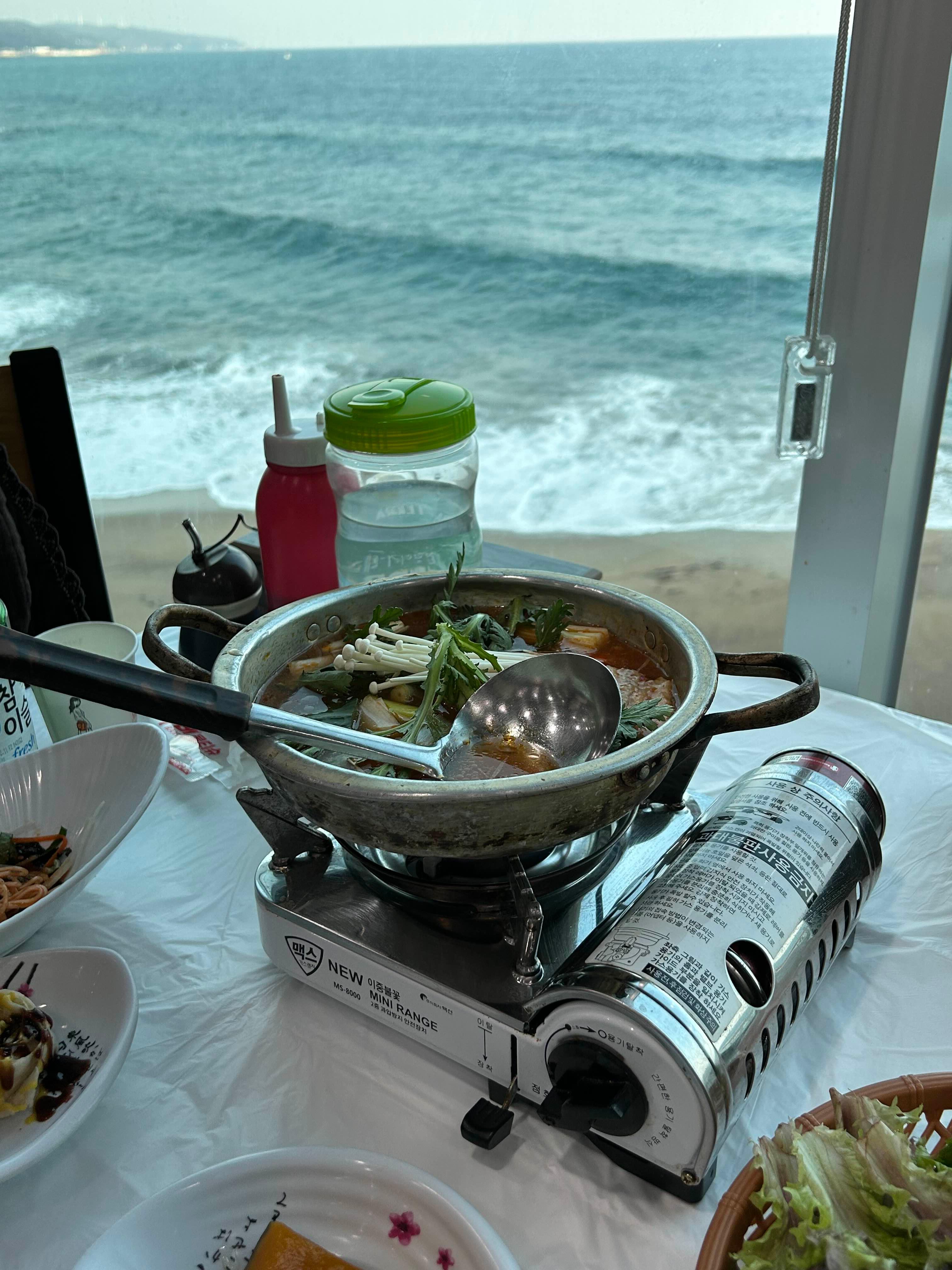 거의 바다를 품은듯한 뷰의 창가석에서 식사할 수 있었어요.