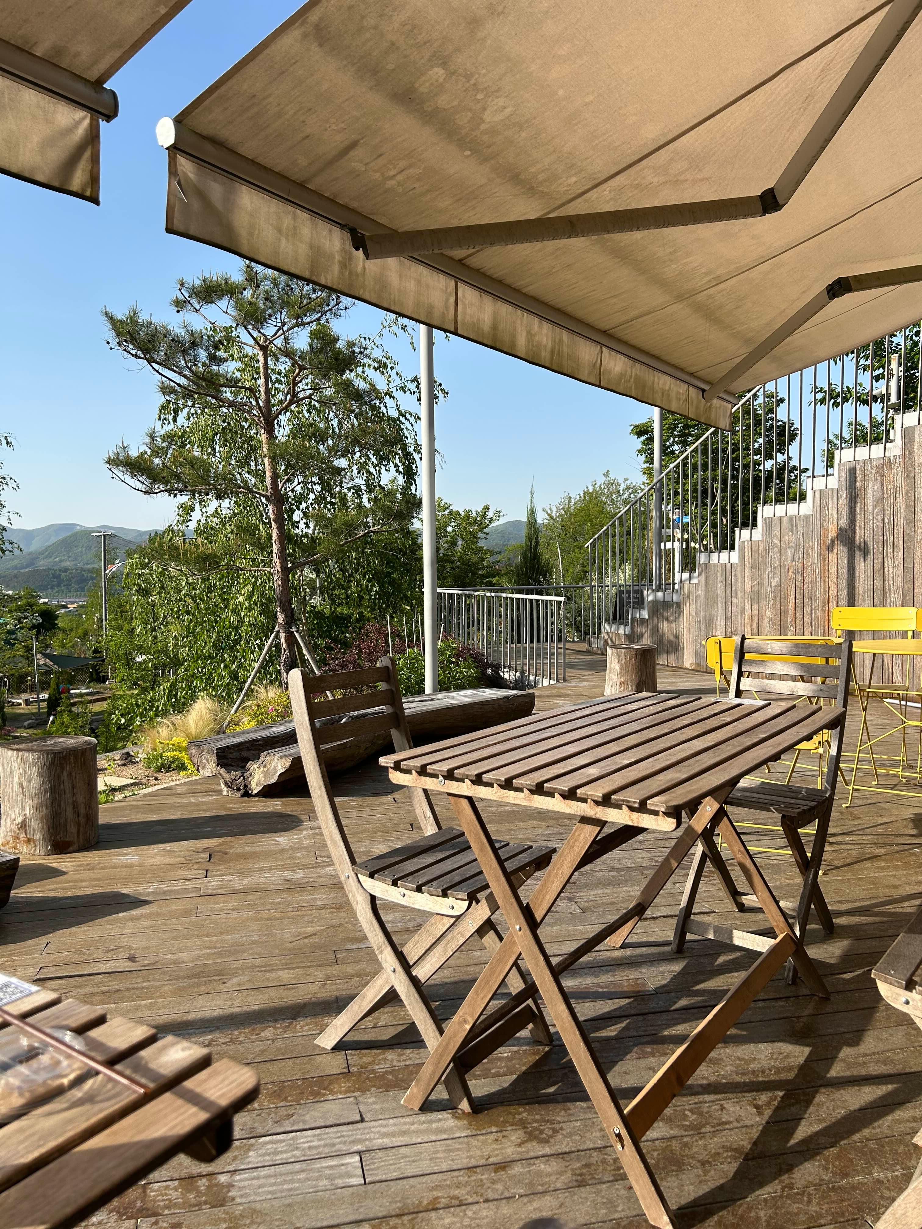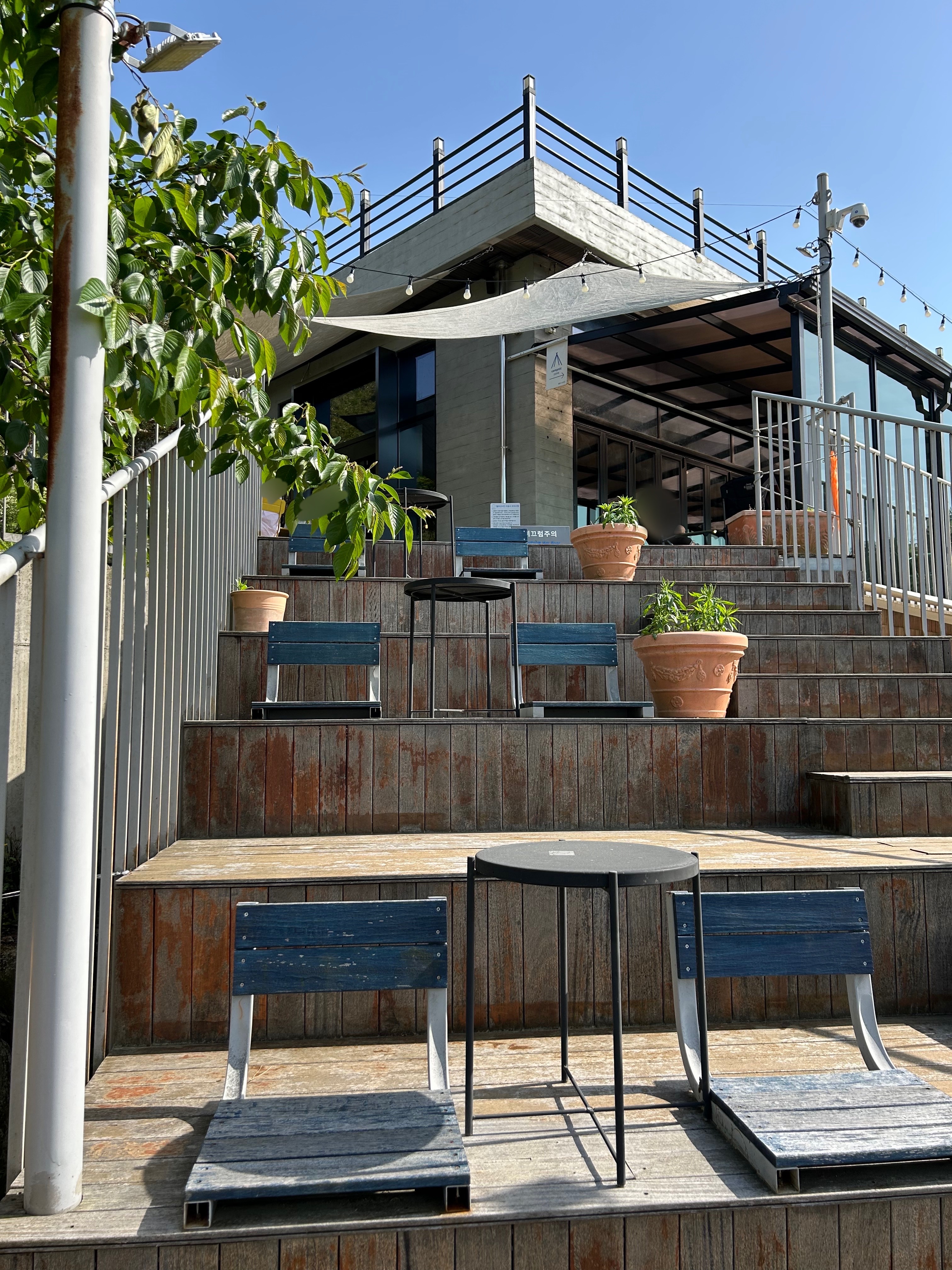 뷰도 뻥 뚫려있구 의자도 편해보여서 여기 앉을까 싶었어요.