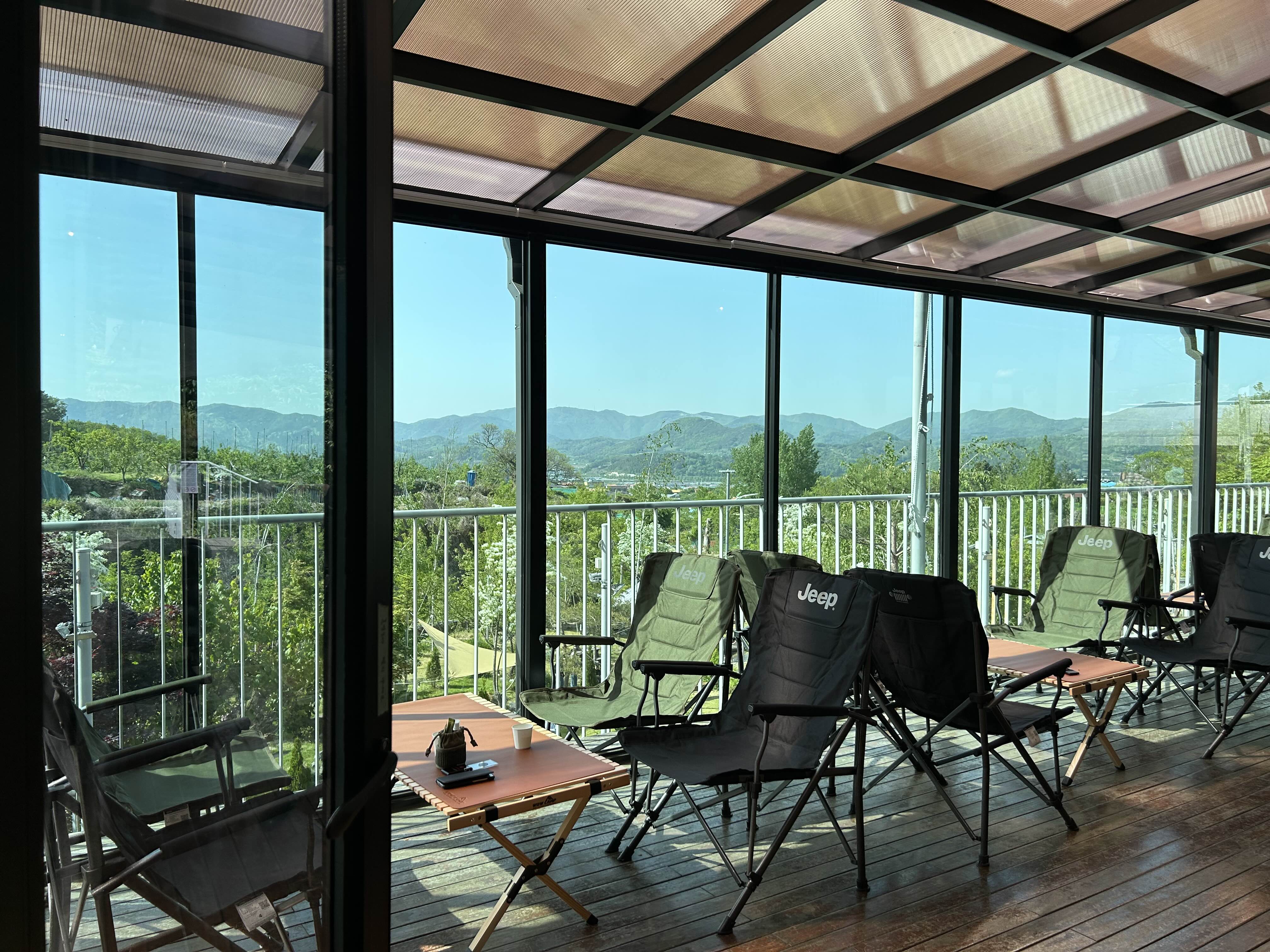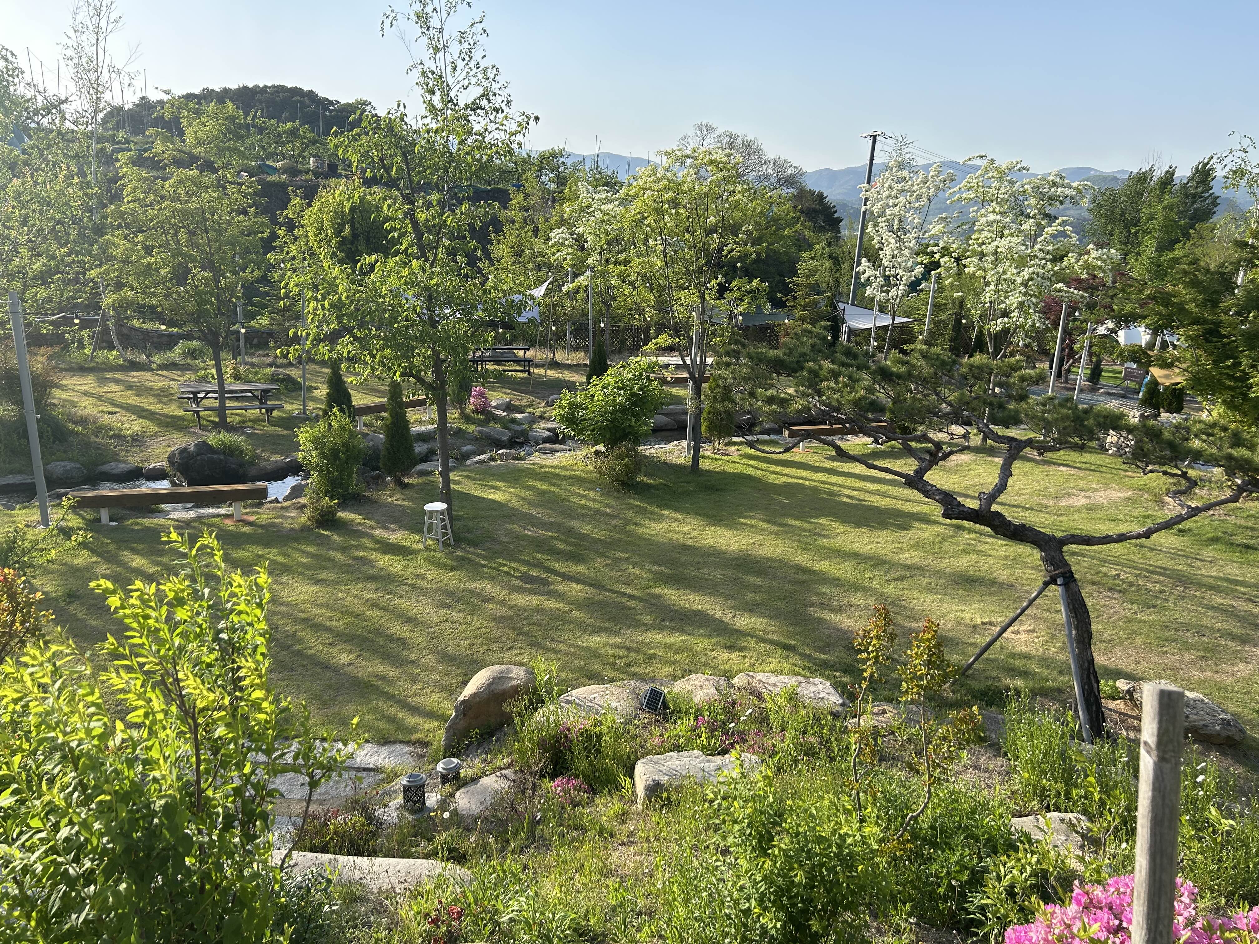 저~ 멀리 산 능선도 보이고 넓은 정원이 잘 보이는