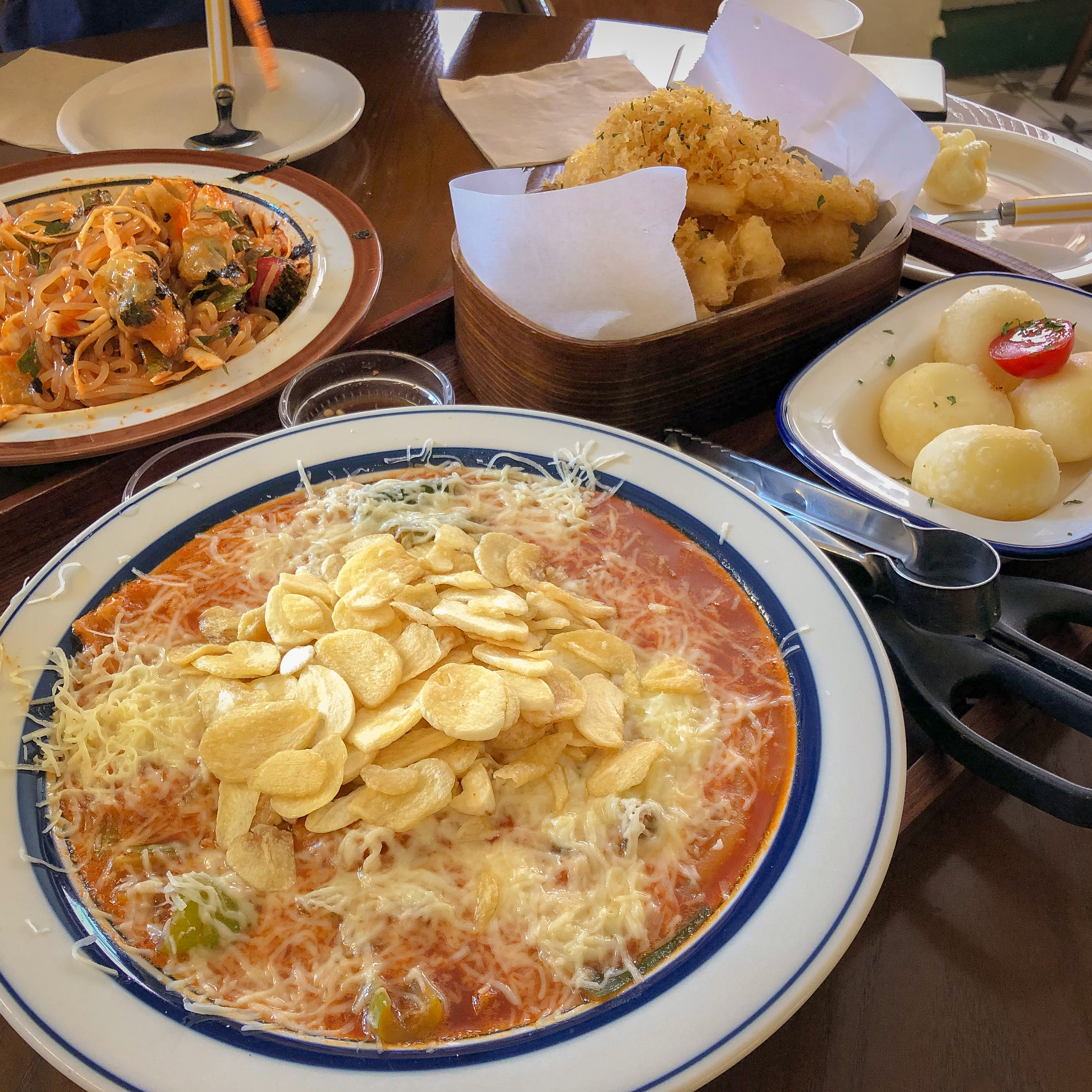 곧 이어 나온 떡볶이와 한치튀김과 치즈볼.