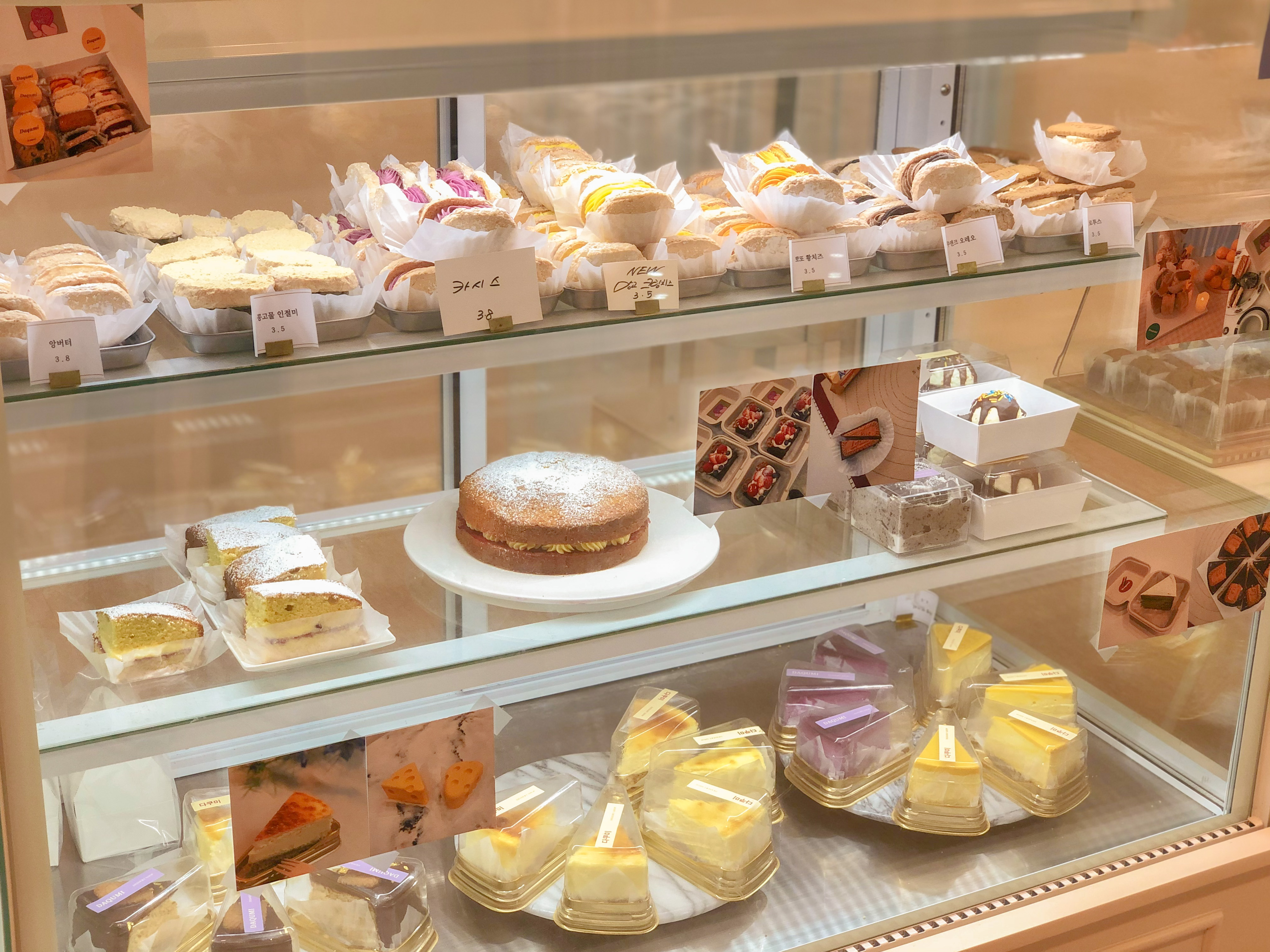 가게에 들어가자마자 쇼케이스에 차곡차곡 진열되어 있는 다쿠아즈 및 각종 디저트들이 눈에 띈다.