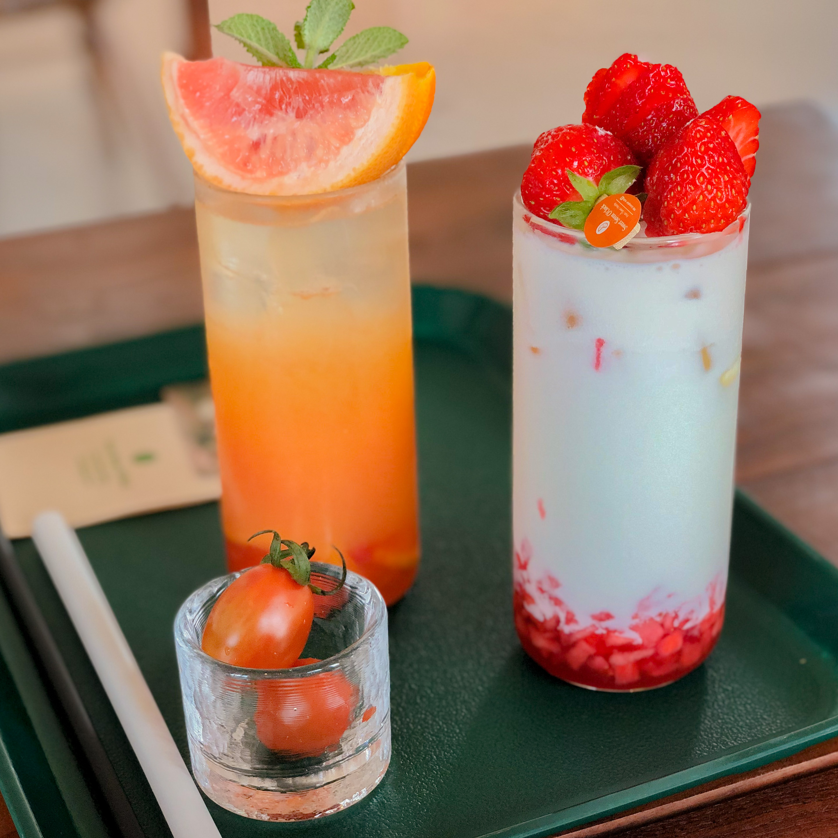 나는 뭘 마실지 고민 끝에 딸기음료로 결정했다.