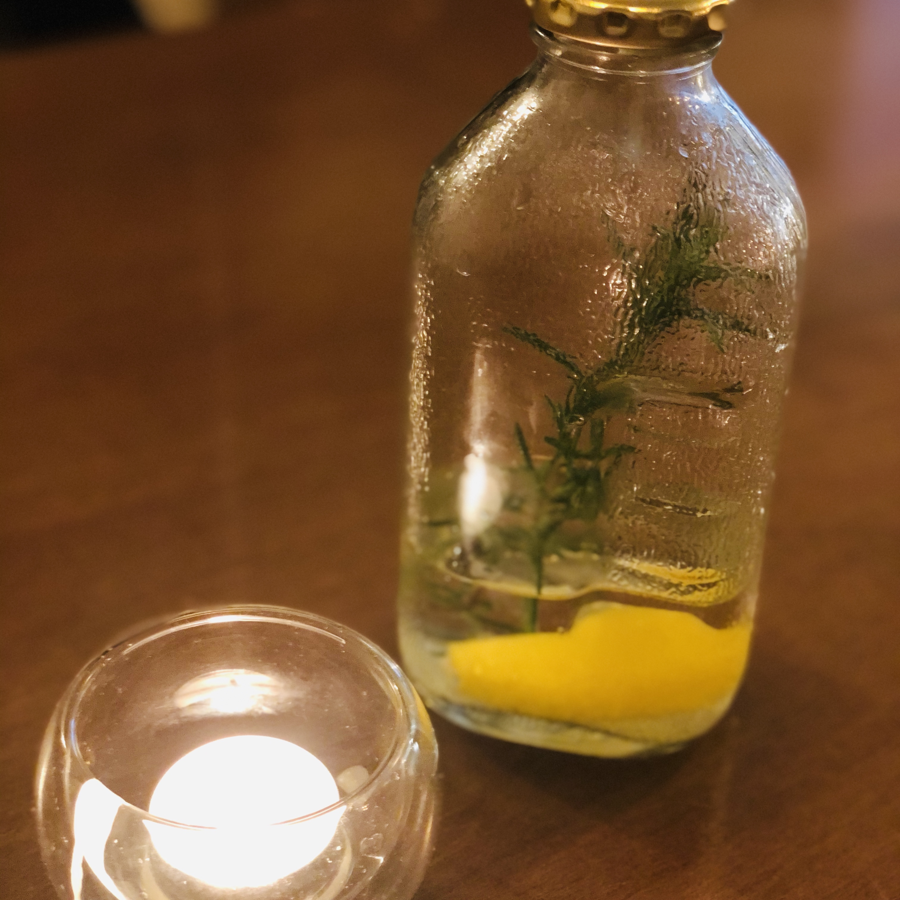 메뉴 주문하고 빈티지한 병에 담긴 물을 받았다.